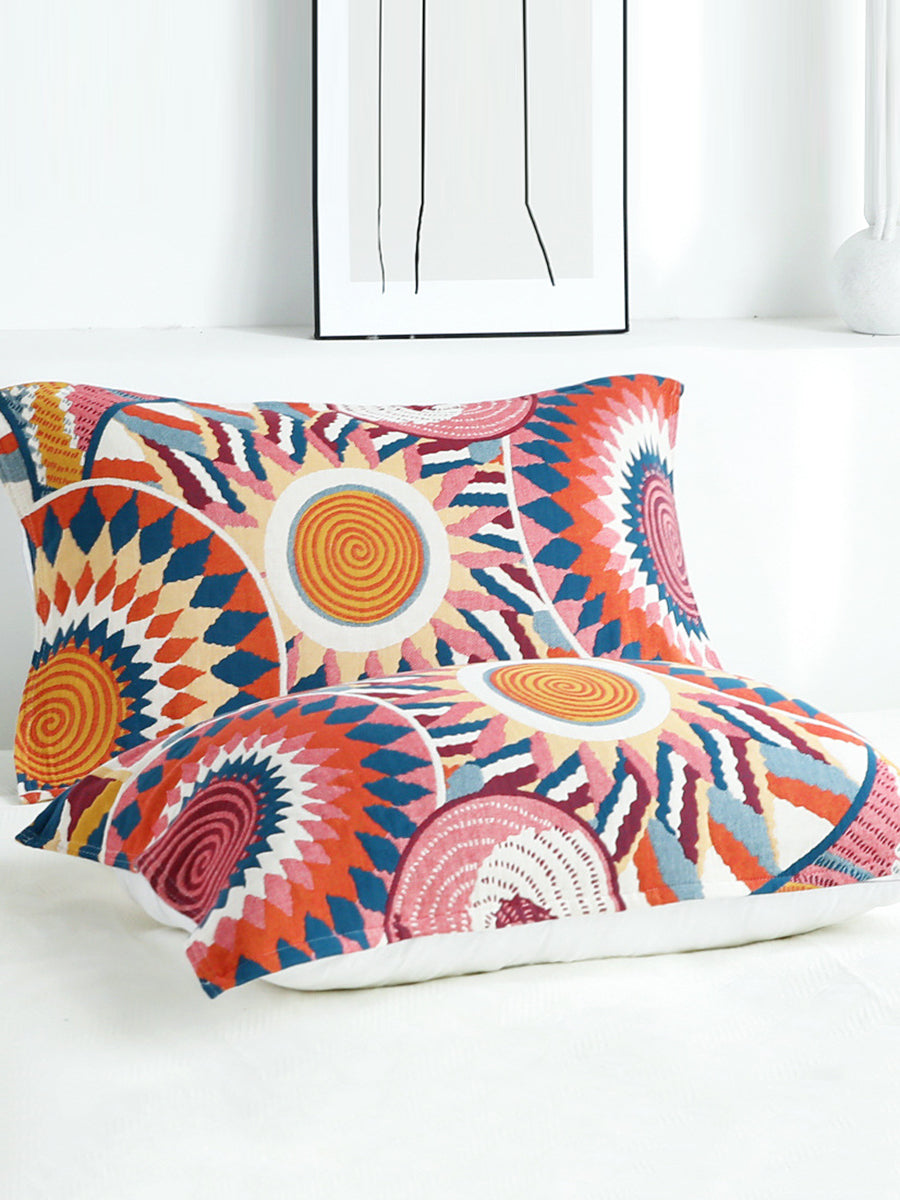 •   【高品質】--由 100% 棉纖維製成。 A級母嬰級。紗線先染色後織造,色牢度較高。雙層紗。防起毛球處理,提花,活性工藝染色,4公分針細縫線,工藝枕套。