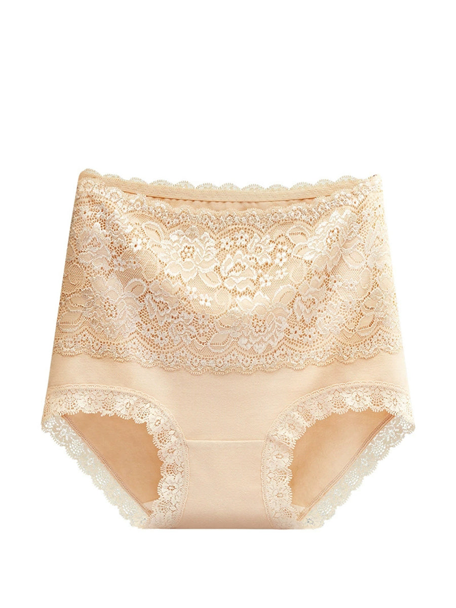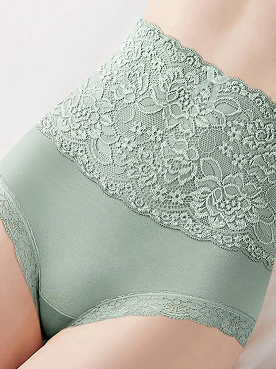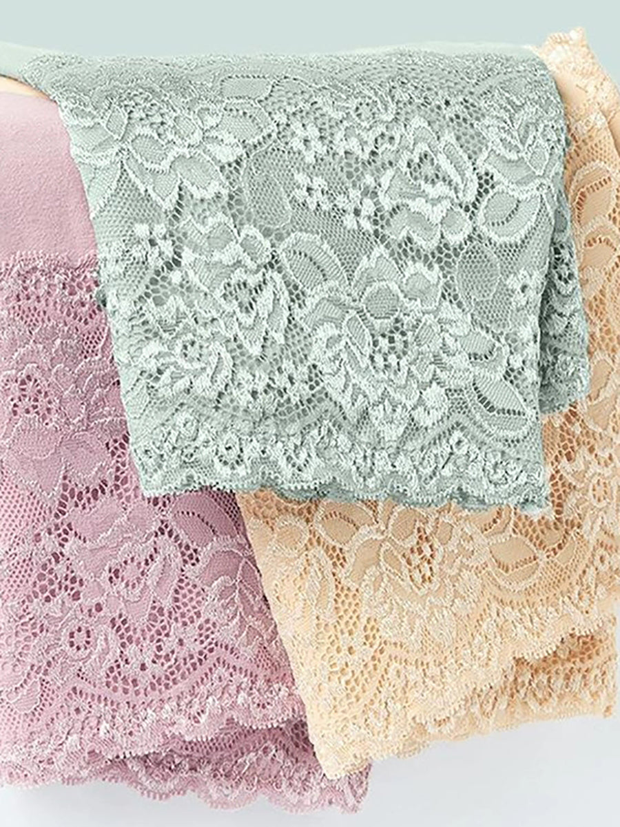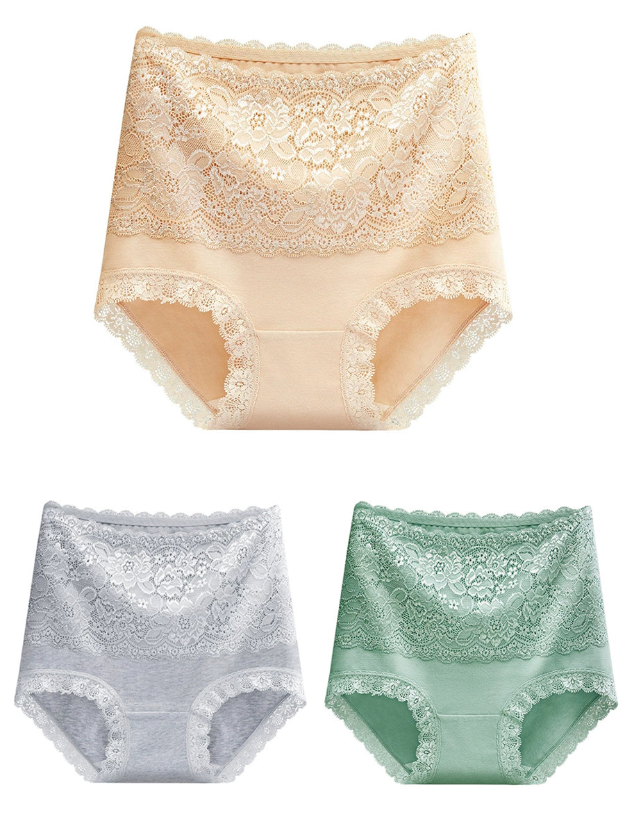 3件女士藝術花卉蕾絲高腰內衣