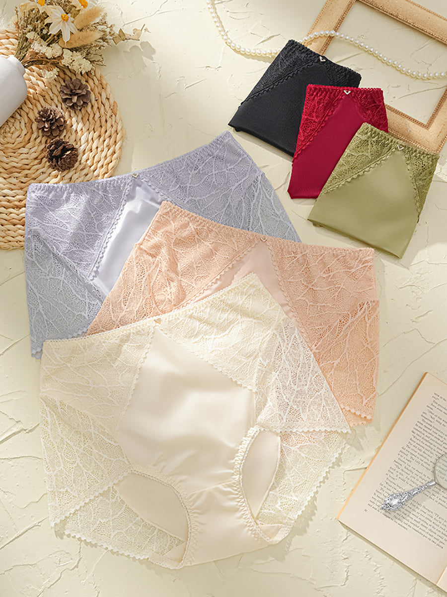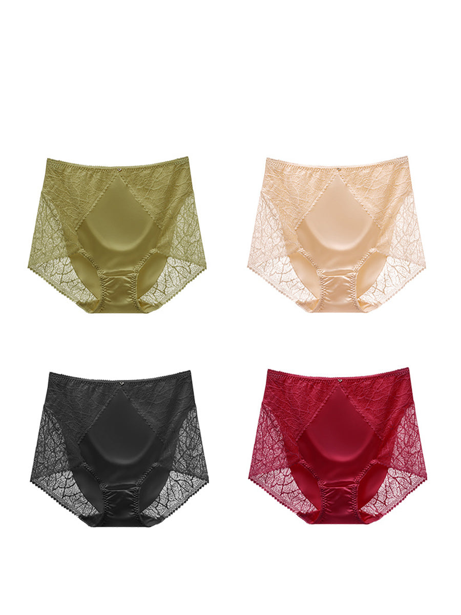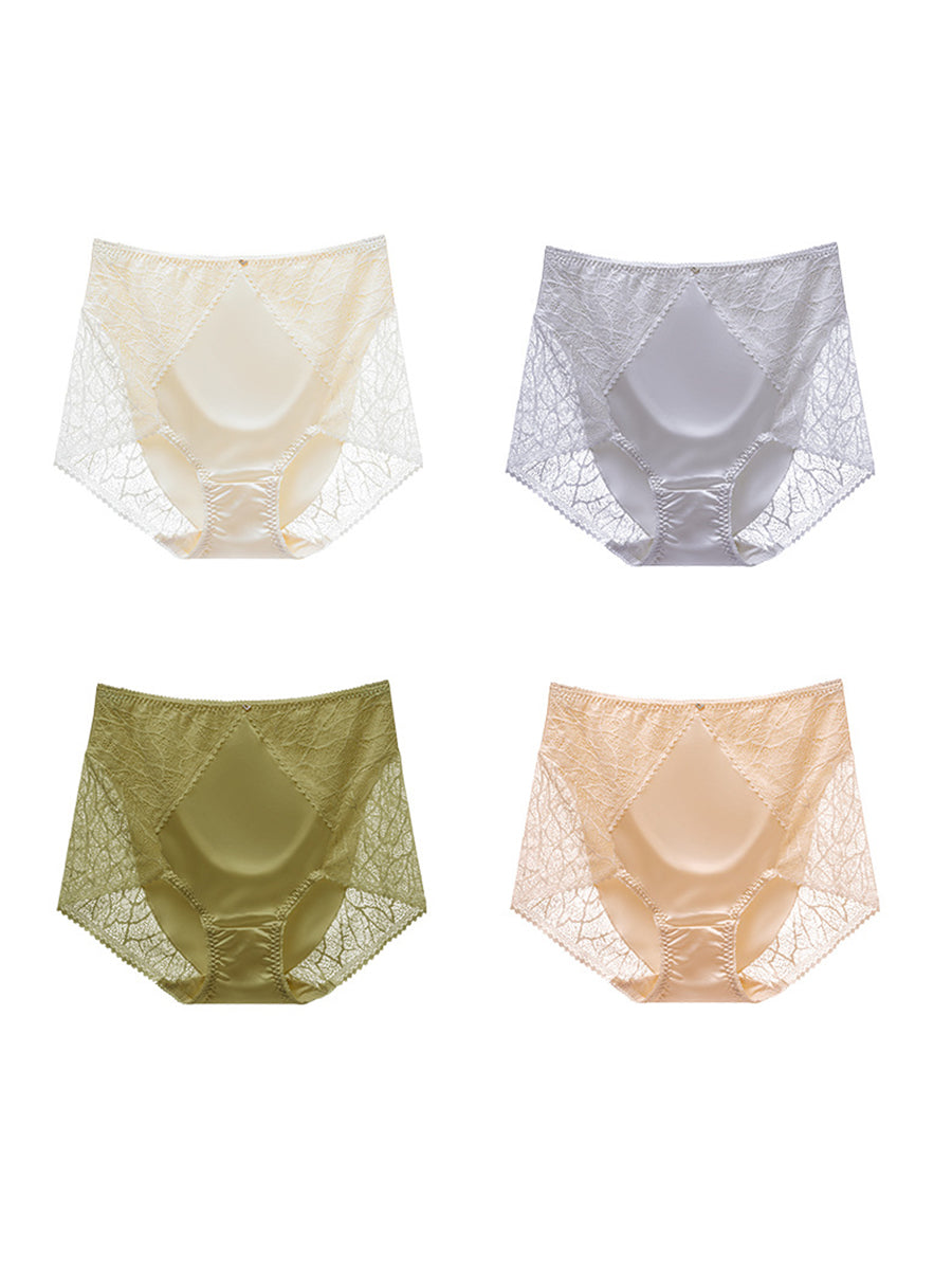 4件式女士藝術蕾絲拼接高腰內褲