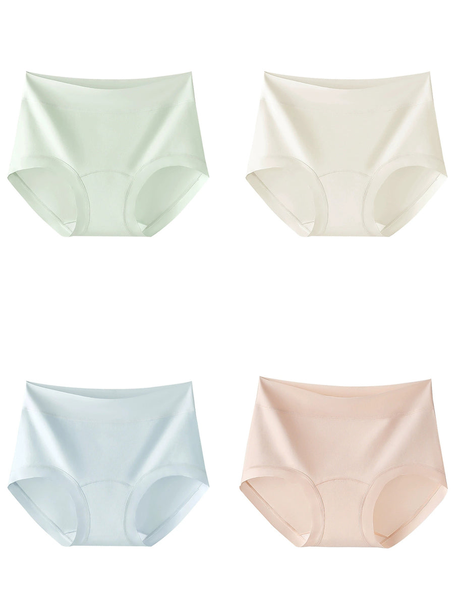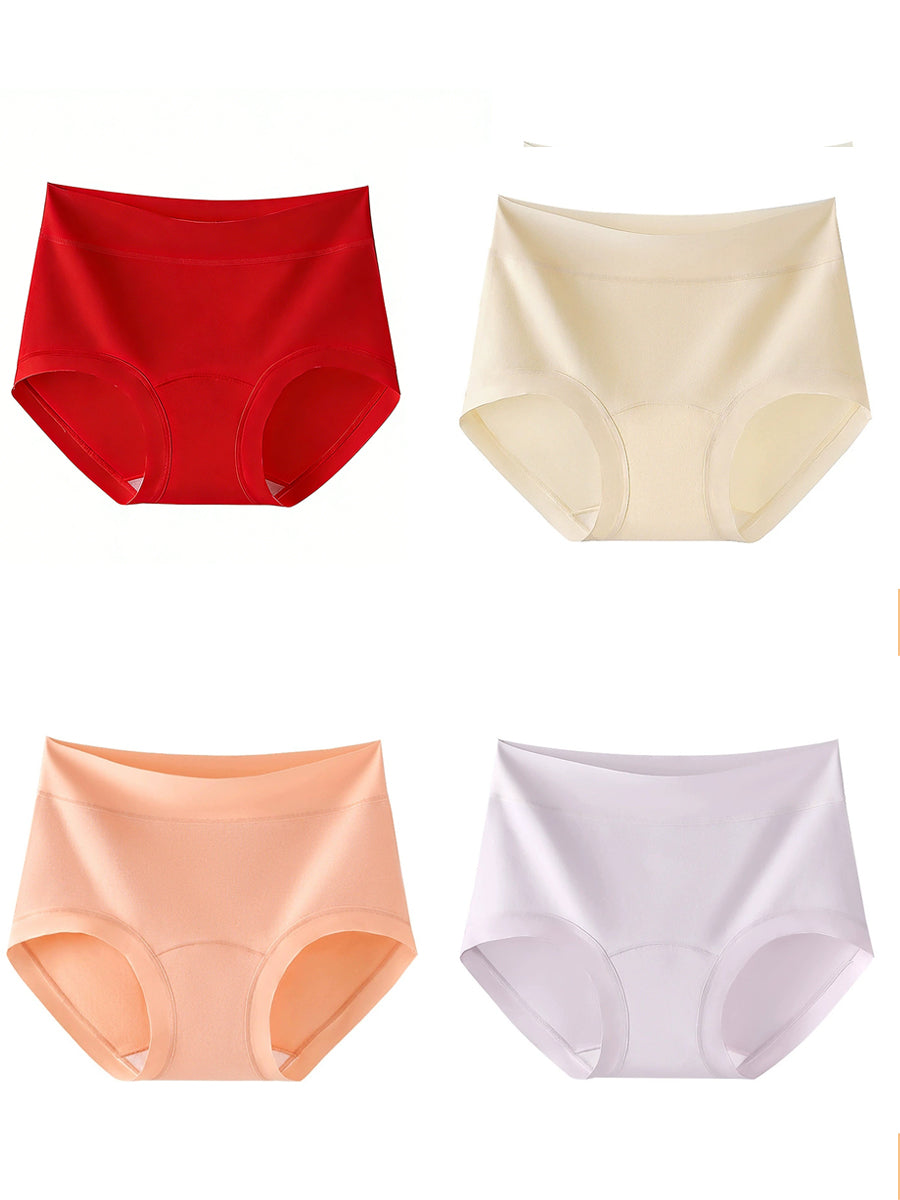 4件女士藝術純色高腰內褲