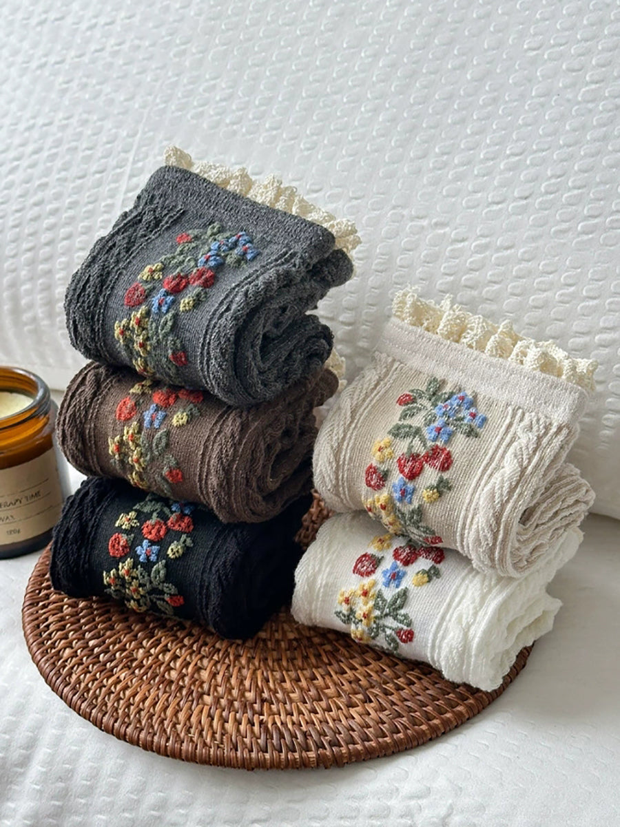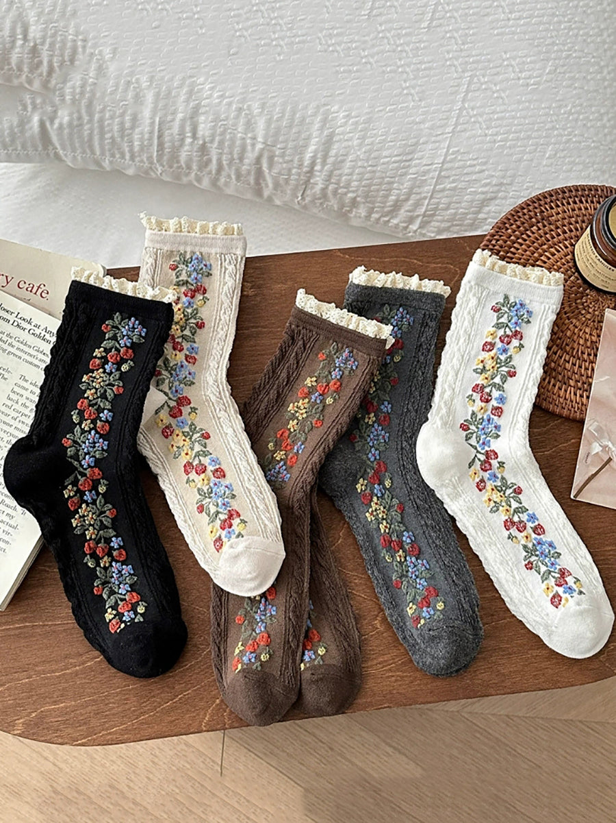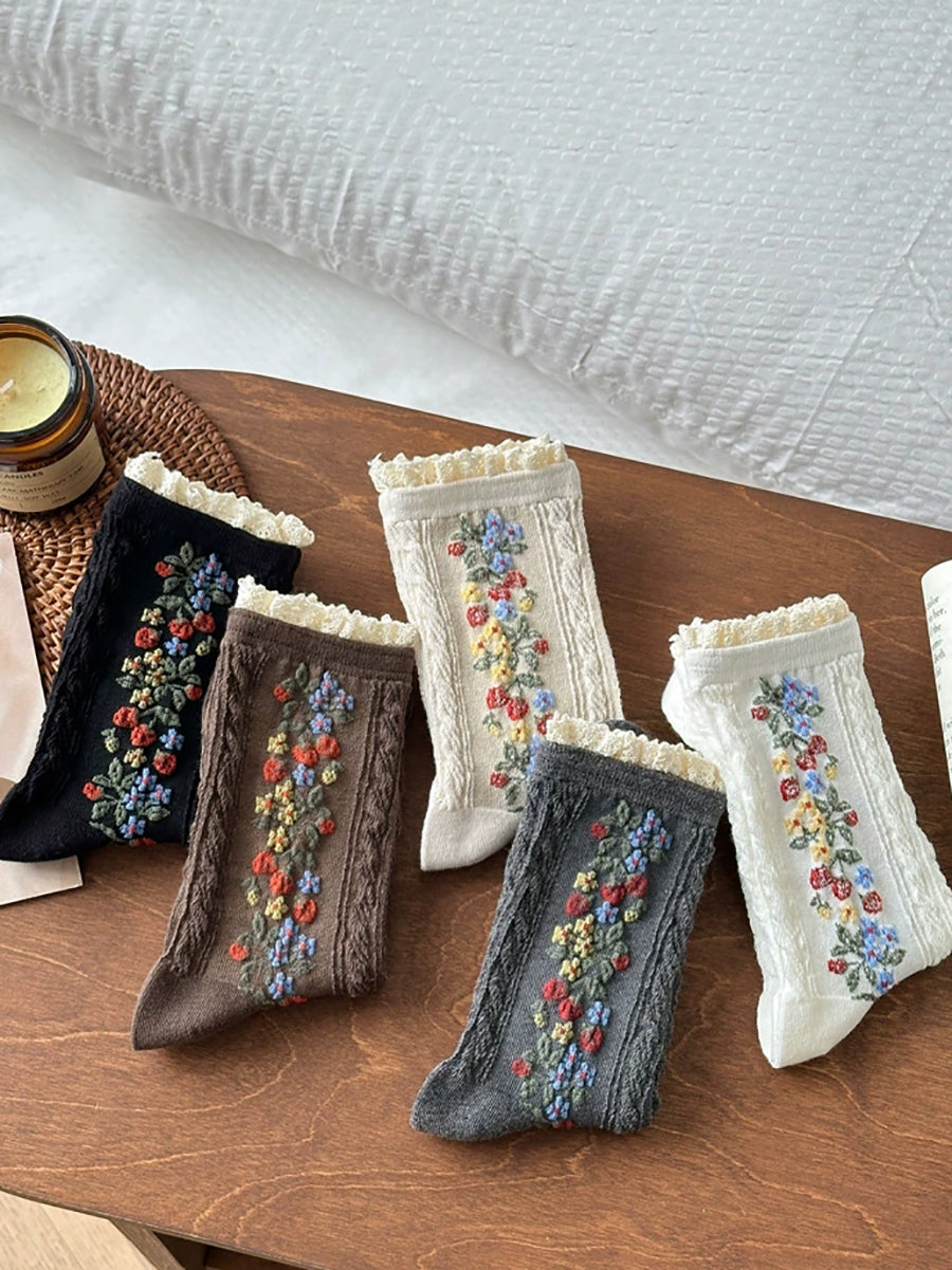 5雙女士藝術花朵針織蕾絲襪