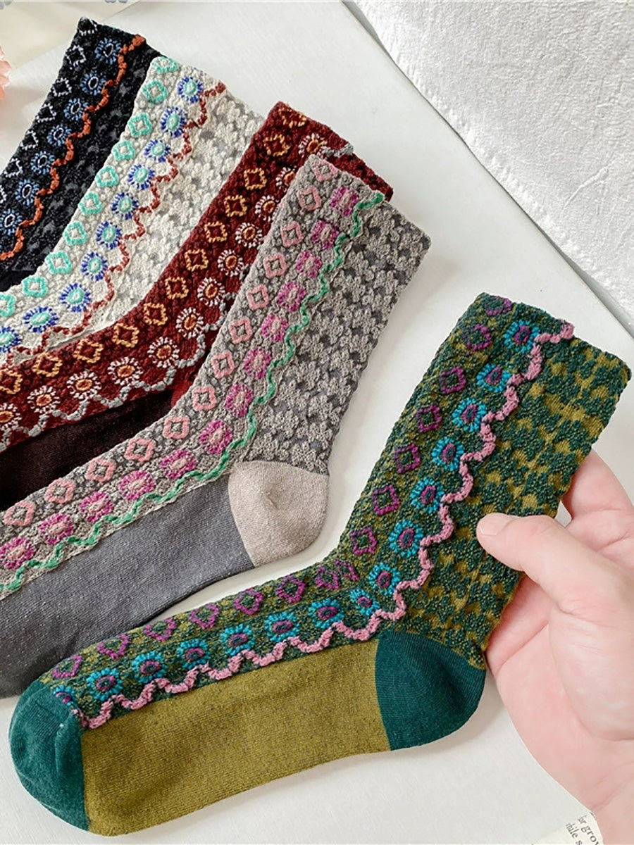 5雙女秋季花卉提花中跟襪