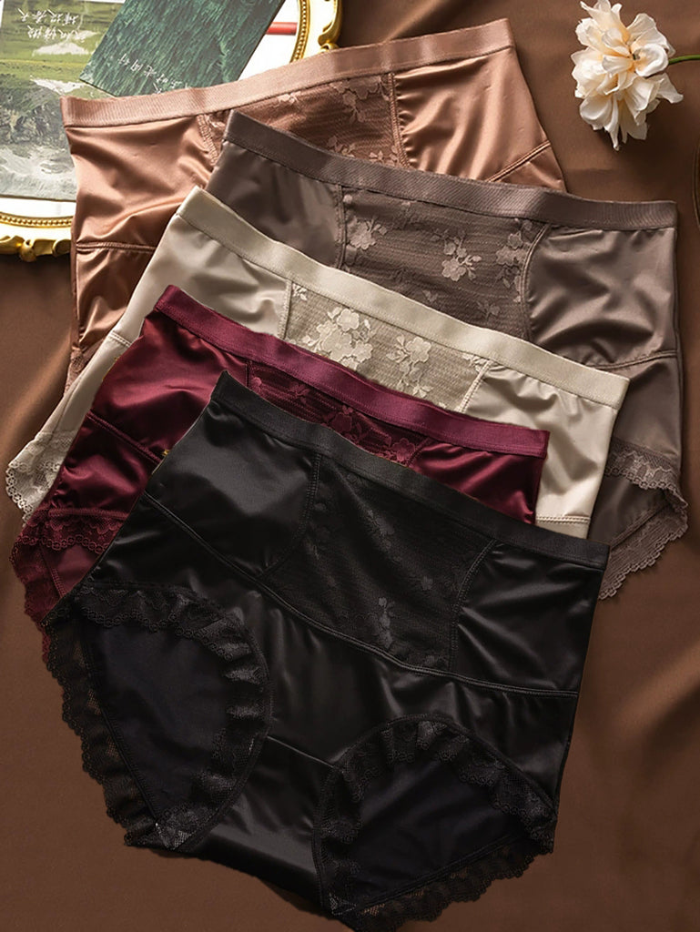 5 件裝女士藝術蕾絲高腰內褲