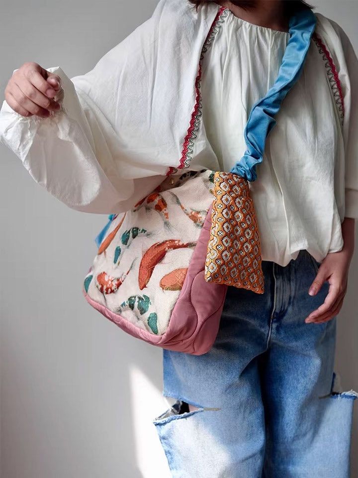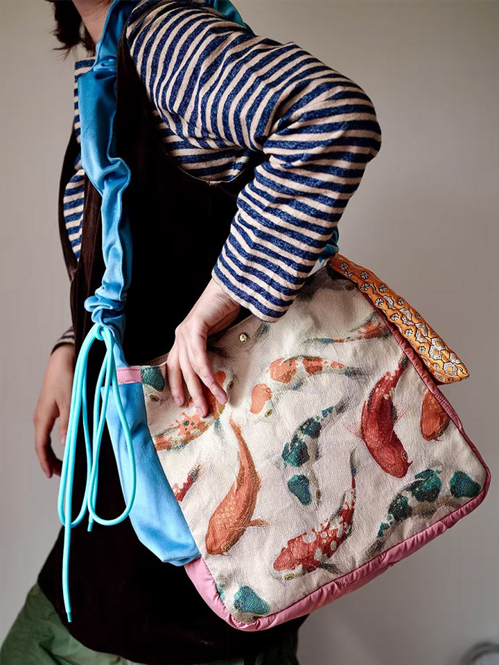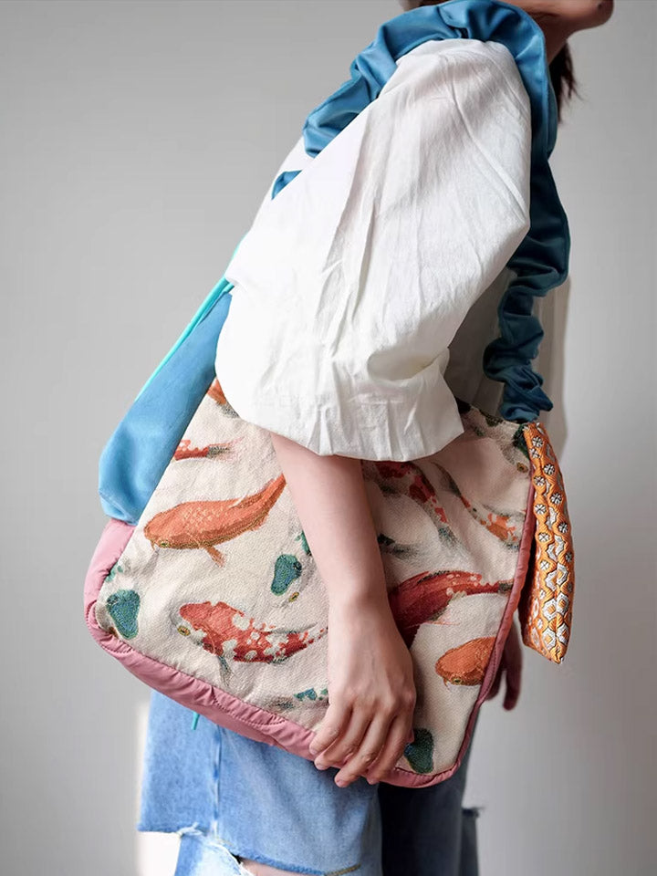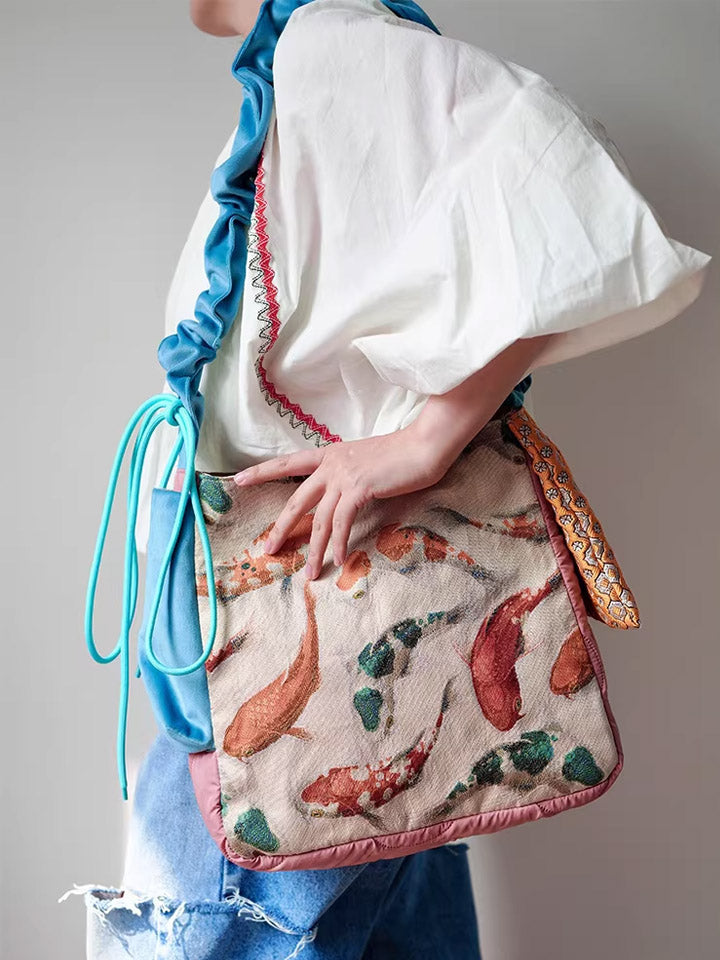 30210 民族風錦鯉印花斜背包
