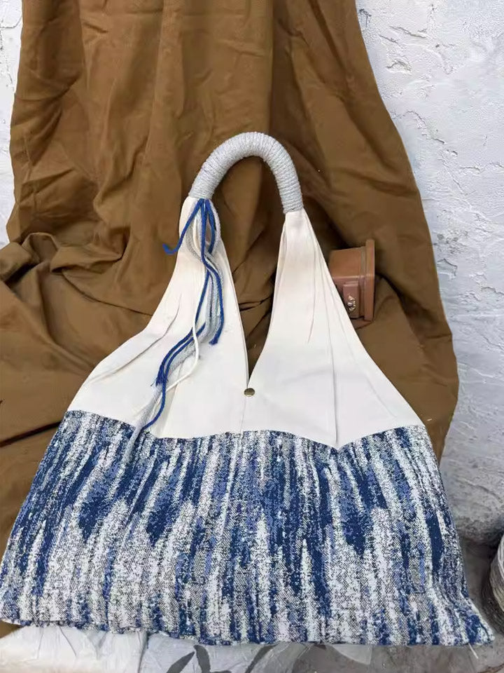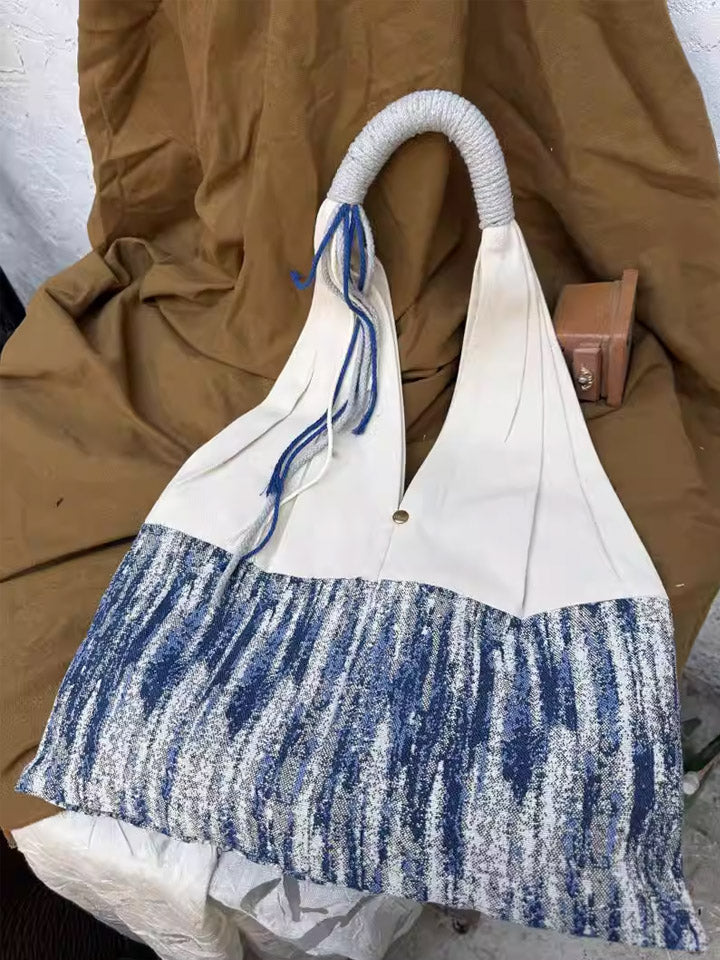 3038 民族風撞色條紋單肩包