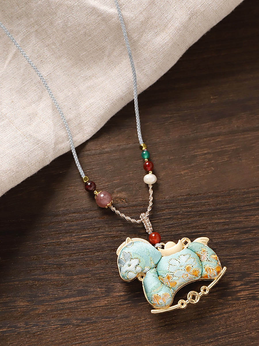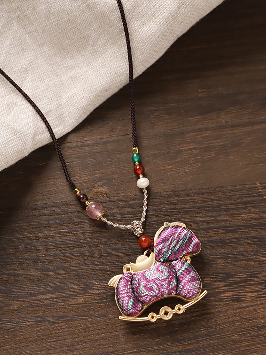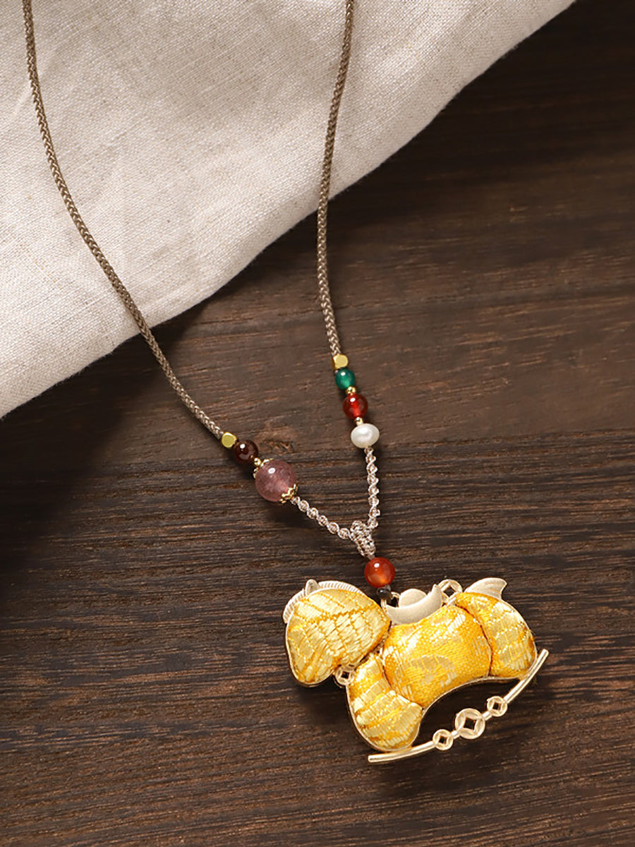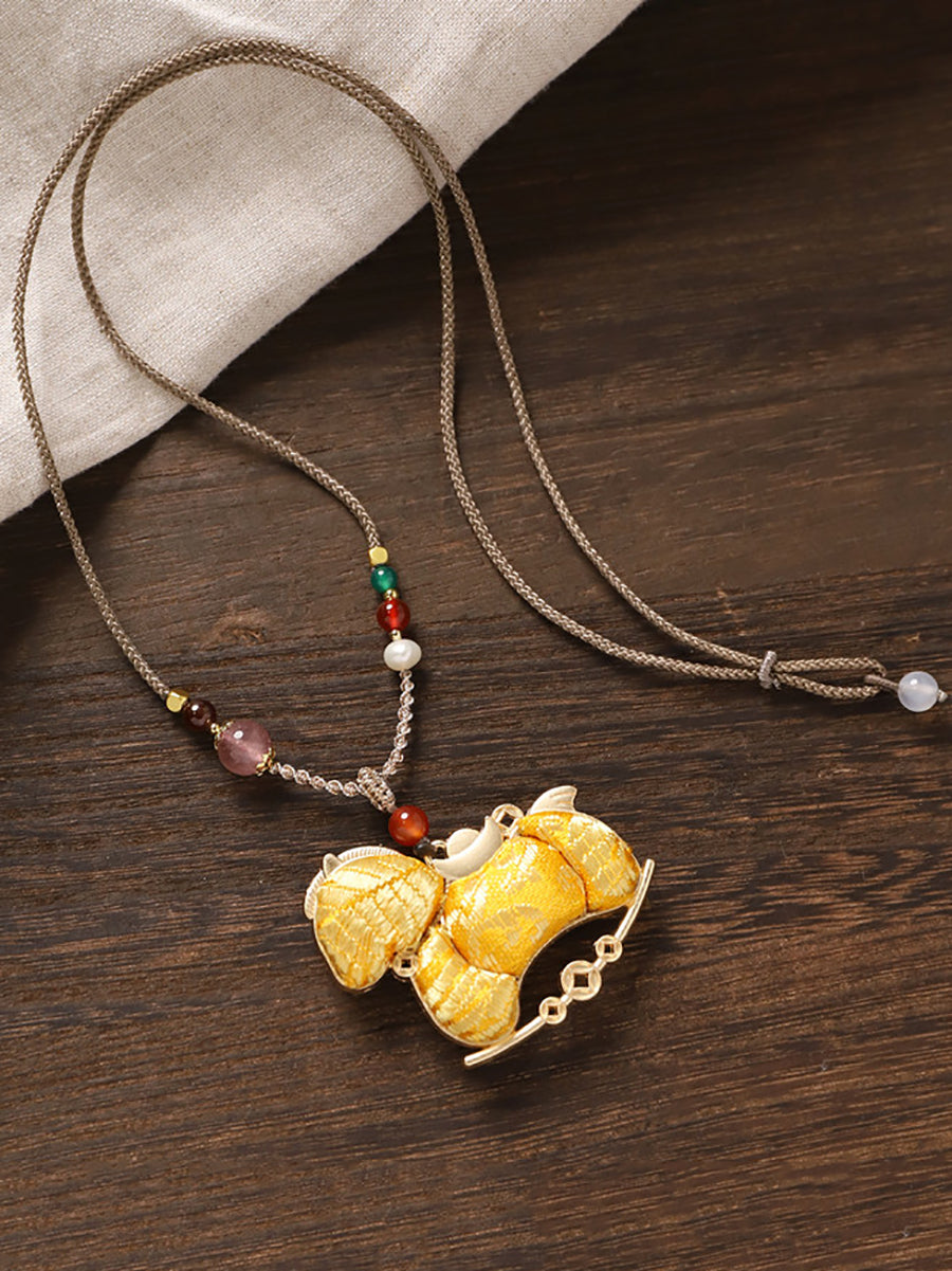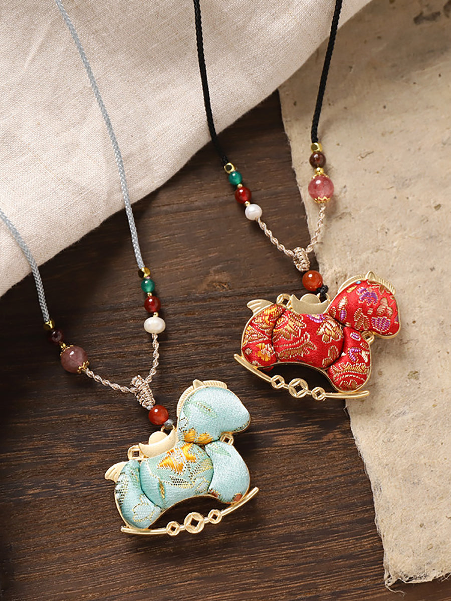 民族風雙面錦緞馬吊墜長項鍊