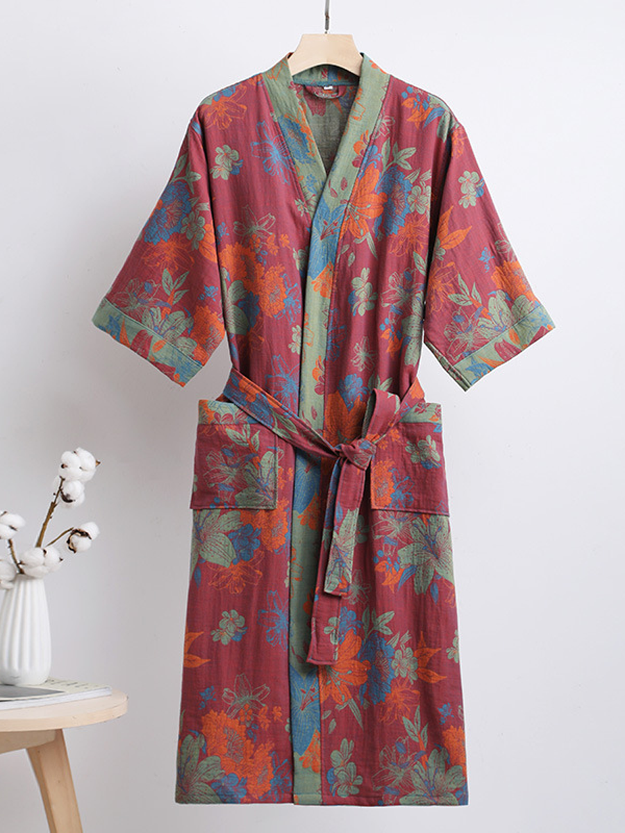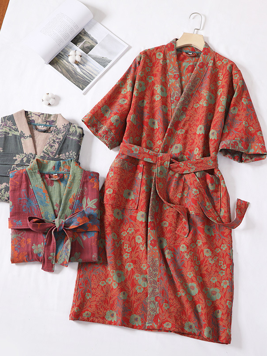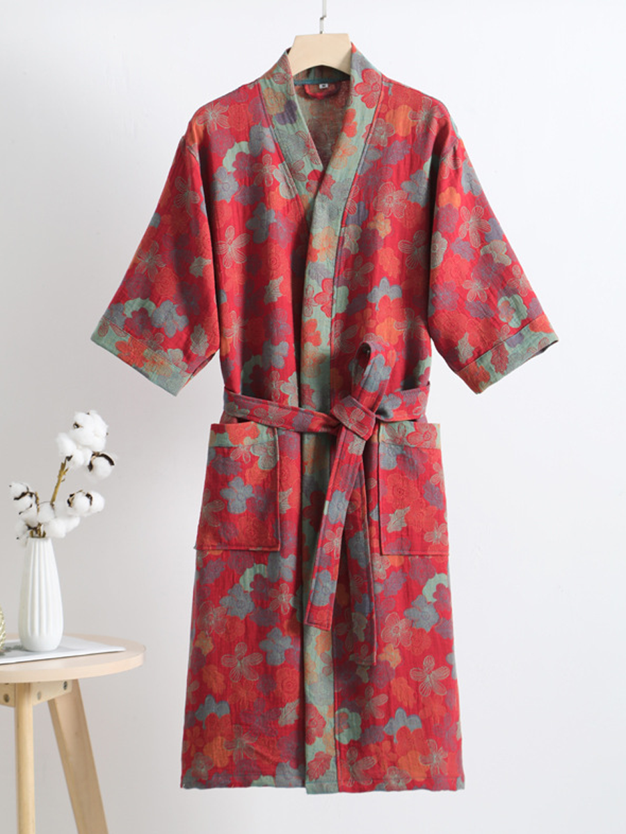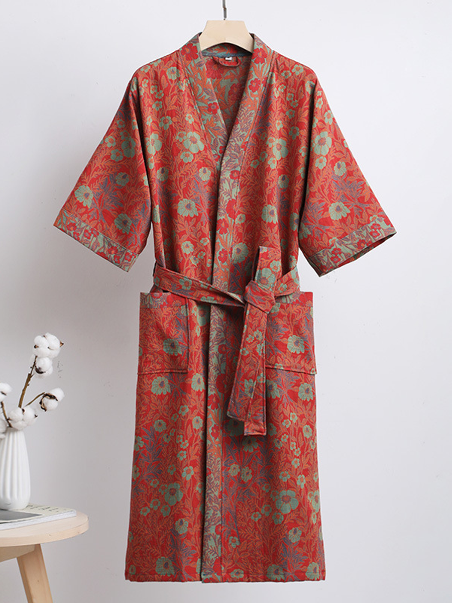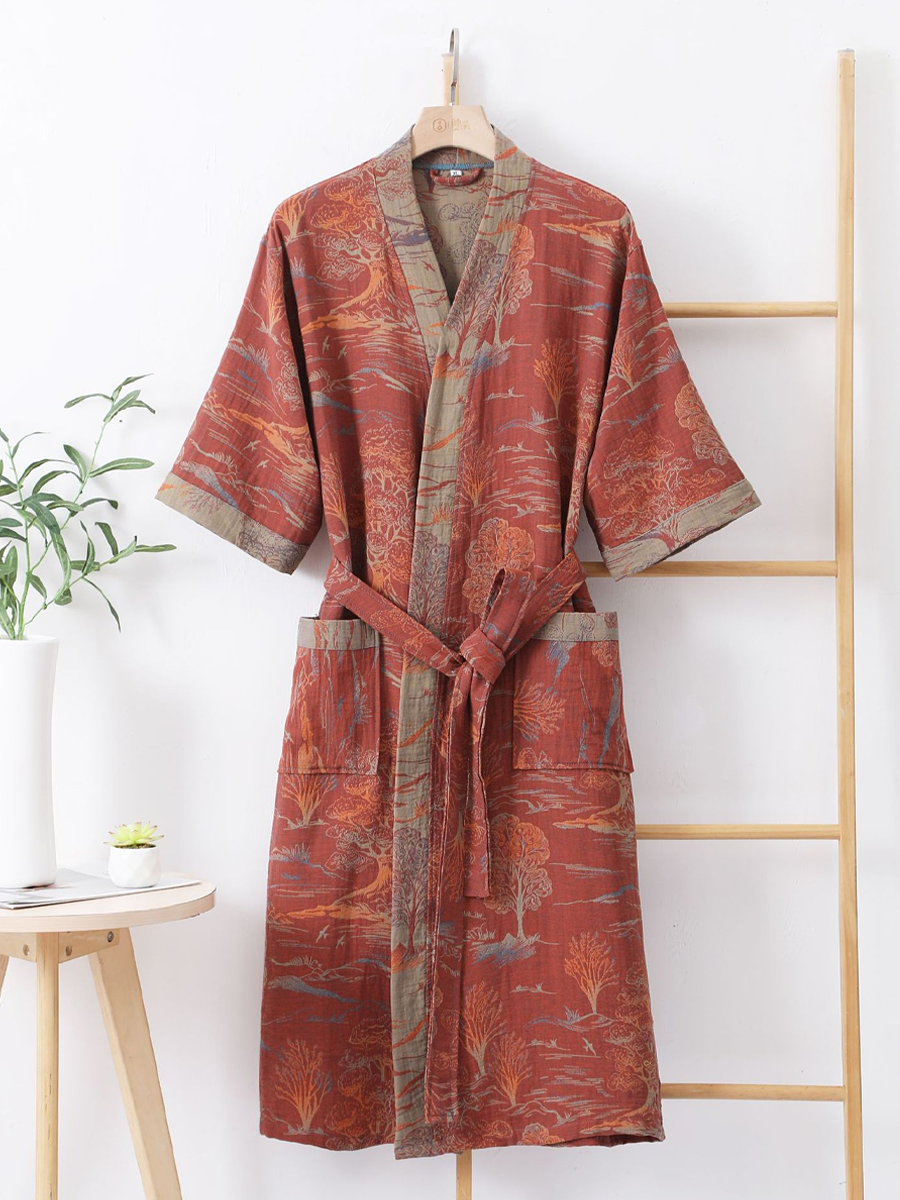 我們的棉紗浴袍採用中長款設計,長度及膝,由100%純棉紗布製成。浴袍觸感柔軟,飾以優雅的佩斯利花紋,透氣耐穿,是居家休閒或沐浴後穿著的理想之選,為您帶來時尚舒適的體驗。