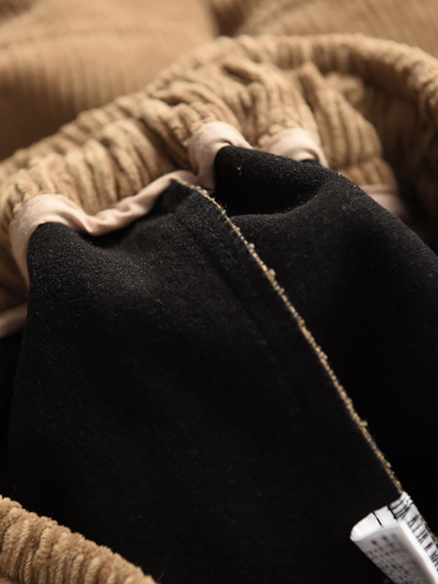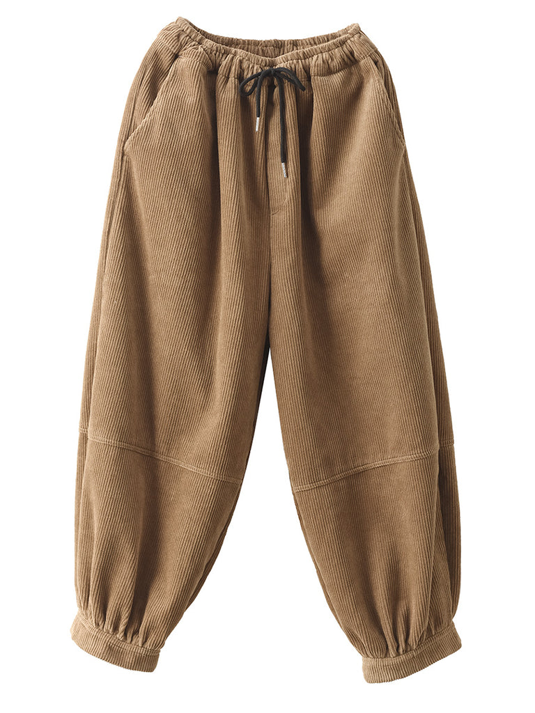 大尺碼女款休閒純色寬鬆羊毛襯裡長褲