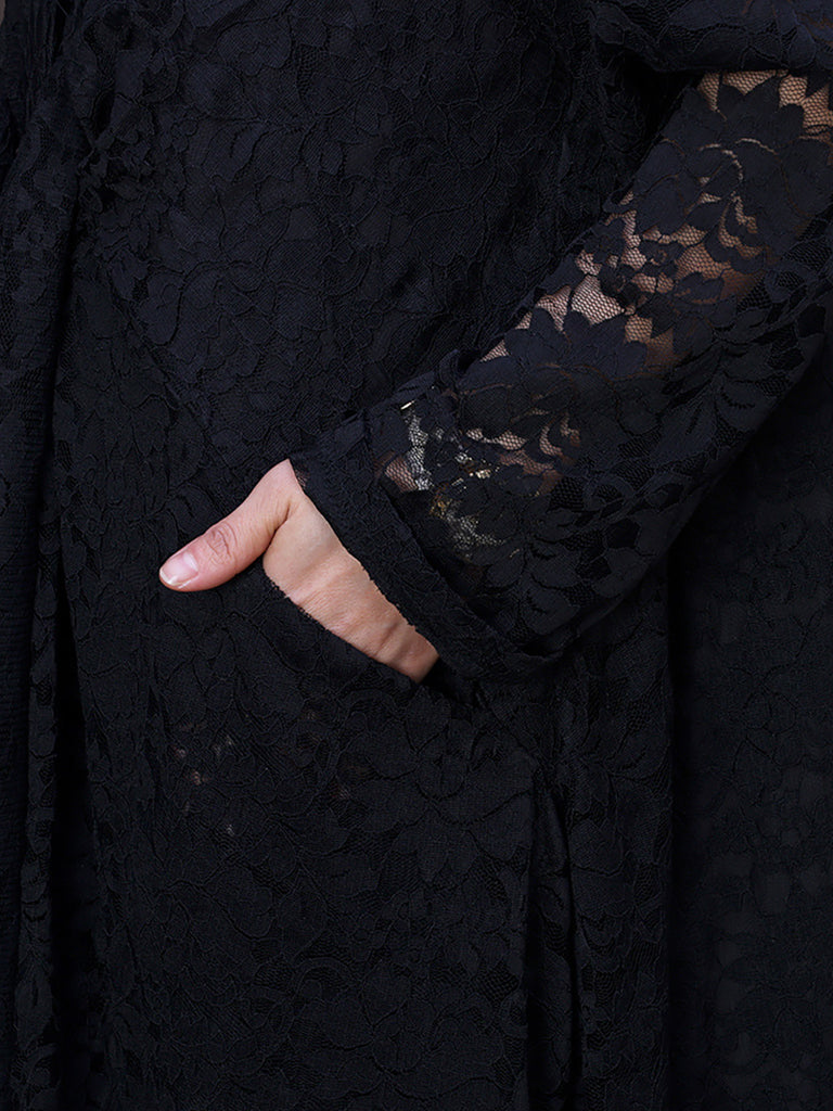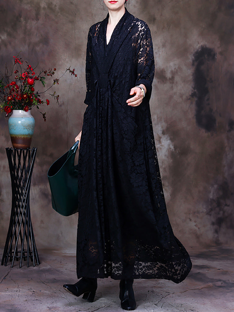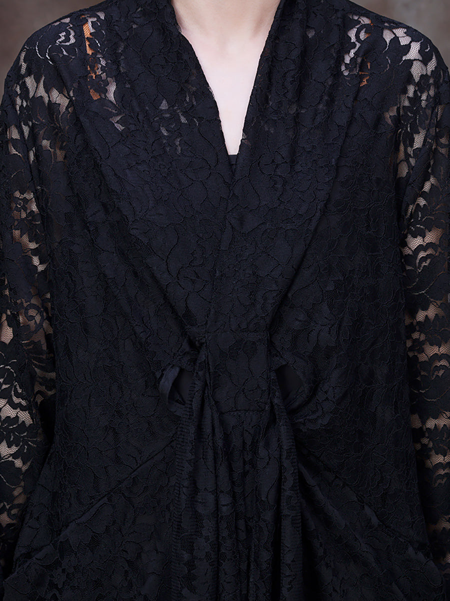 大尺碼女蕾絲 V 領腰帶不規則連身裙