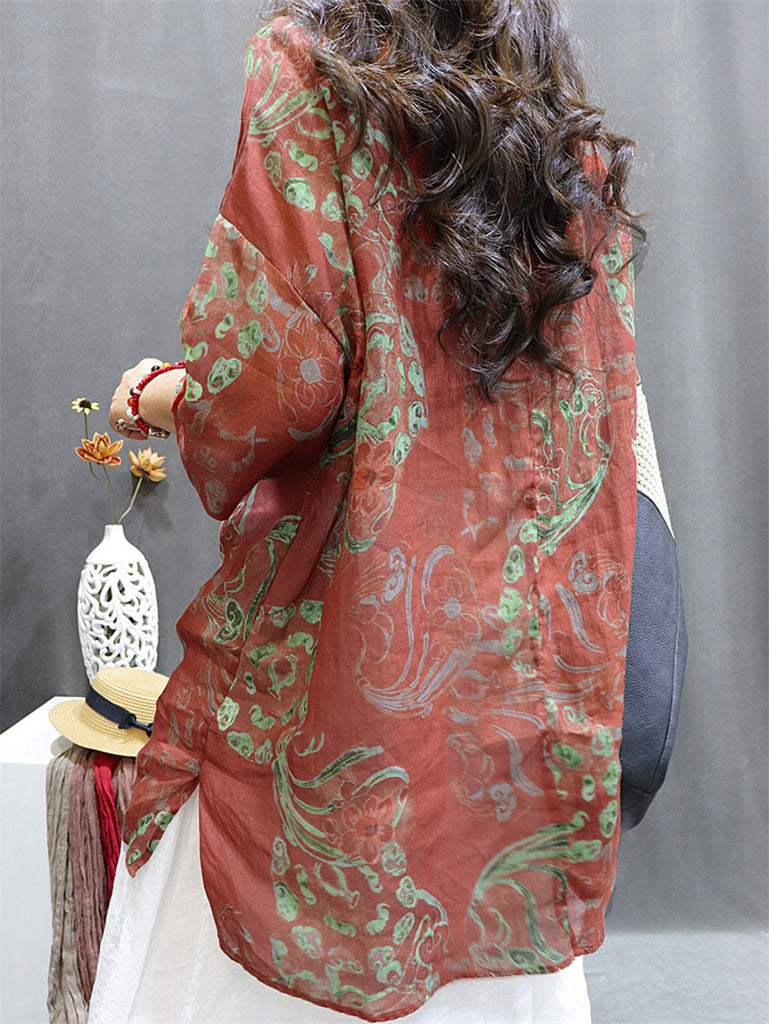 這款襯衫由 100% 苧麻製成,飾有迷人的花朵圖案。 O 領和四分之三插肩袖增添復古氣息,非常適合春夏季節。