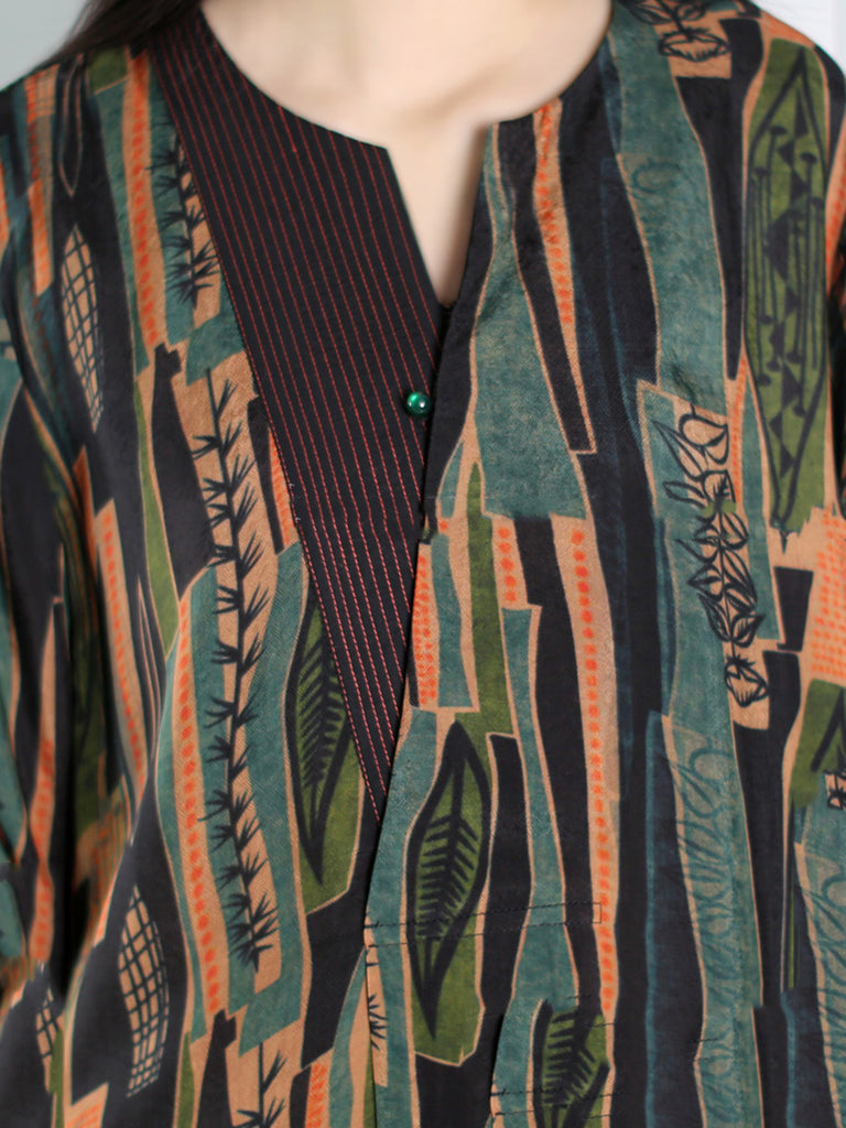 這款洋裝採用 100% 黏膠纖維製成,V 領,拼接圖案,常規半袖,長及腳踝的下擺。非常適合夏季。