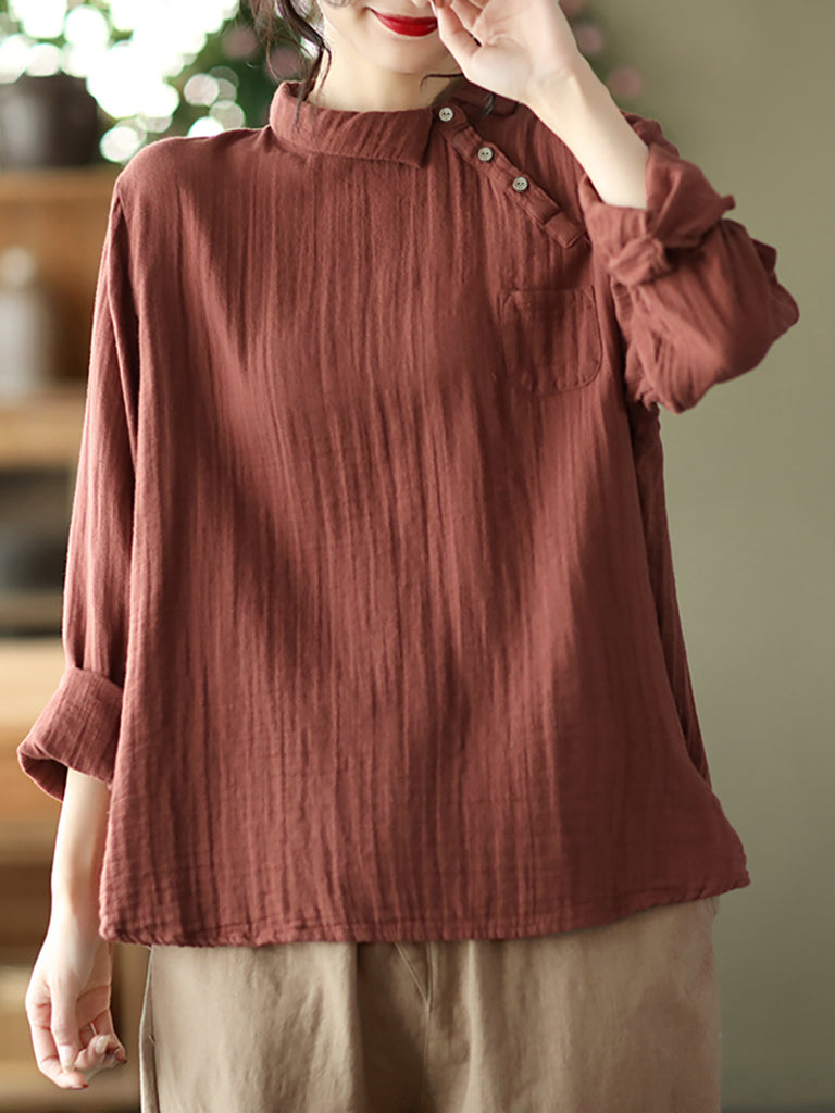 找到適合四季穿的單品了嗎?這款女款復古斜長袖棉質襯衫是不錯的選擇。這款襯衫採用雙層棉紗製成,柔軟透氣,帶有紐帶的閉合式設計,易於穿透。寬鬆版型讓你一整天都舒適,可搭配褲子或裙子。