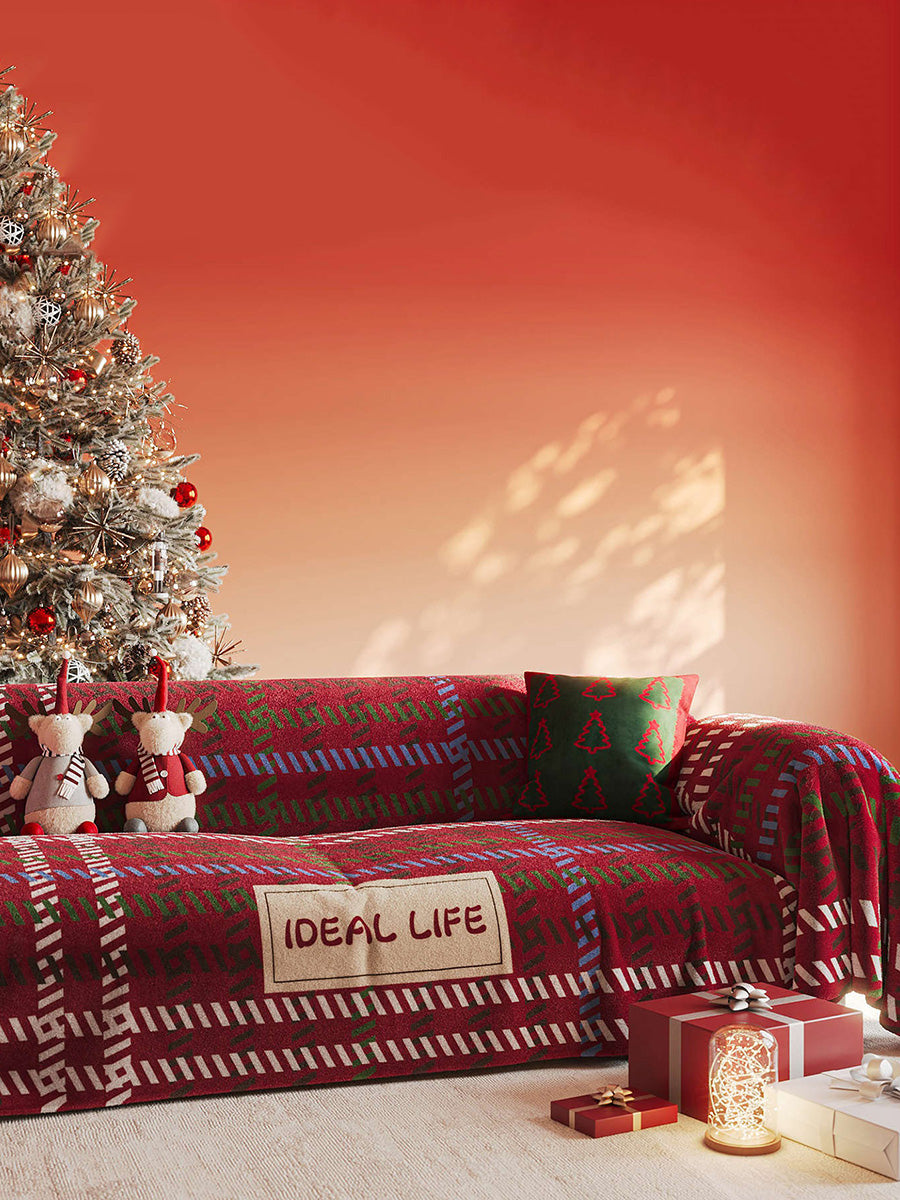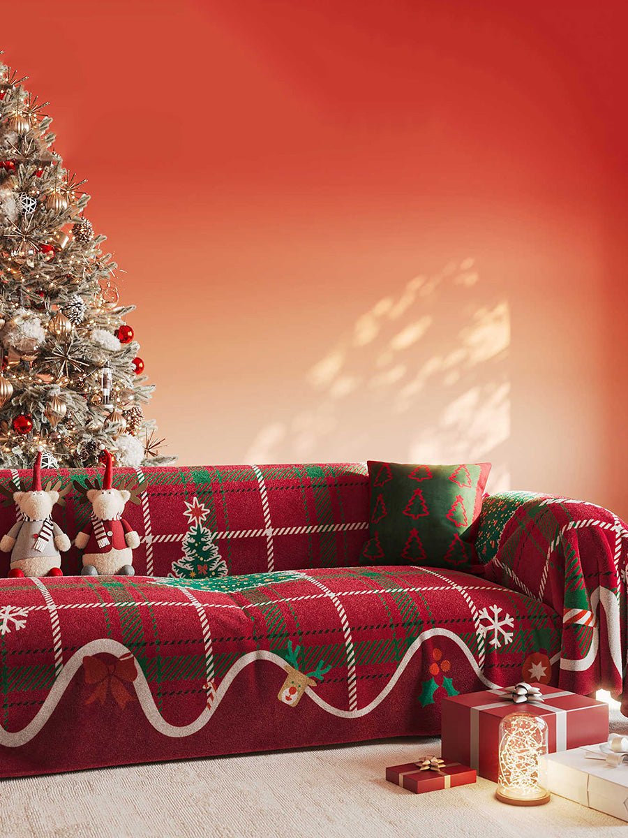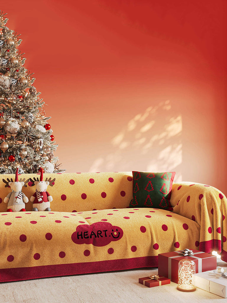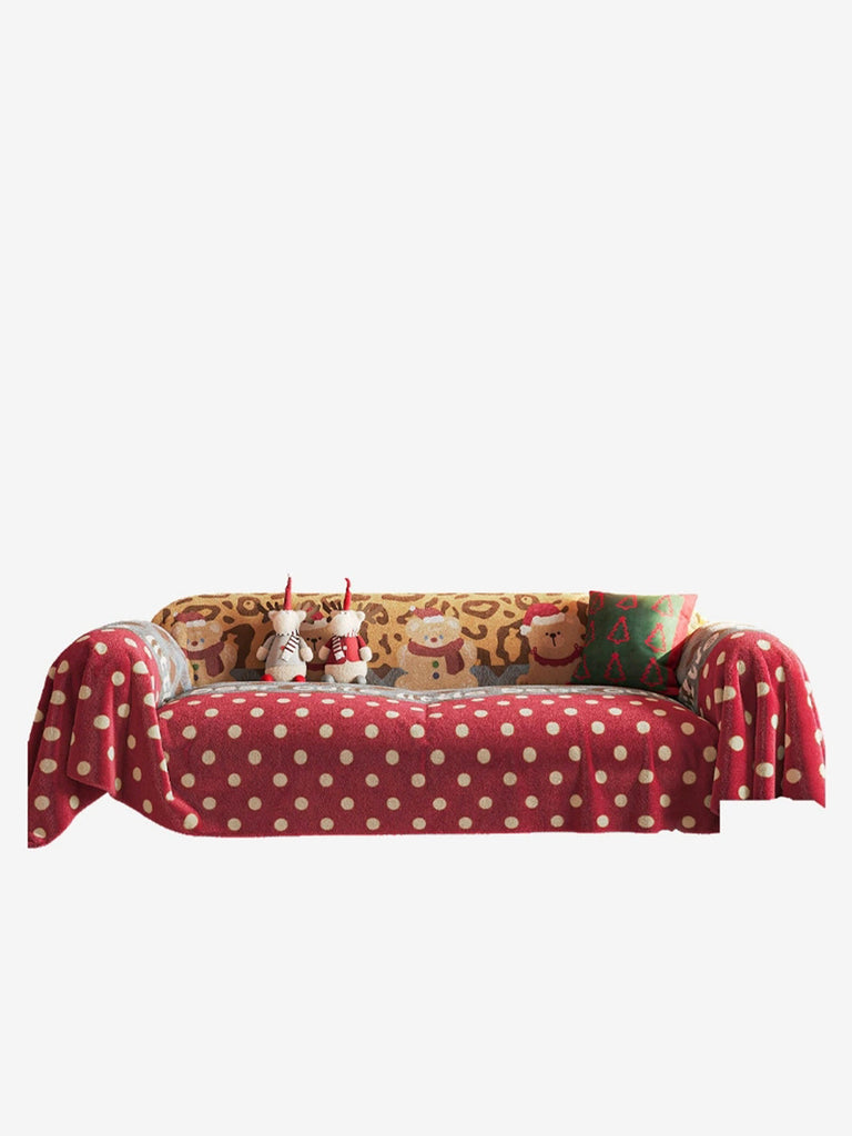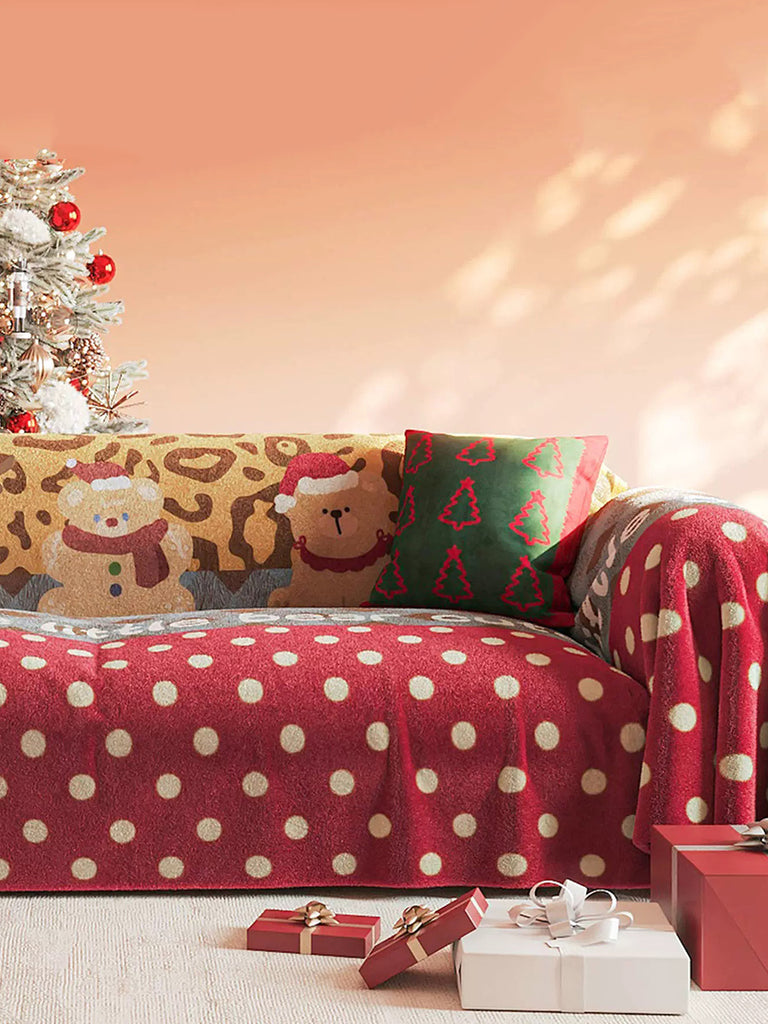 冬季聖誕風圓點成人床罩沙發毯
