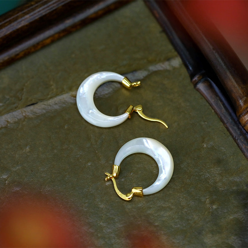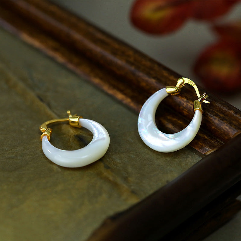 女士 Artsy 白珠母貝 S925 銀耳環