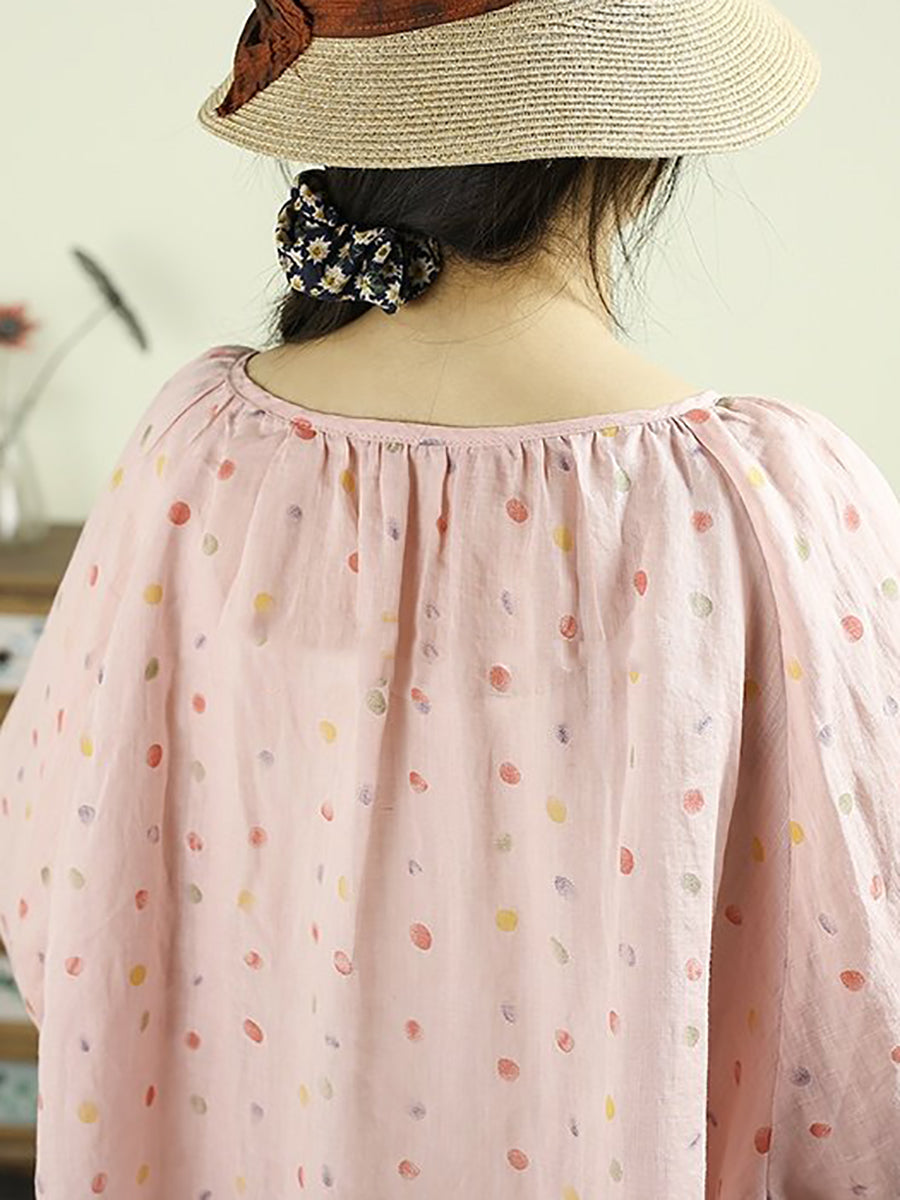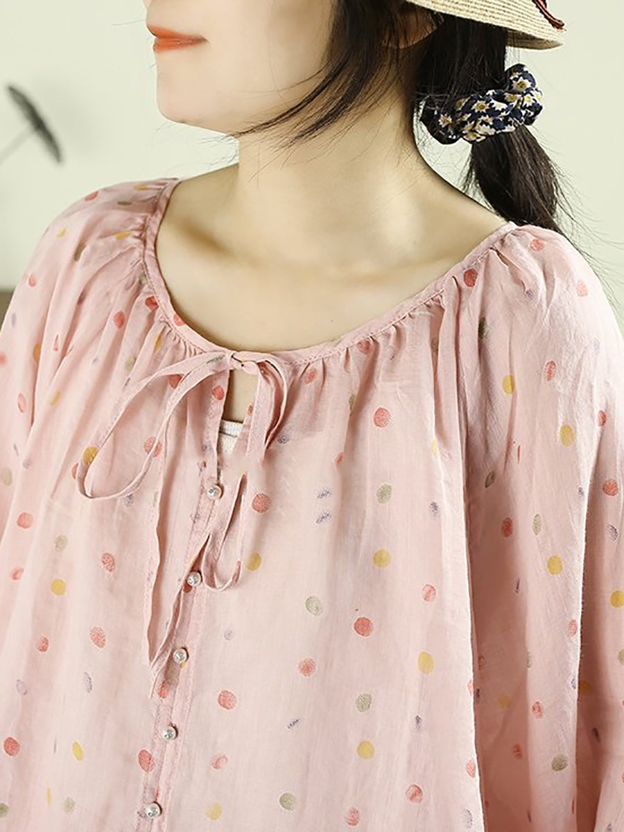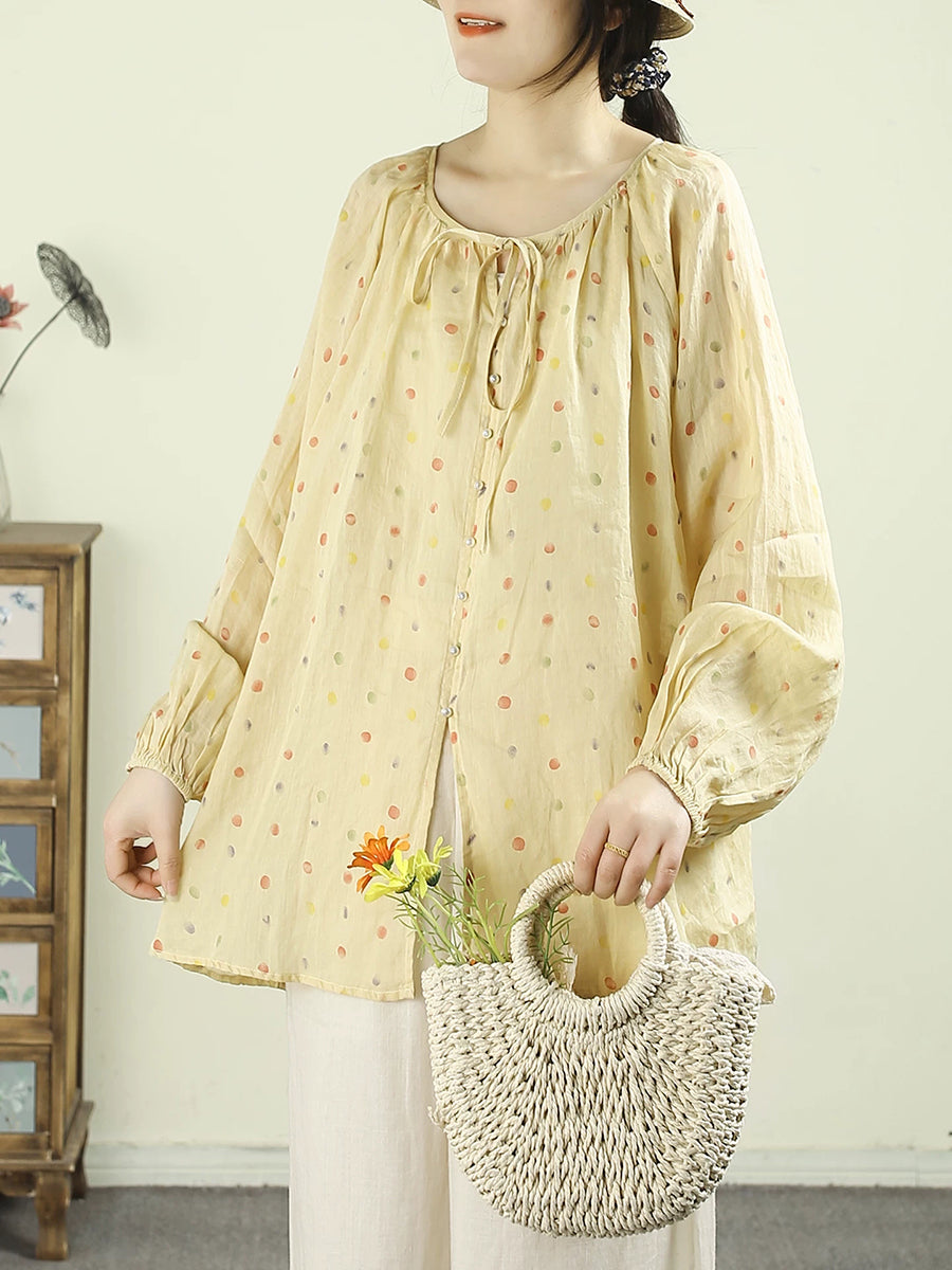 女士藝術風春季圓領圓領100%苧麻襯衫