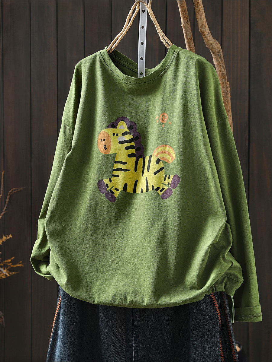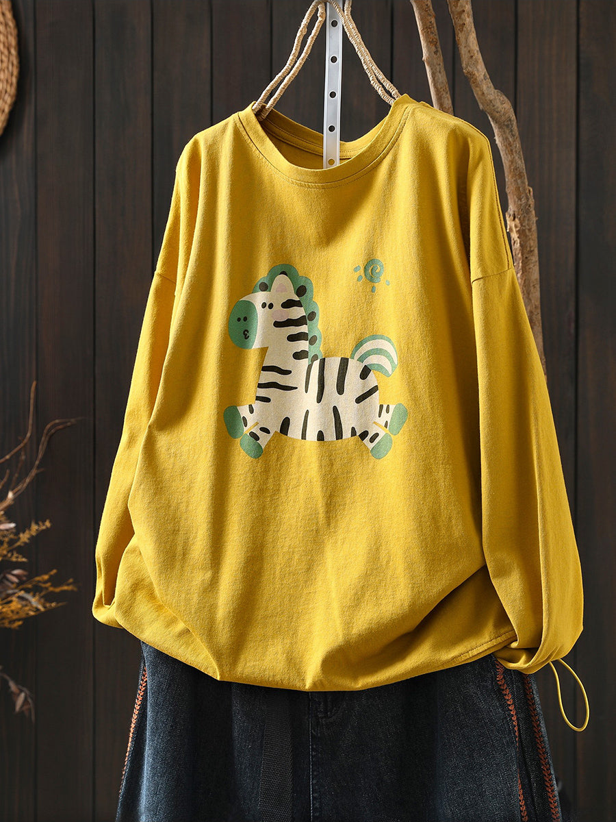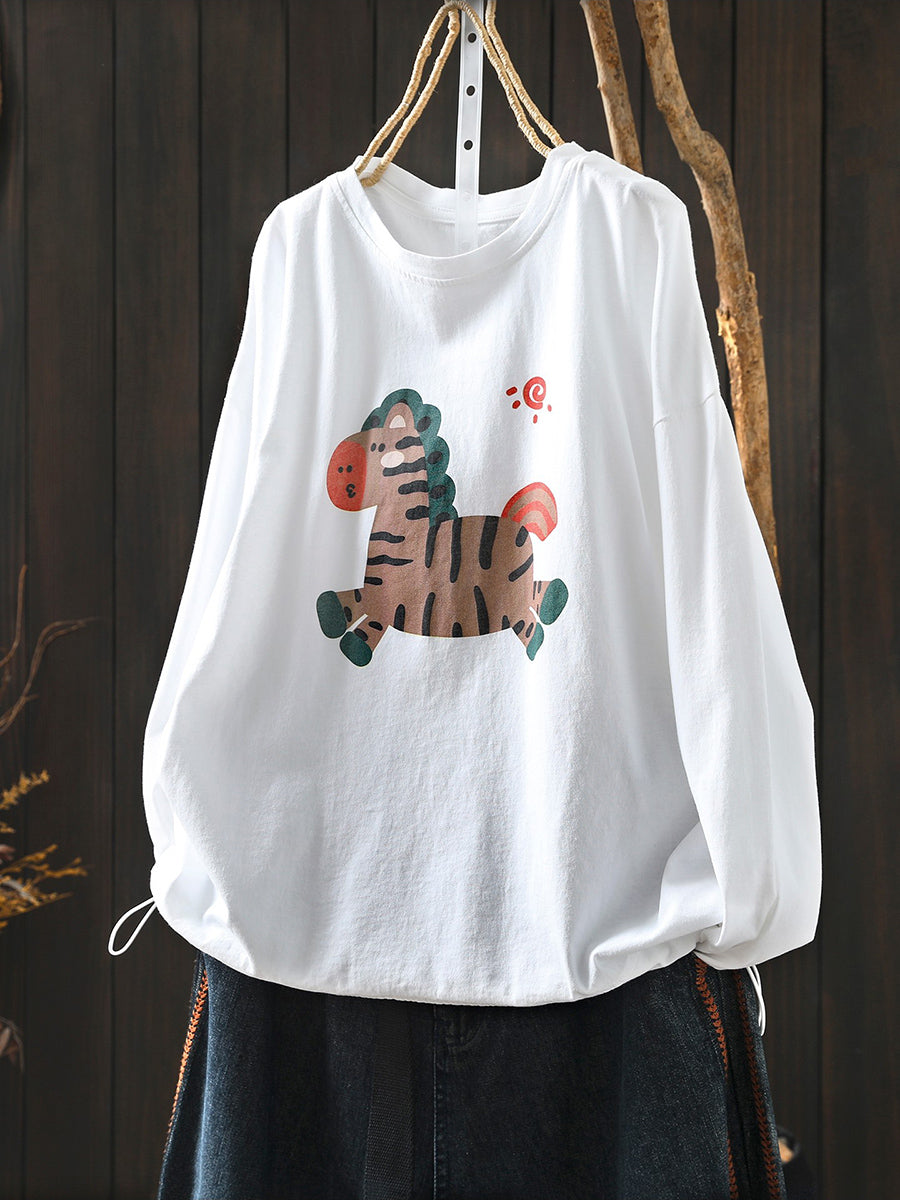 女士 Artsy 春季馬圖案棉質圓領襯衫