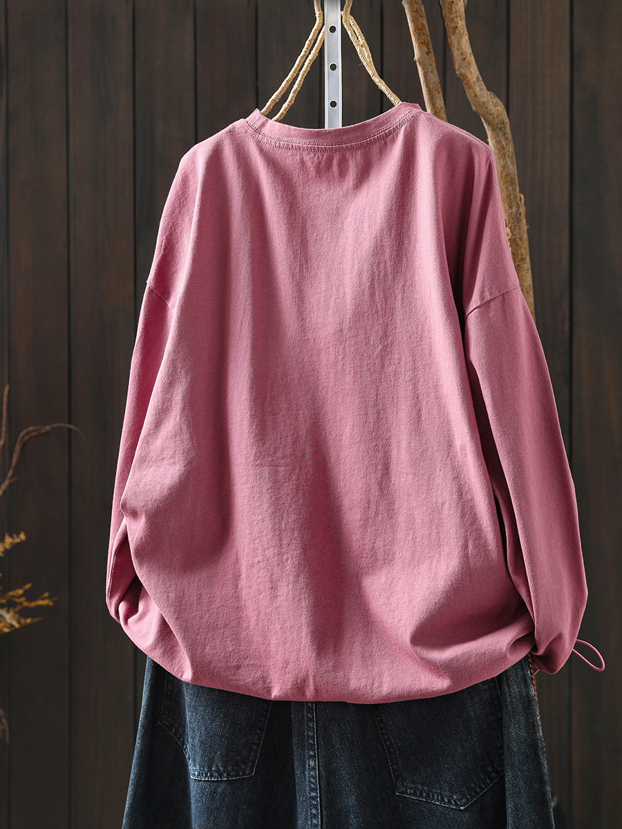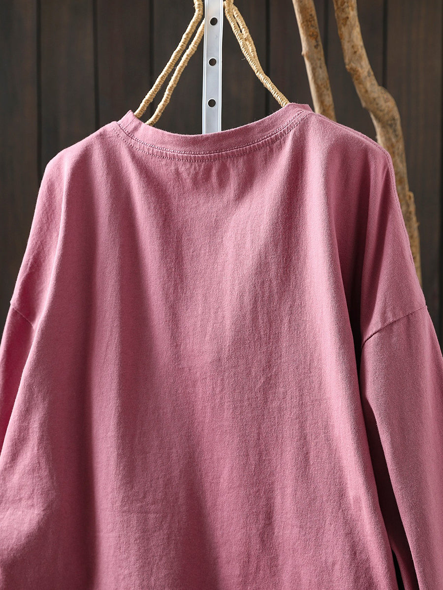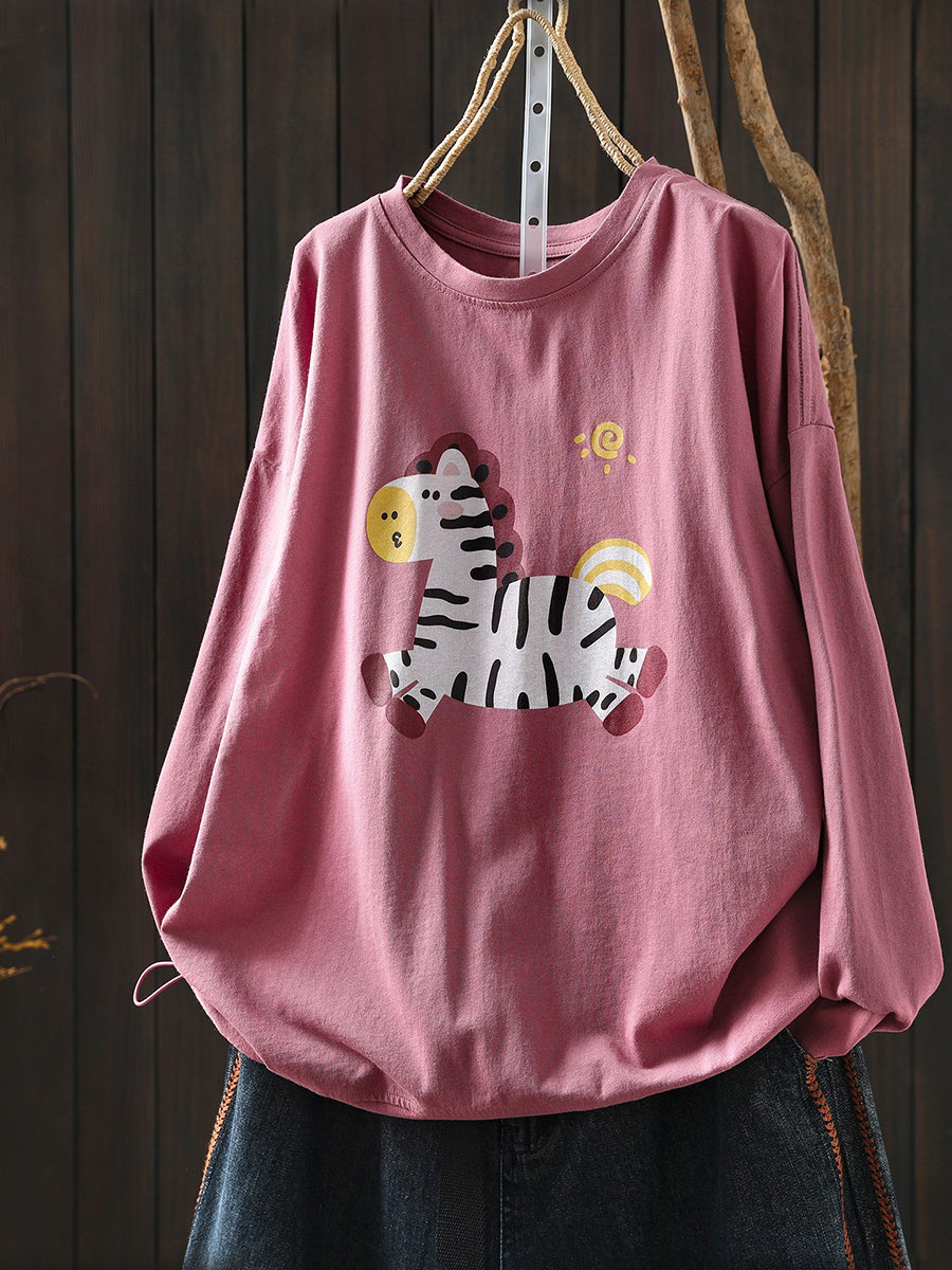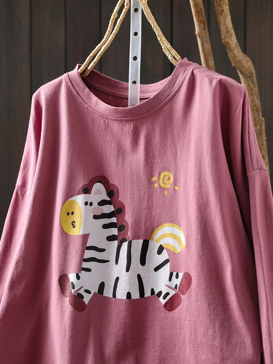 女士 Artsy 春季馬圖案棉質圓領襯衫