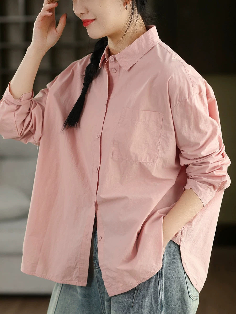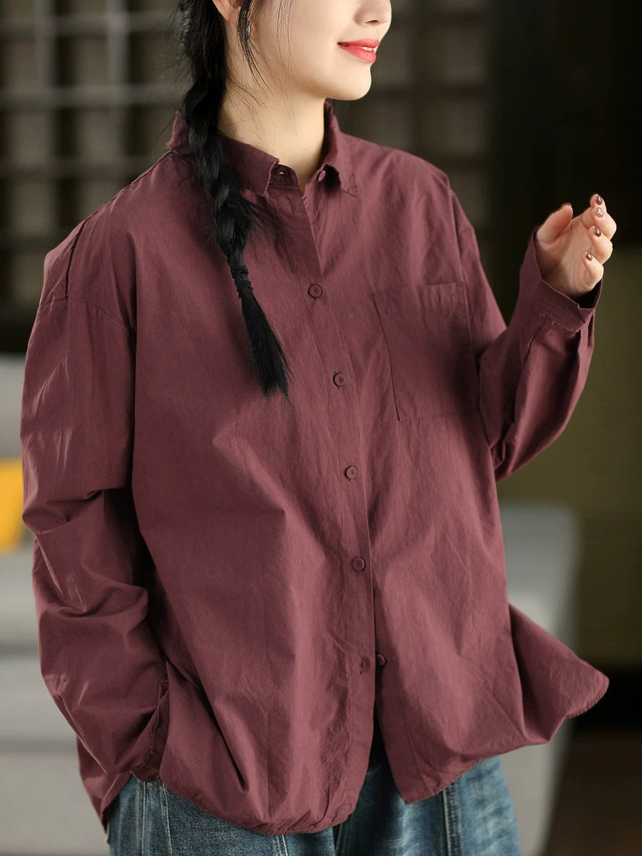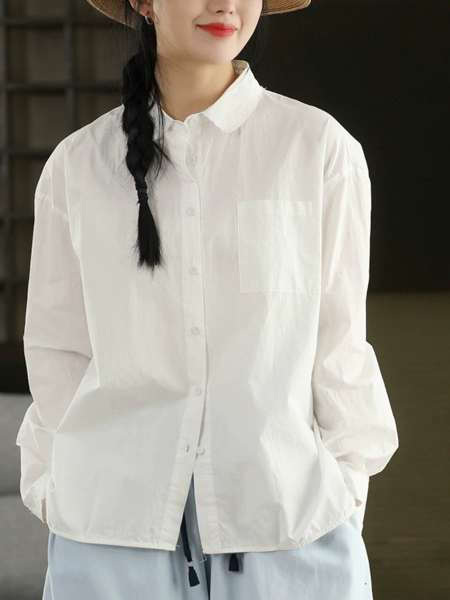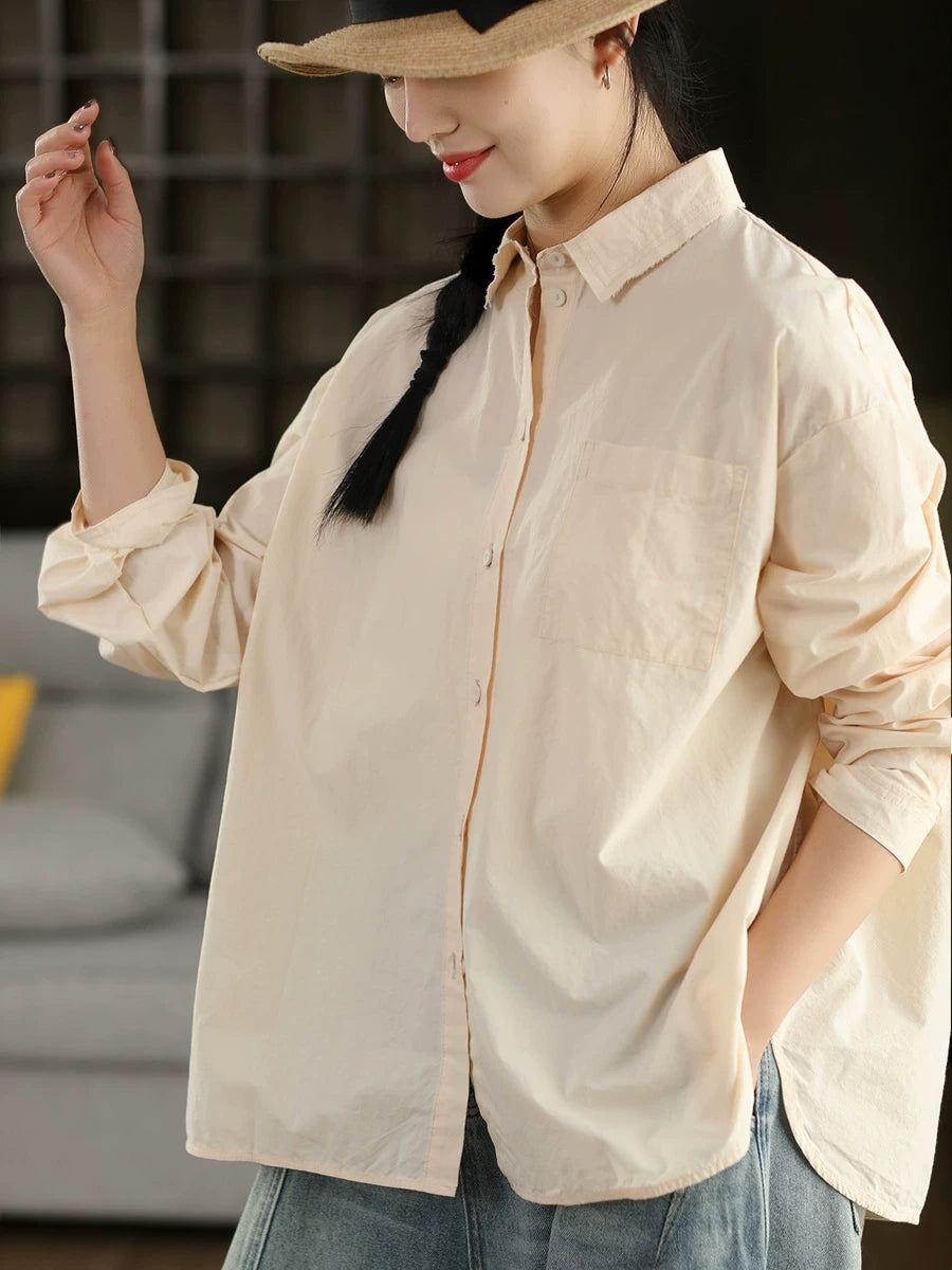 女士藝術風春季純色100%純棉襯衫