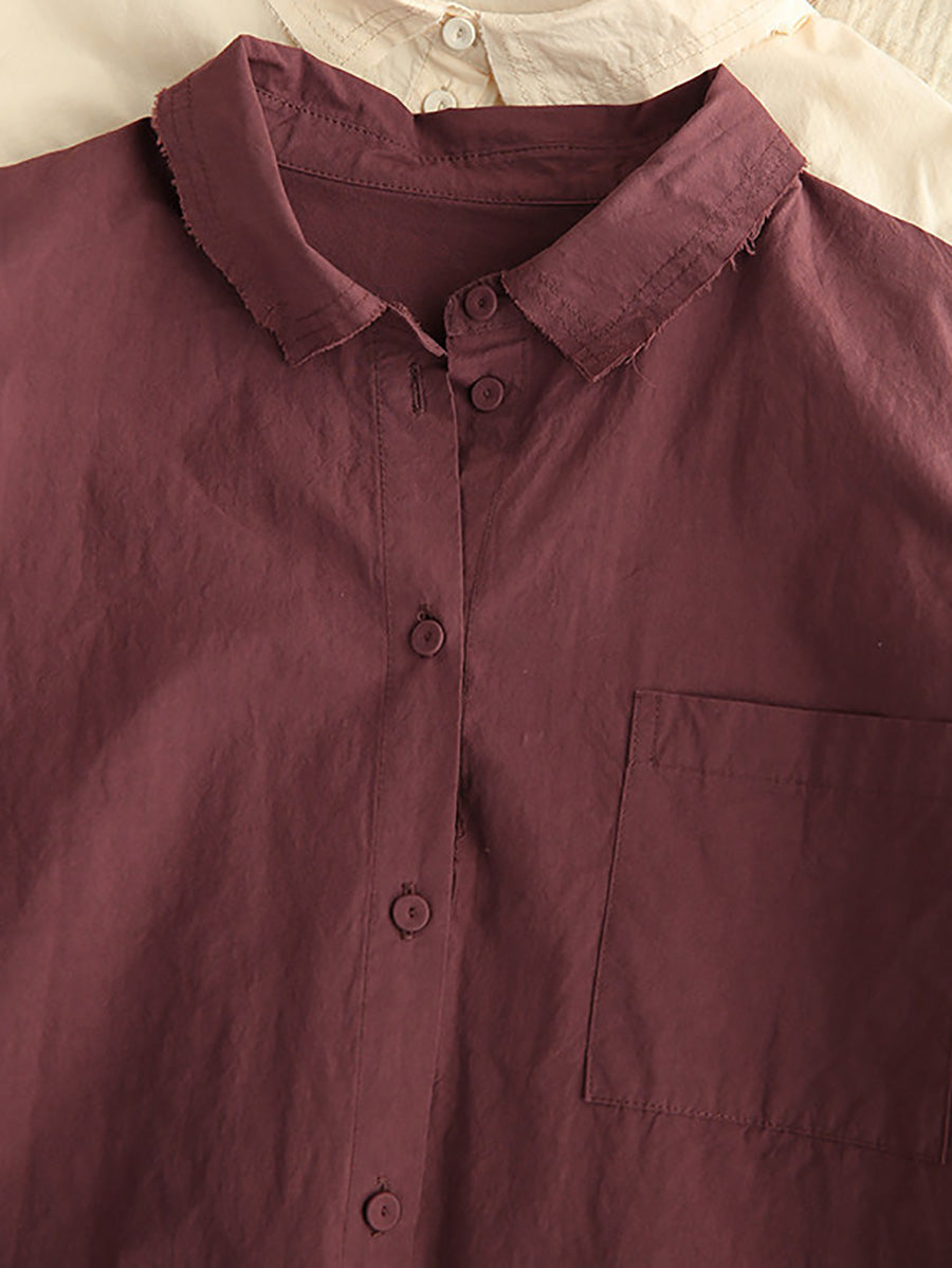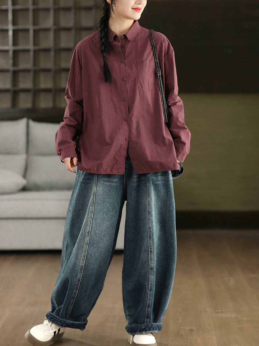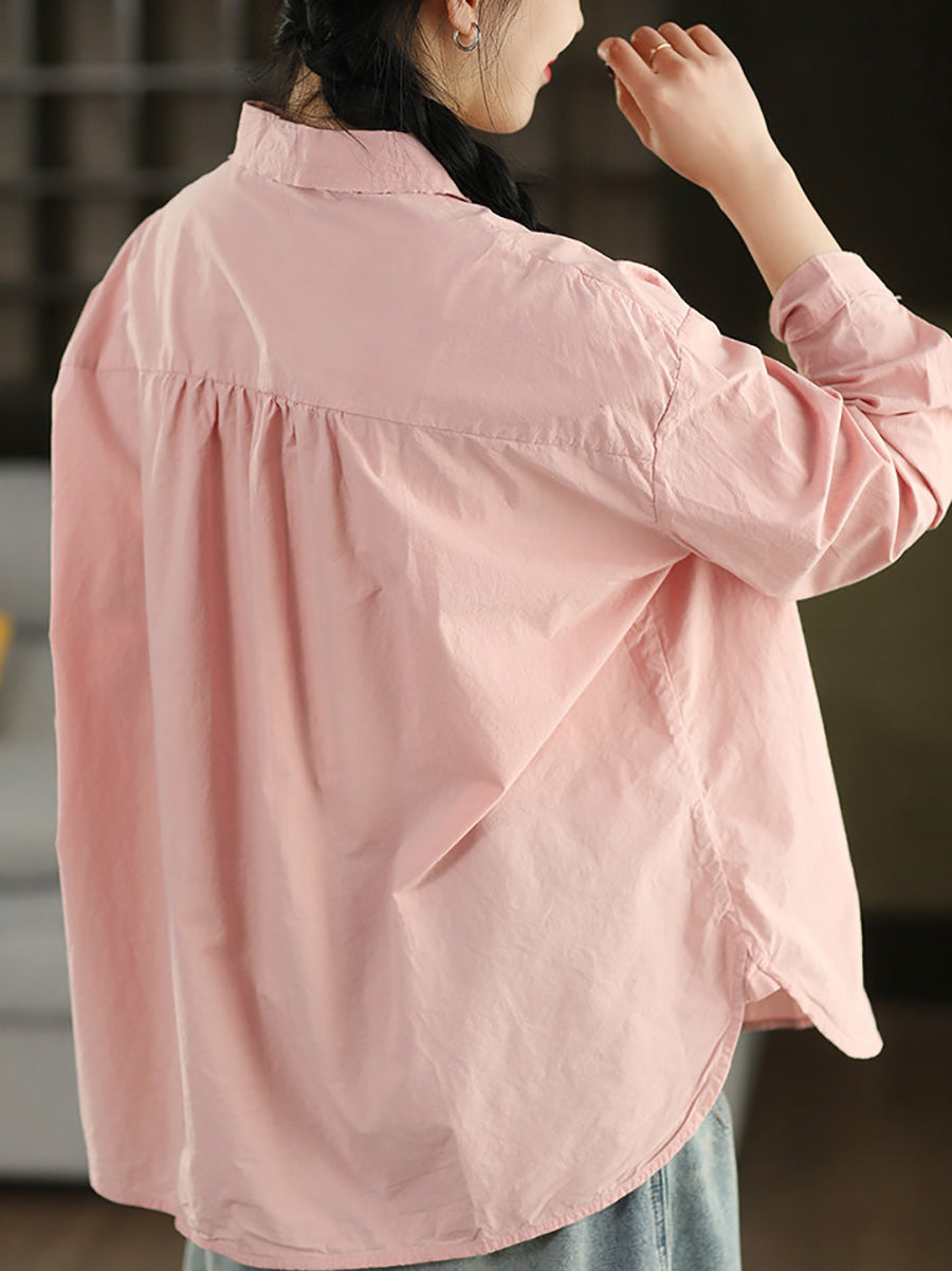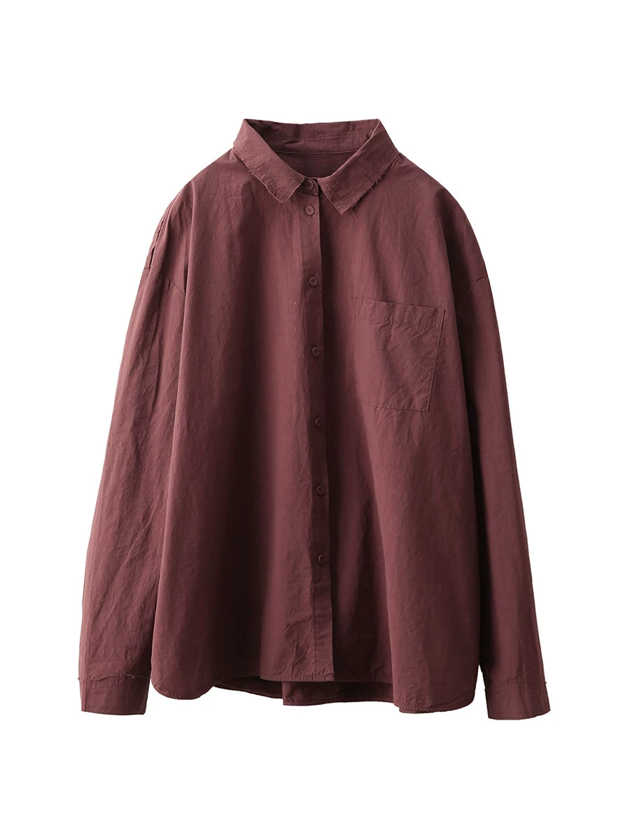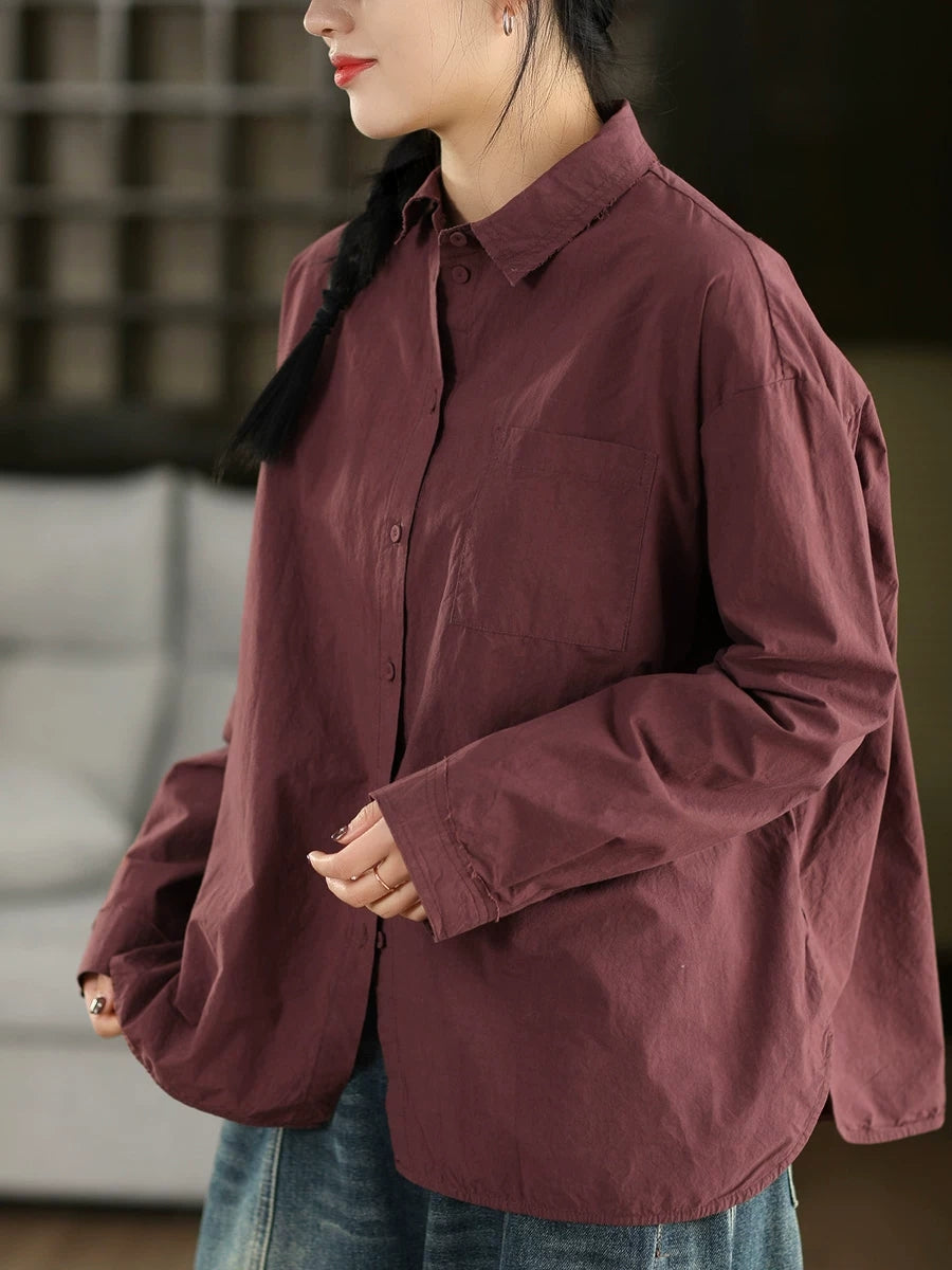 女士藝術風春季純色100%純棉襯衫