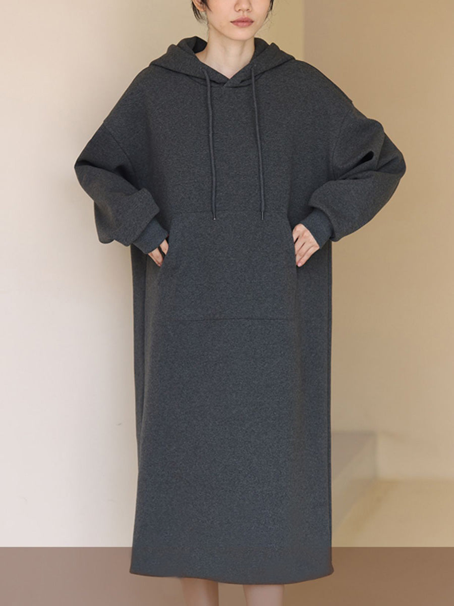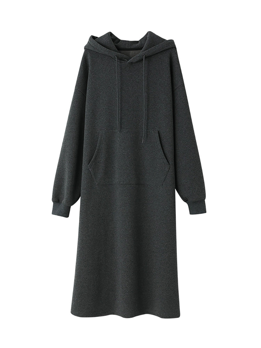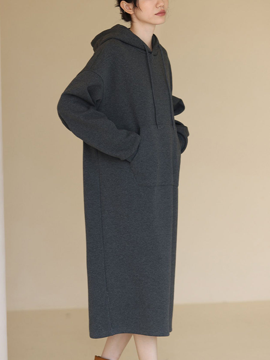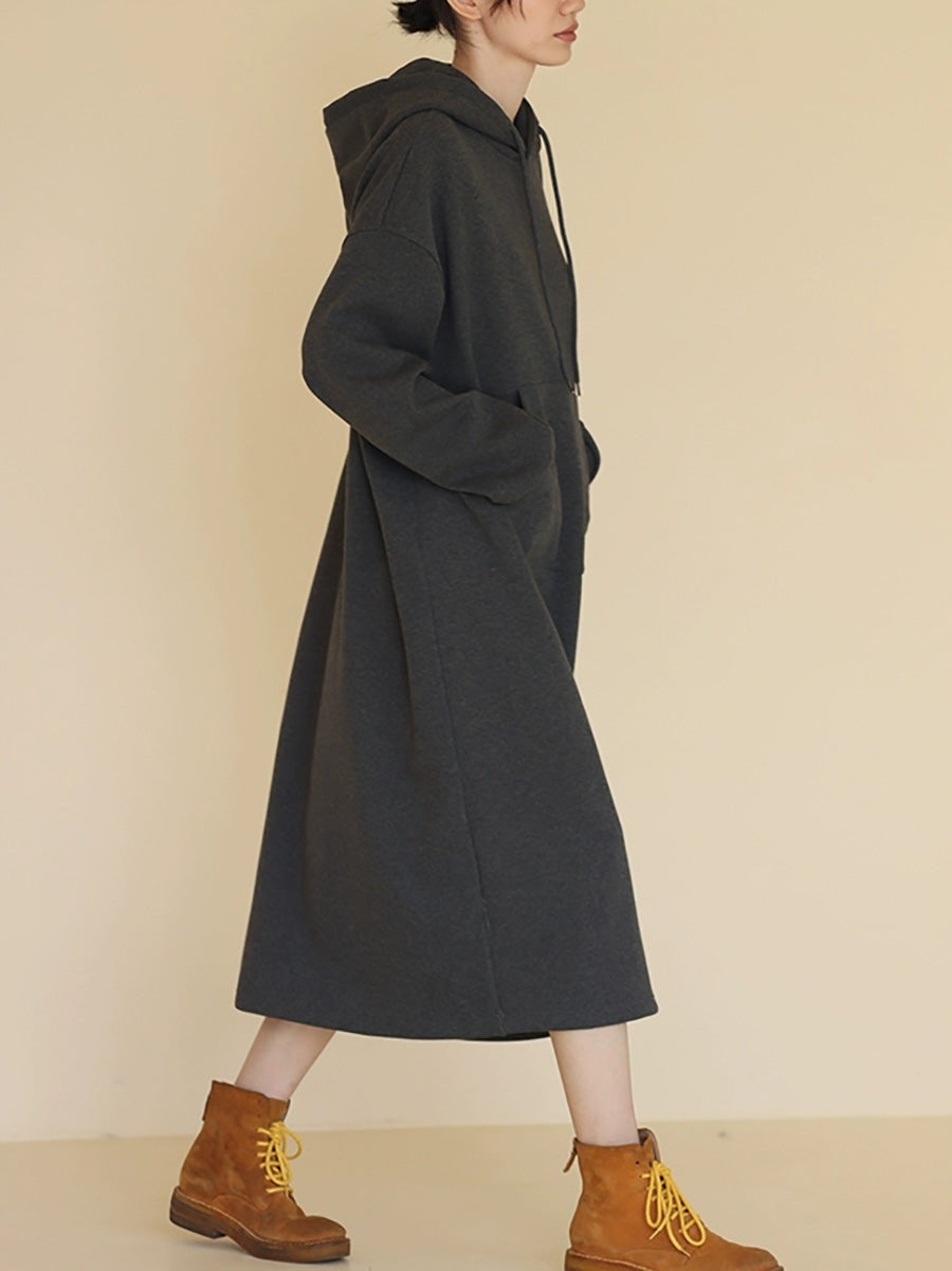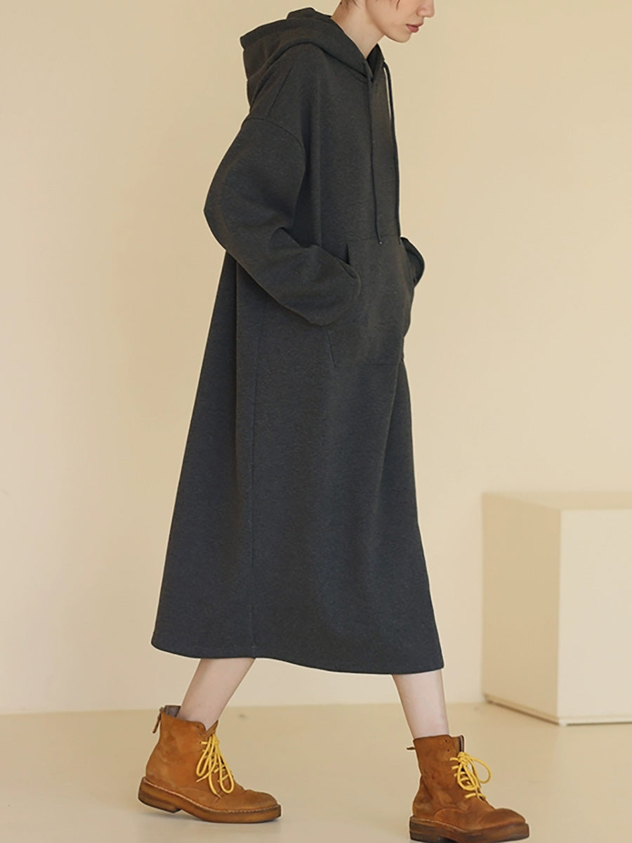 女士秋季休閒純色連帽長裙