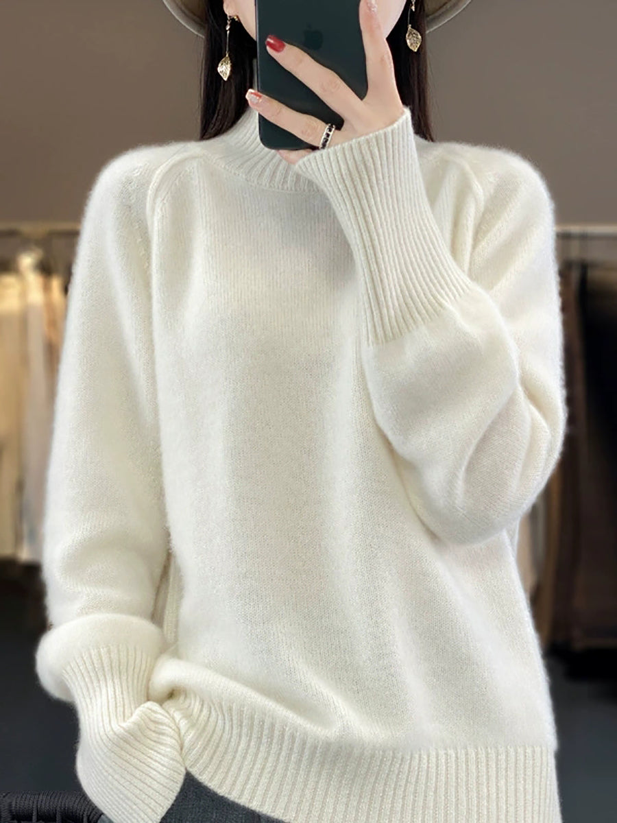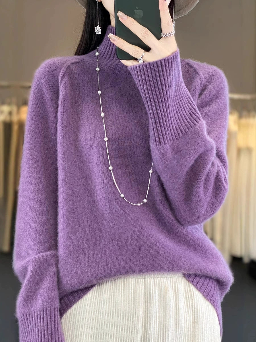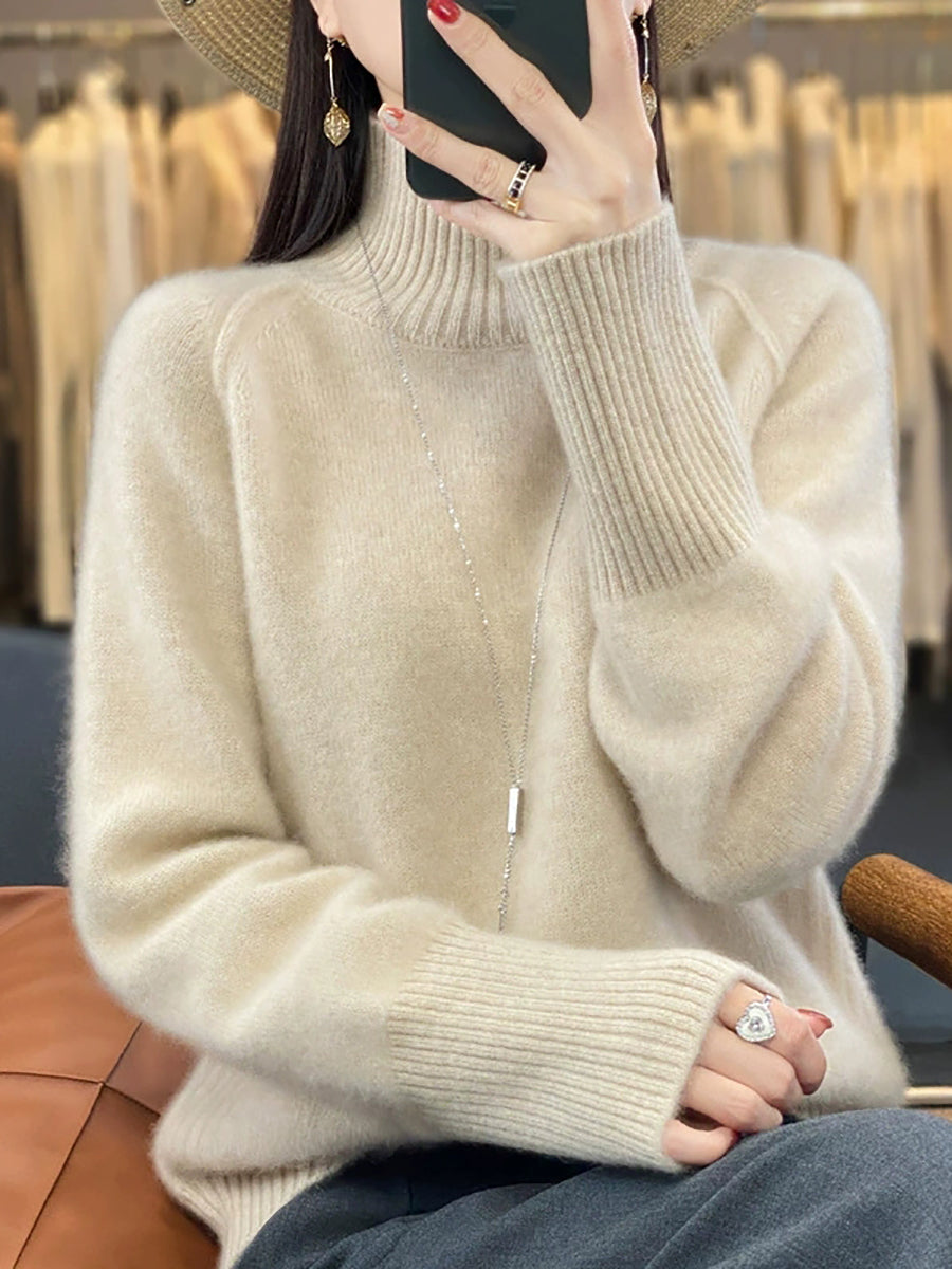 女士秋季休閒純色高領毛衣