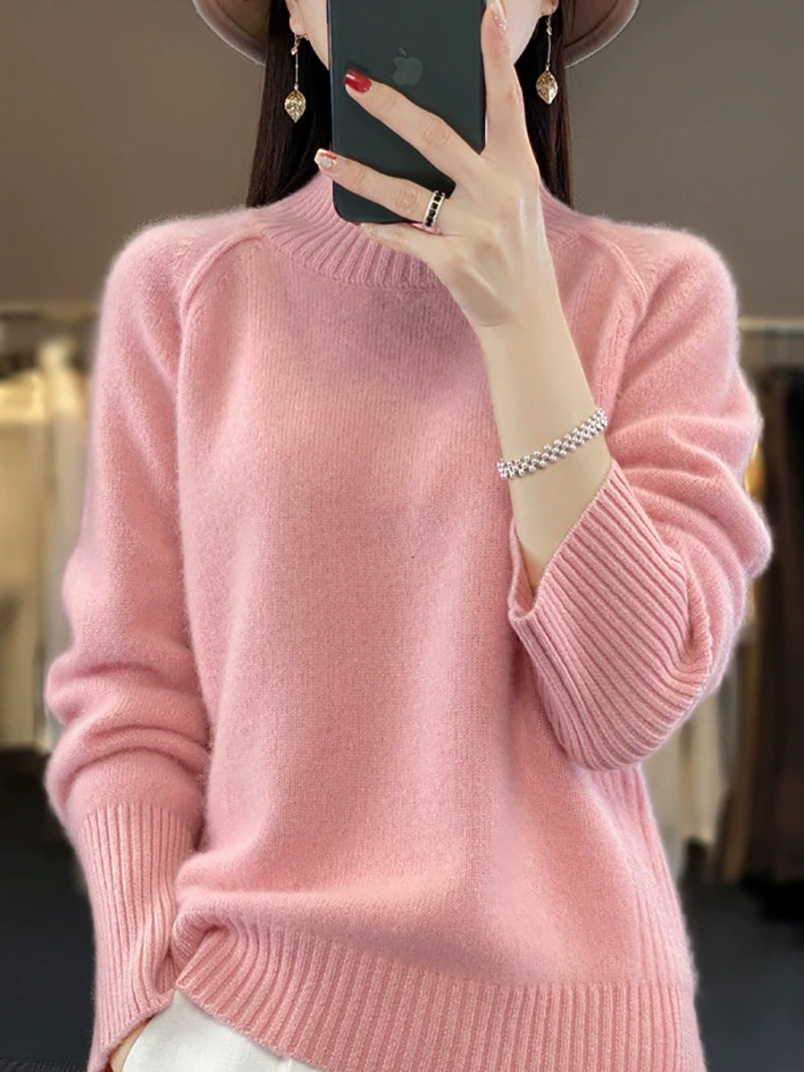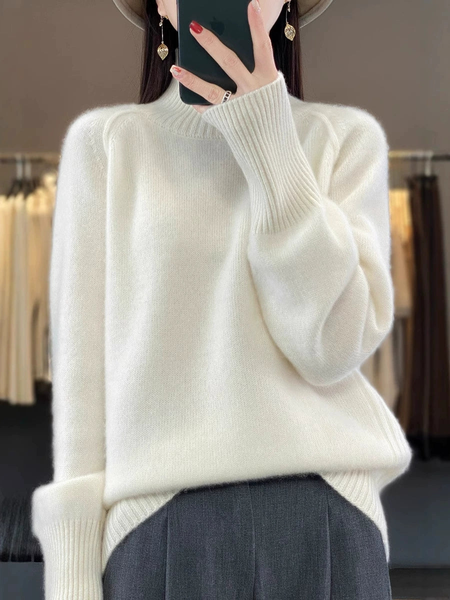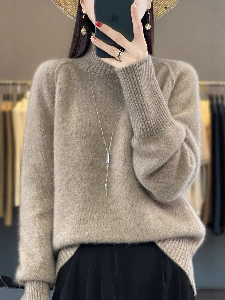 女士秋季休閒純色高領毛衣