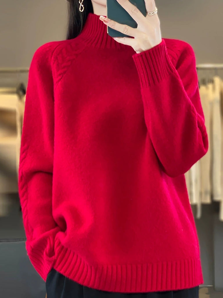 女士秋季純色羊毛半高領毛衣