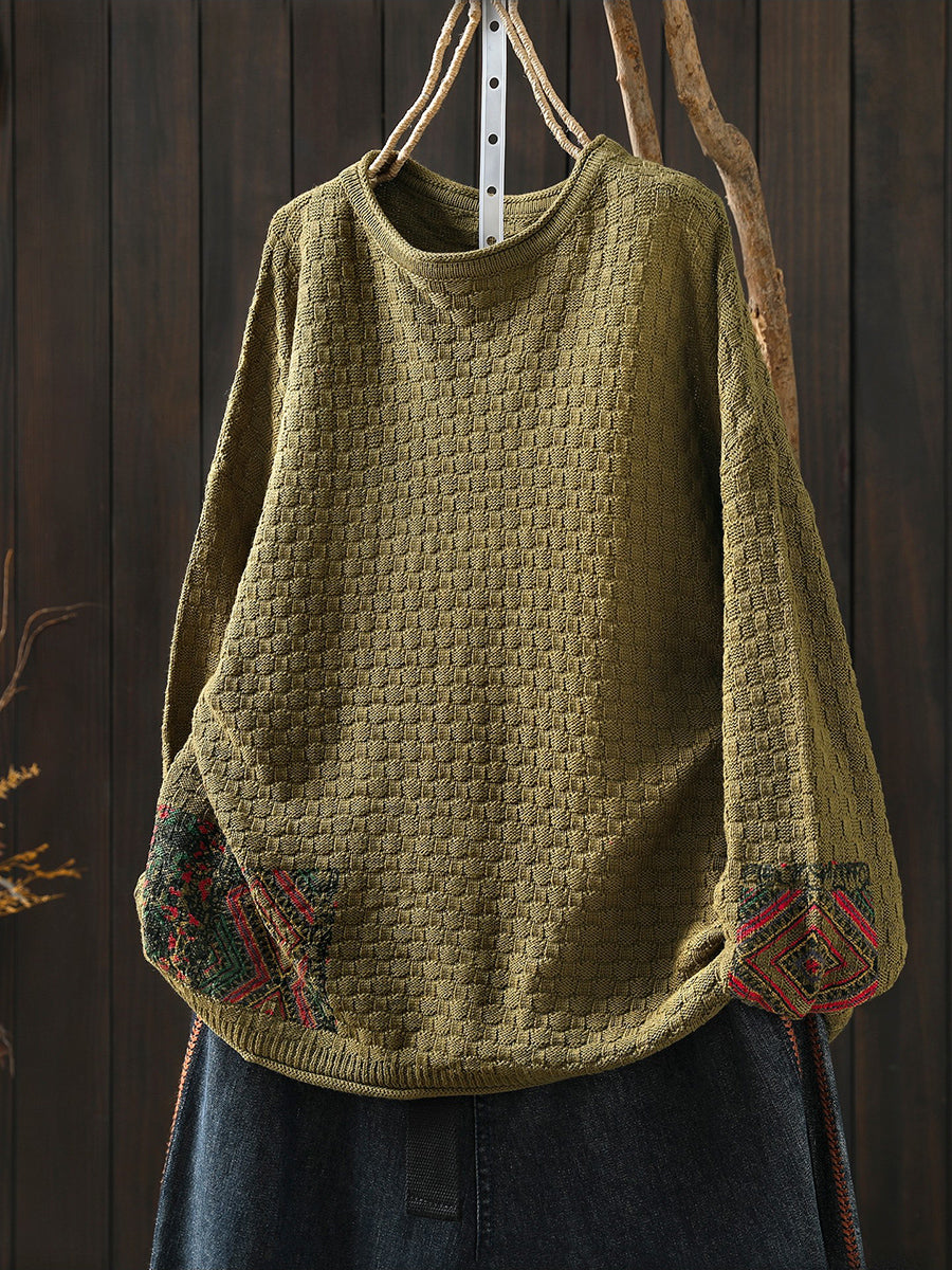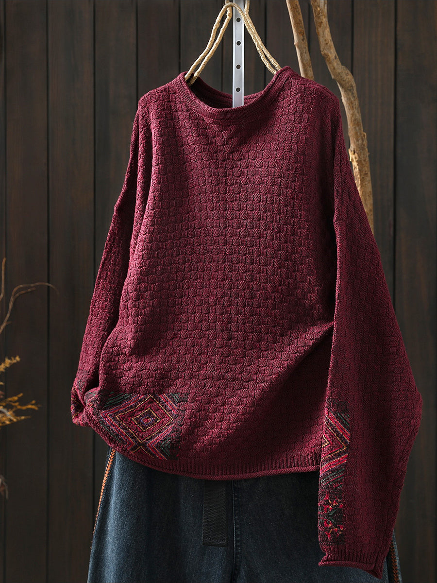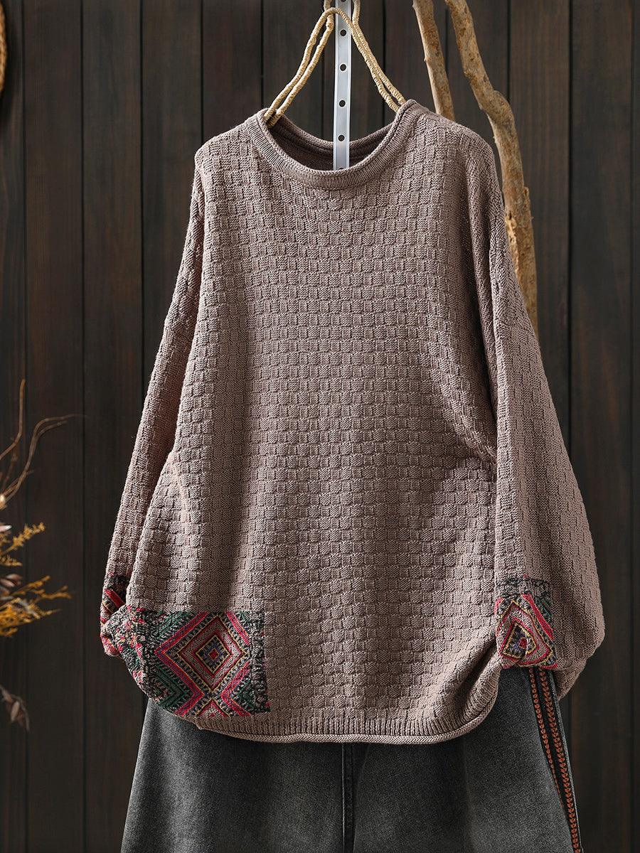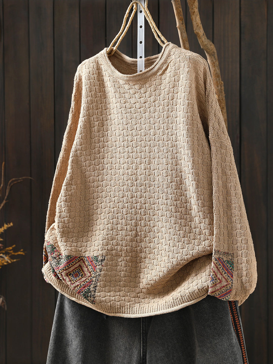 女士秋季復古針織圓領毛衣