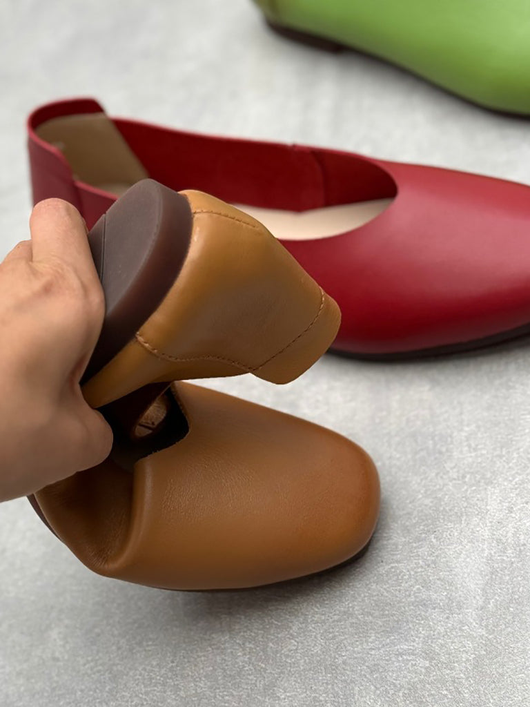 女款休閒純色夏季真皮平底鞋