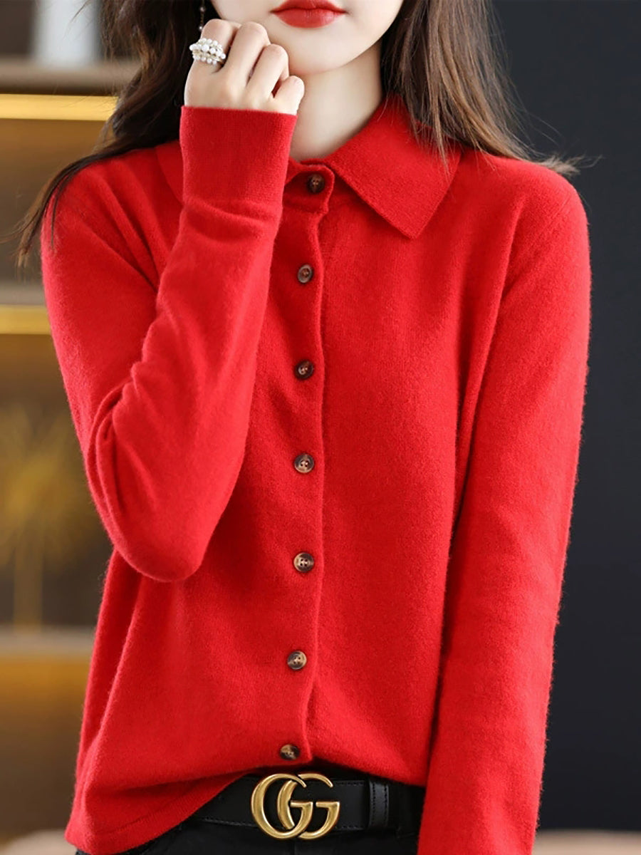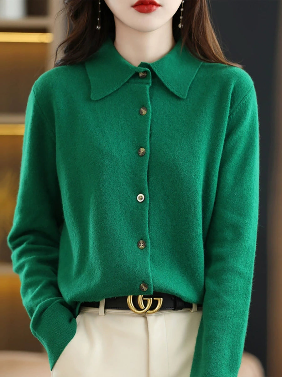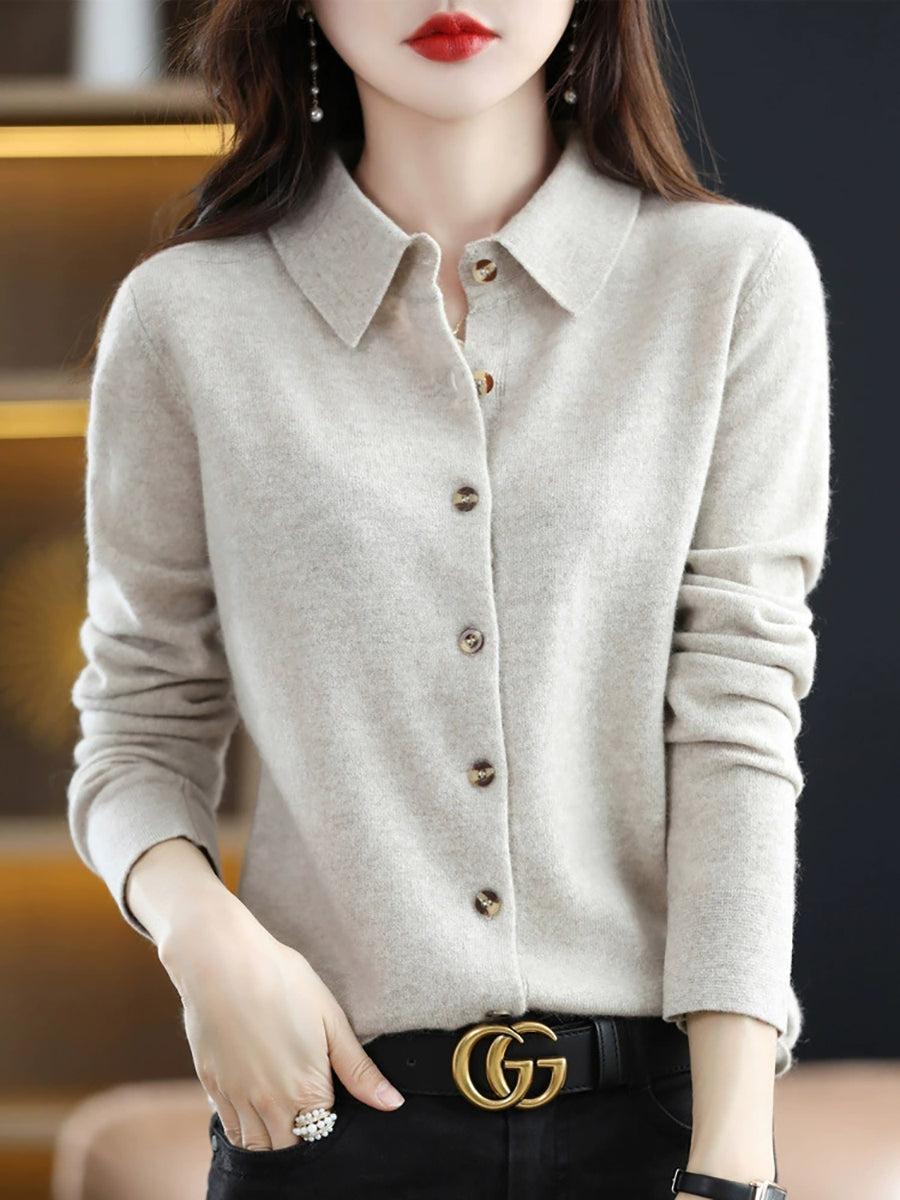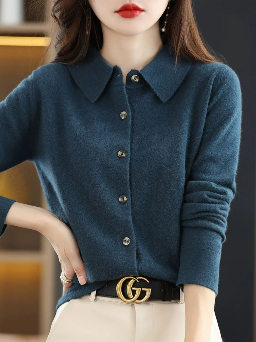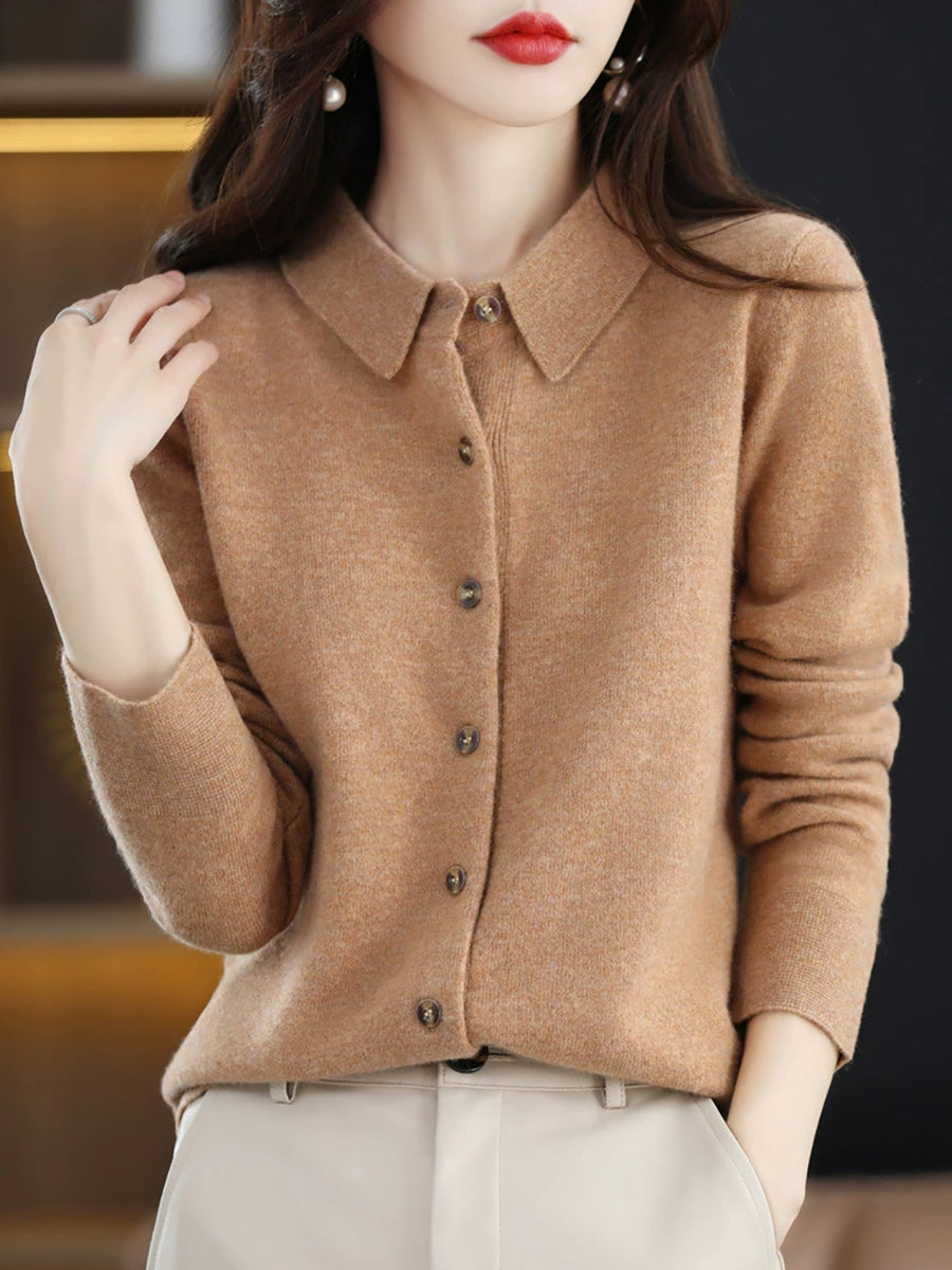 女士休閒春季翻領開襟毛衣