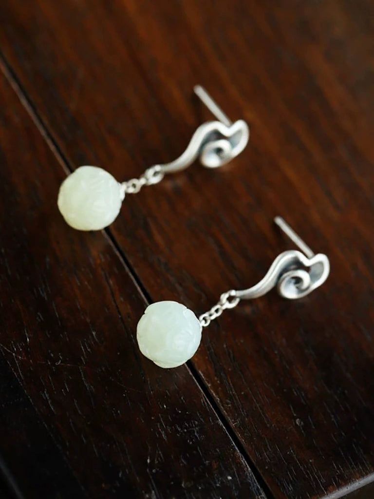 Women Ethnic Alloy Jade Flower Earrings
