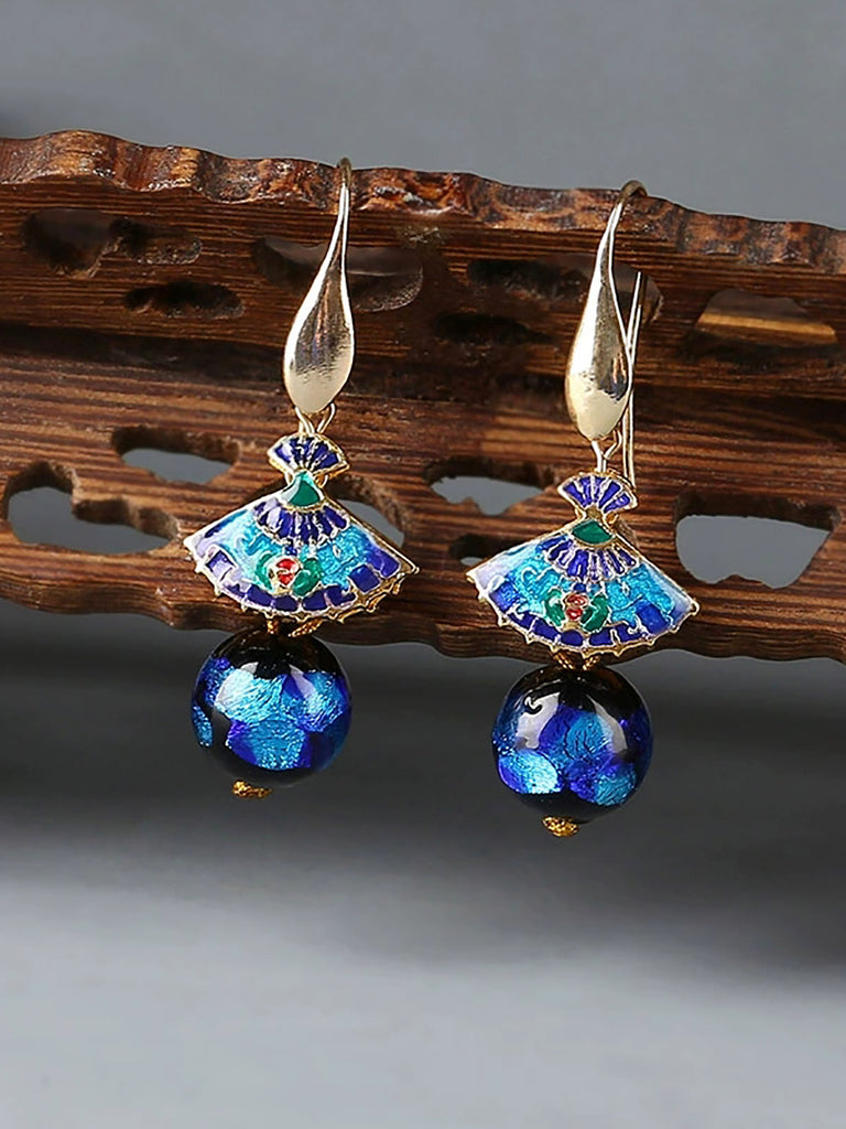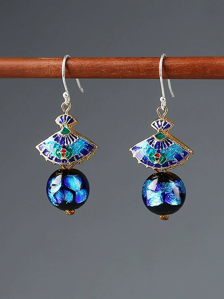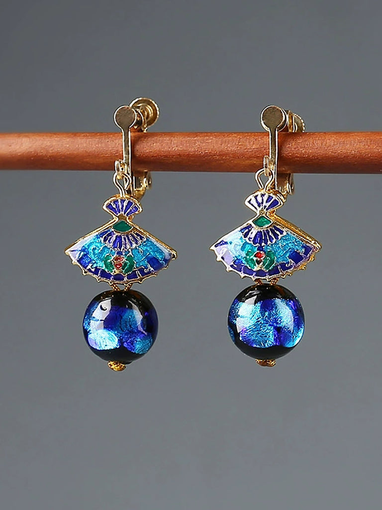 女士民族風景泰藍扇貝耳環