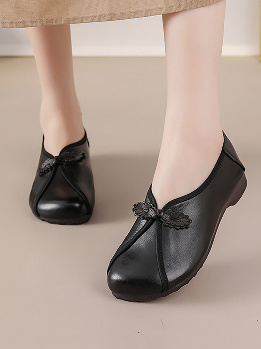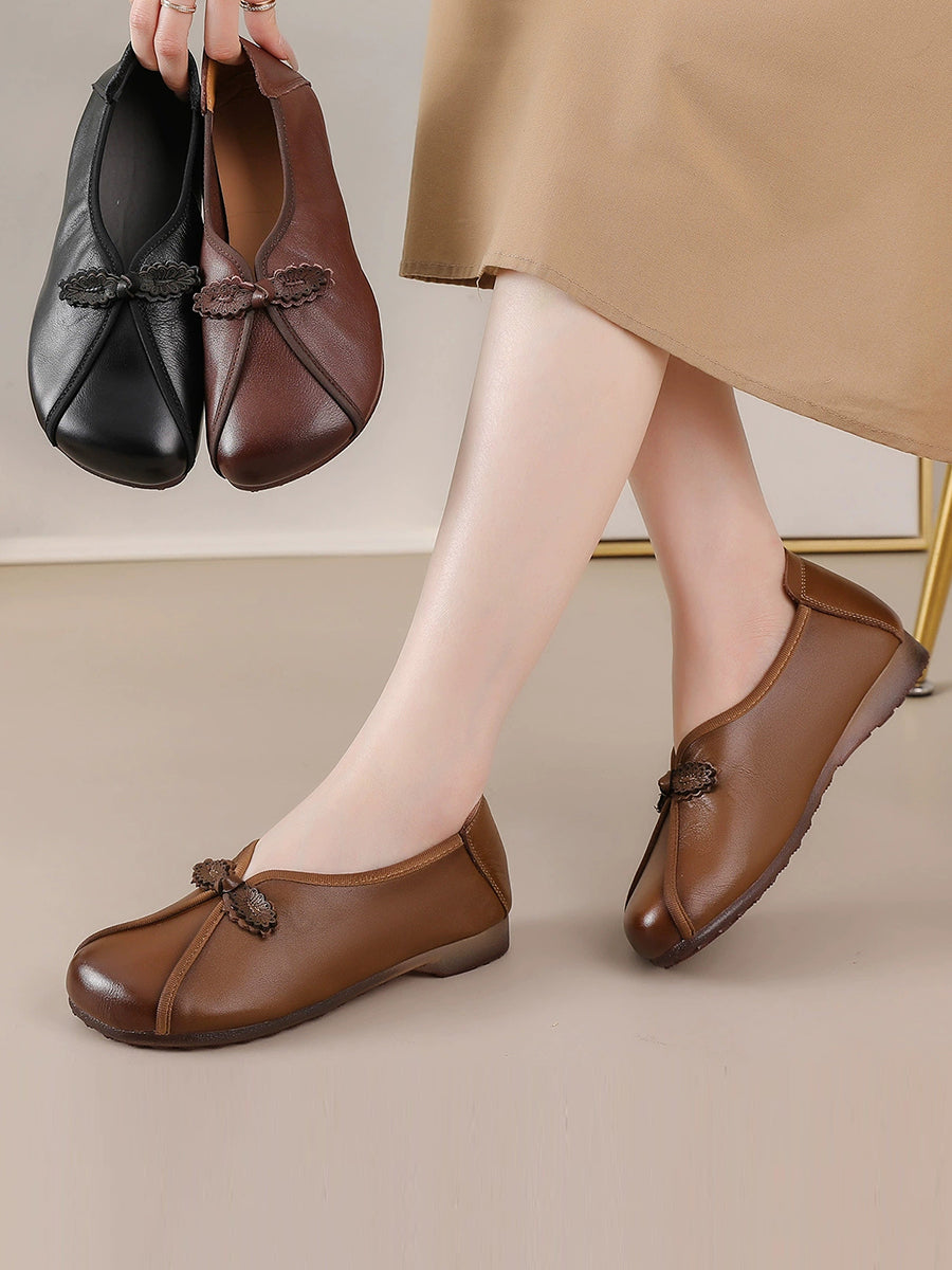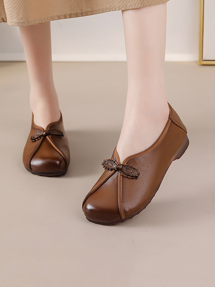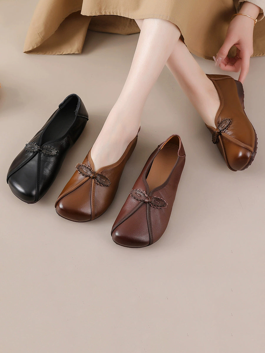 女士復古真皮拼接鞋
