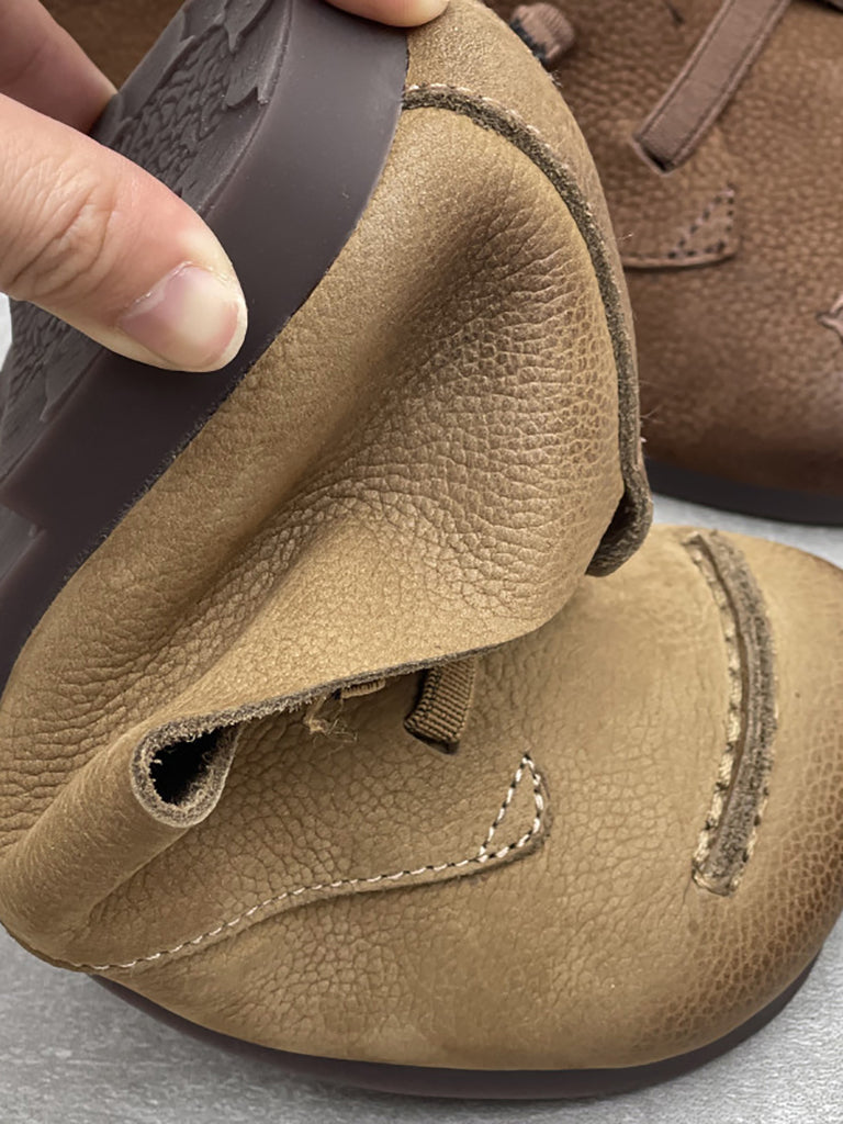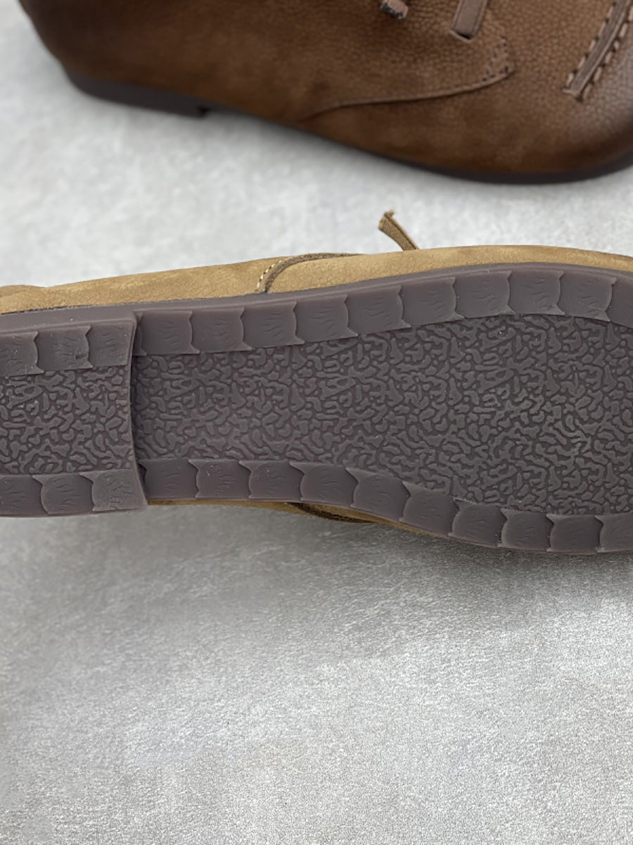 女士復古軟皮拼接低跟鞋