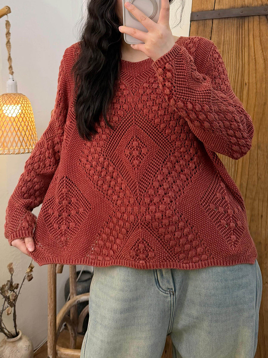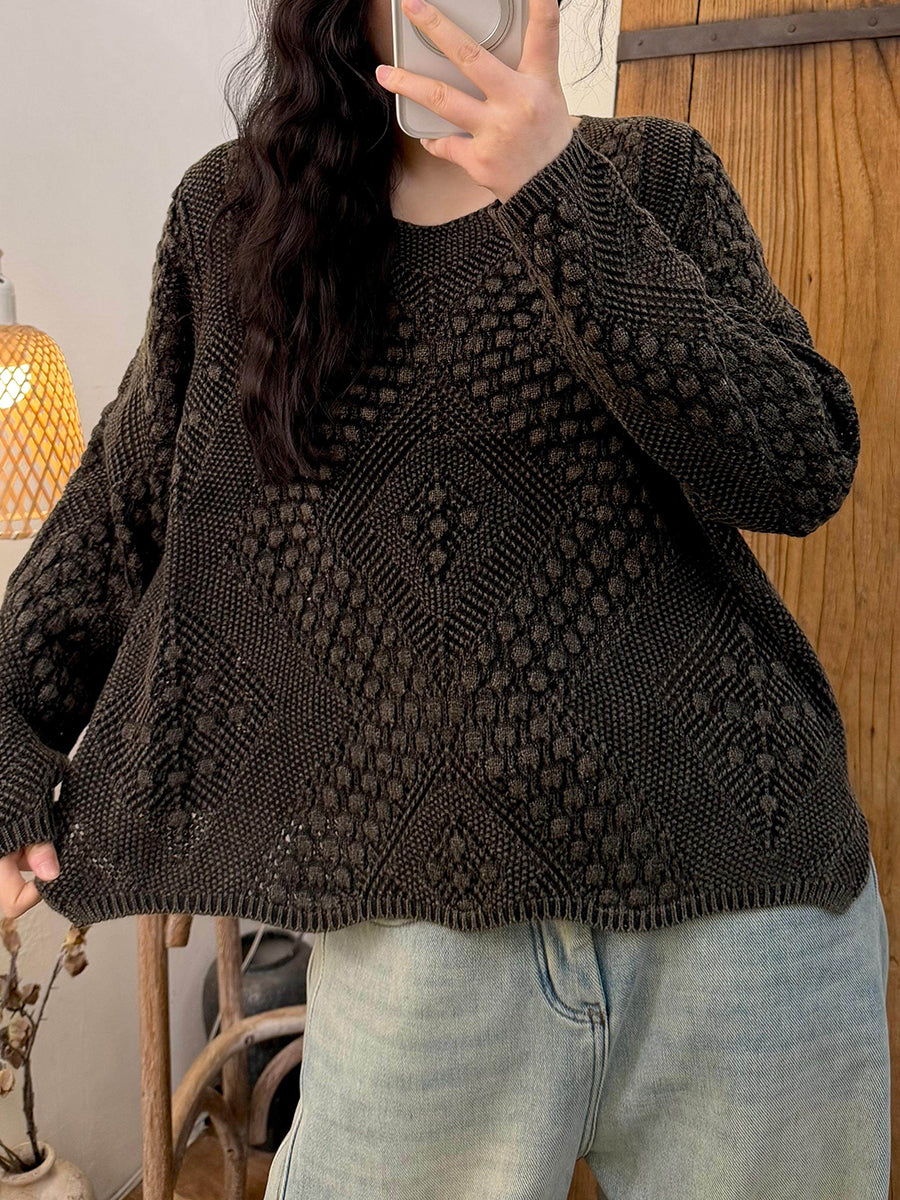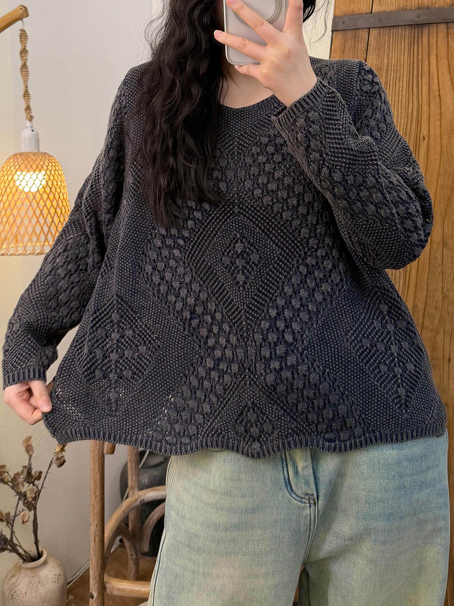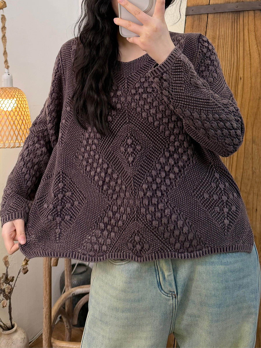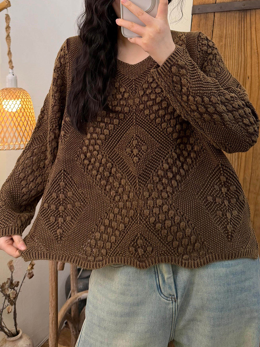 女士復古春季麻花針織V領毛衣