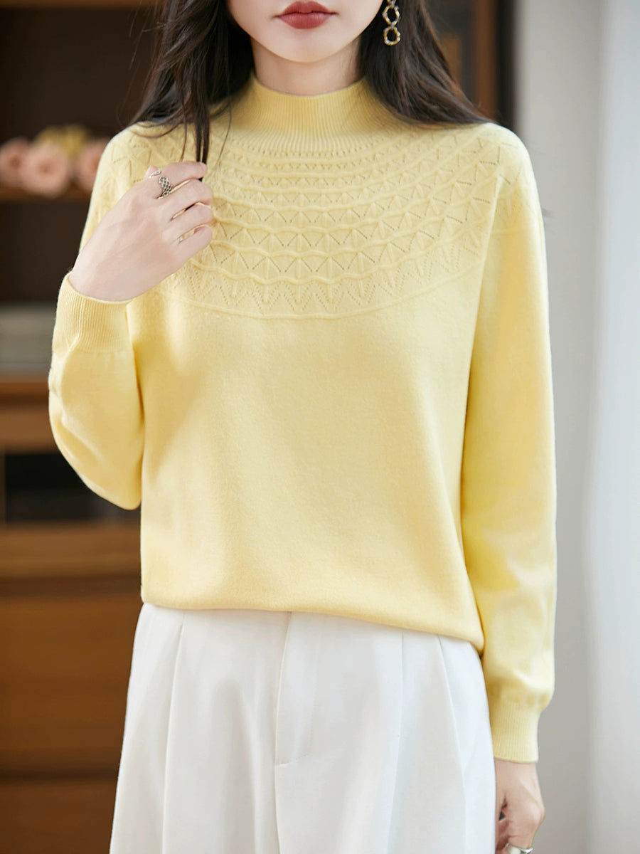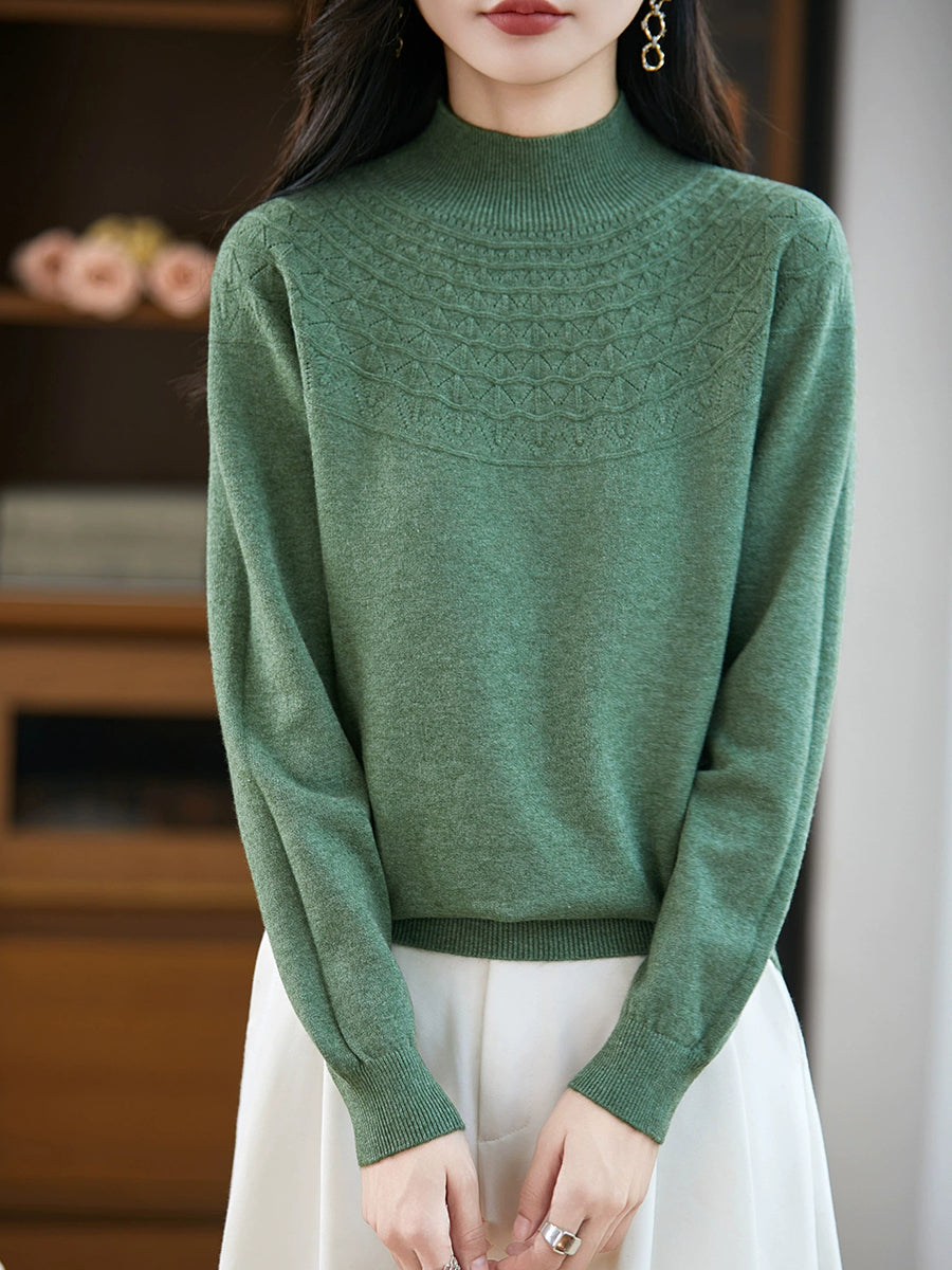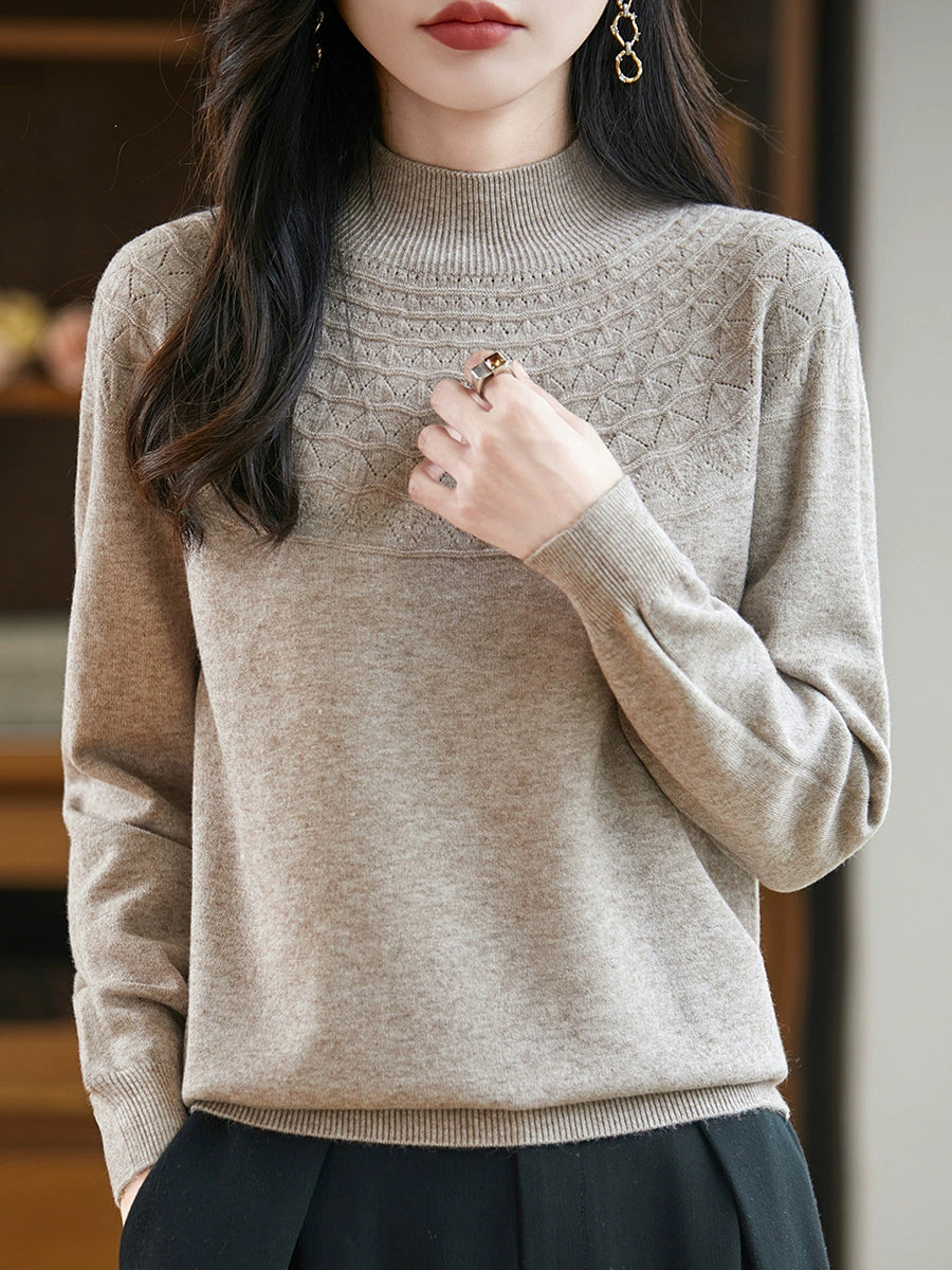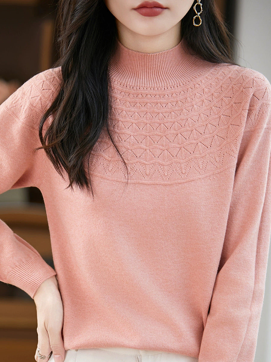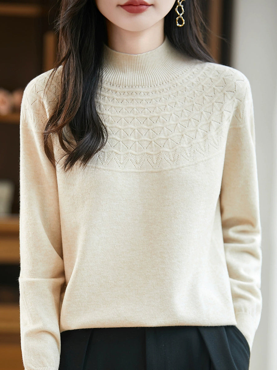 女士春季藝術風半高領毛衣