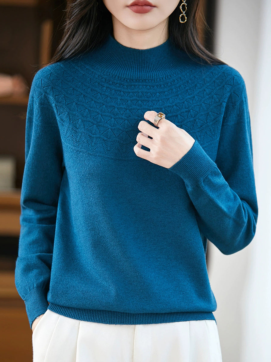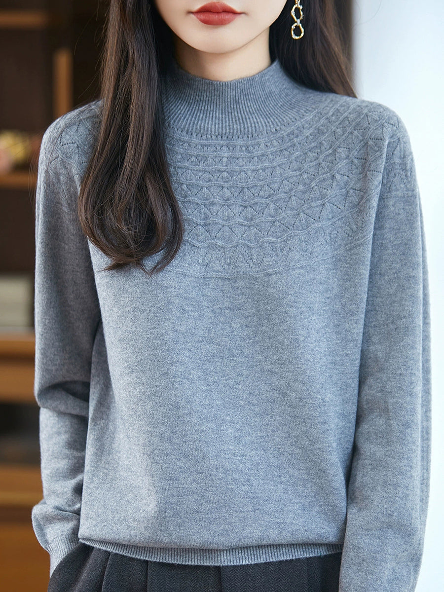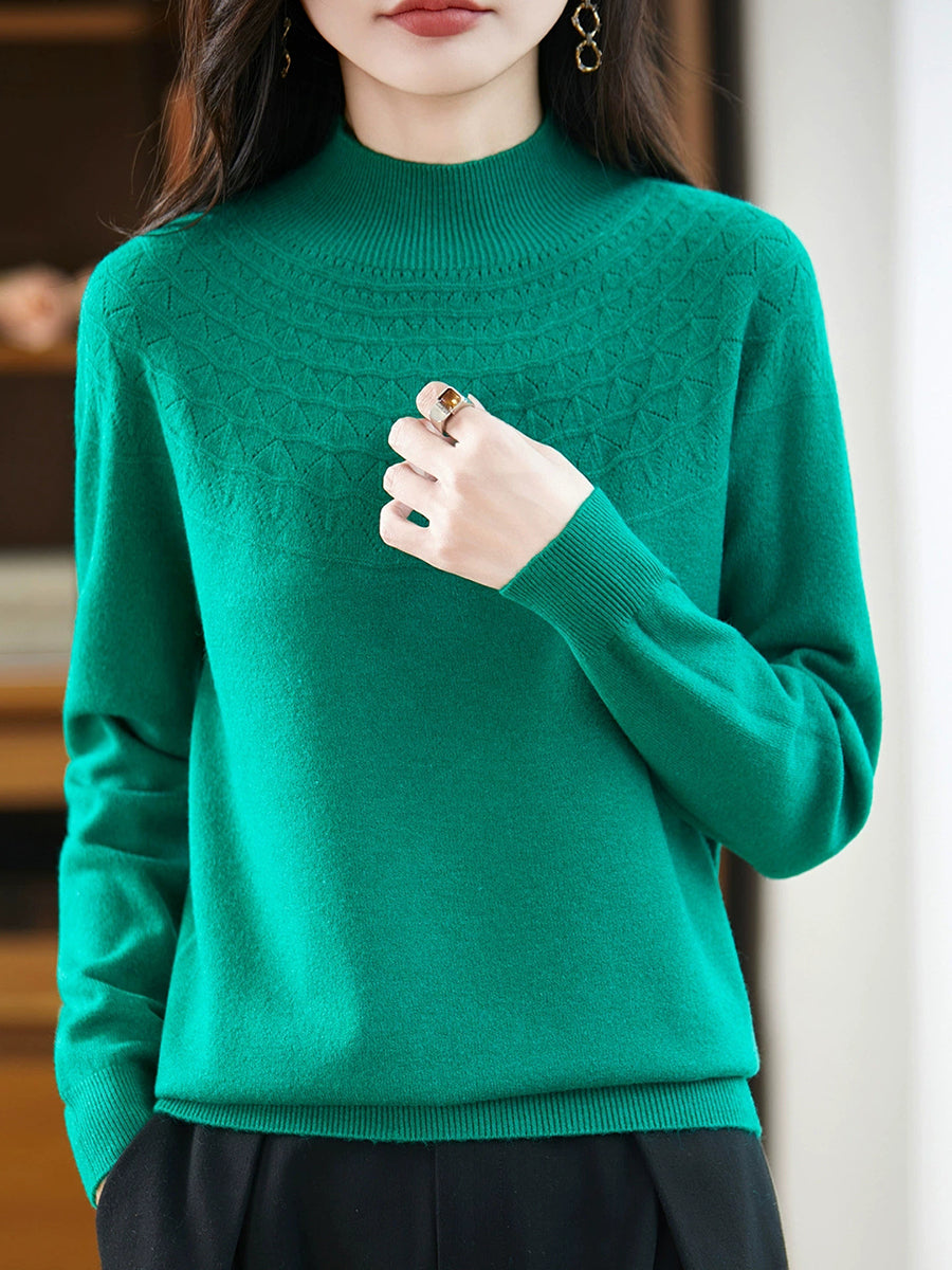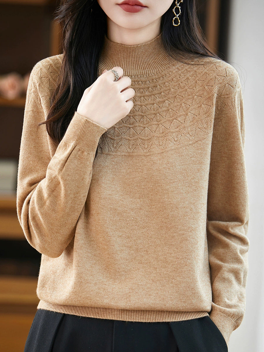 女士春季藝術風半高領毛衣