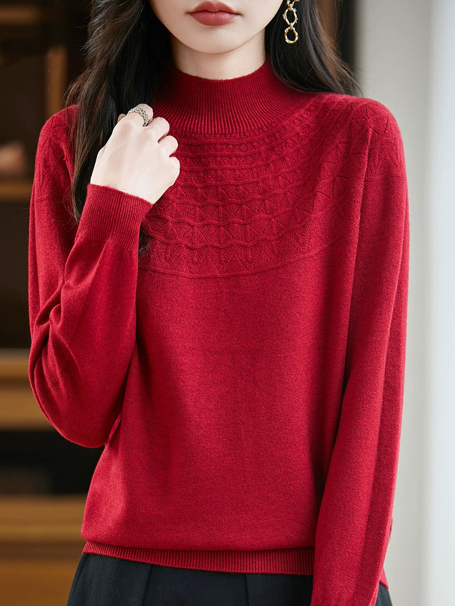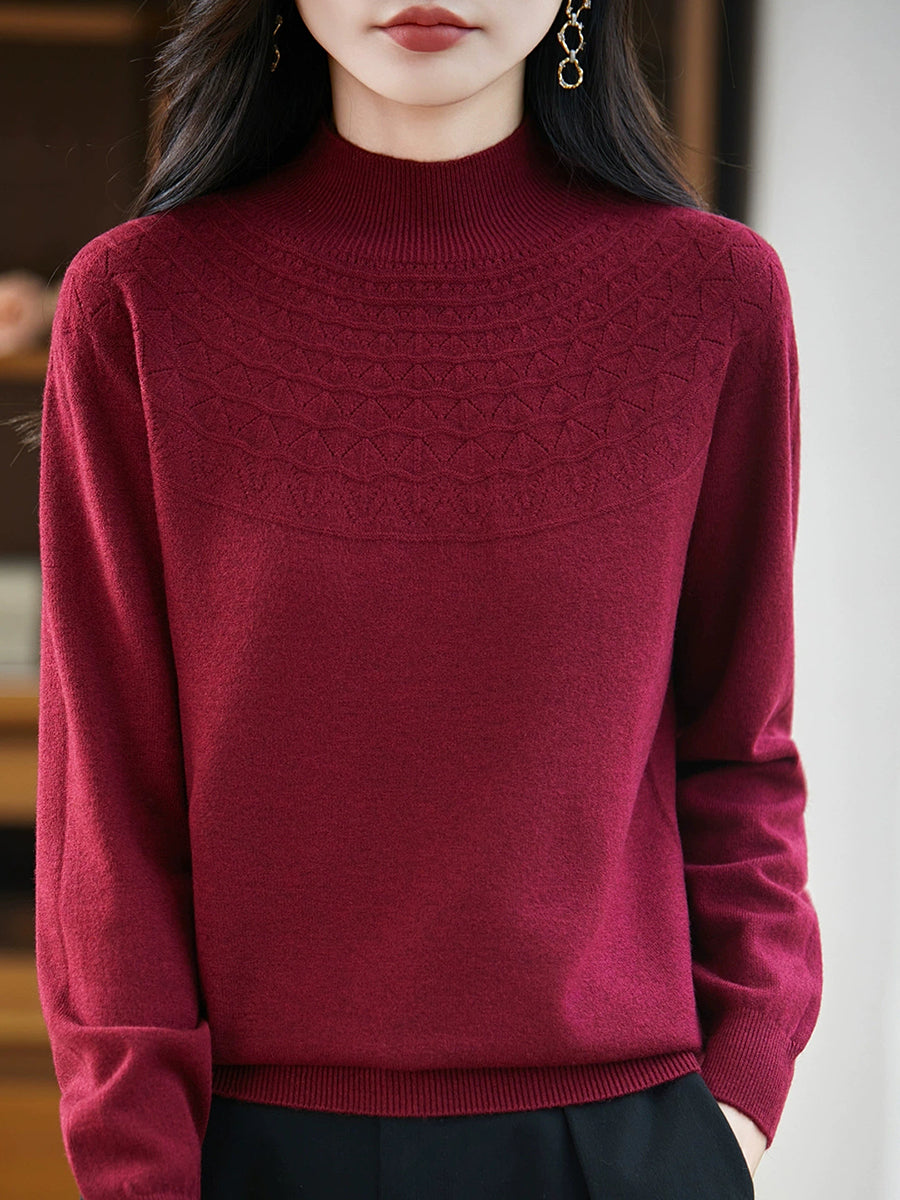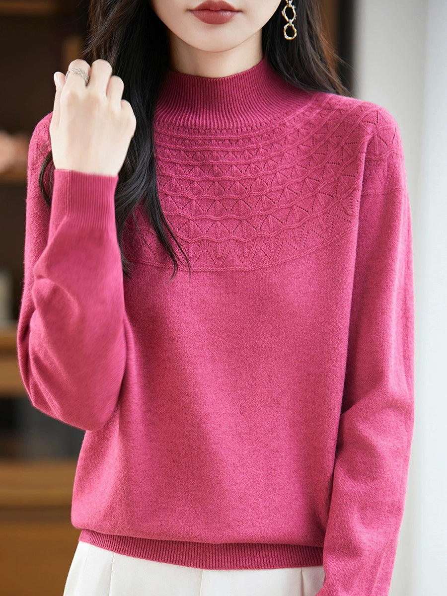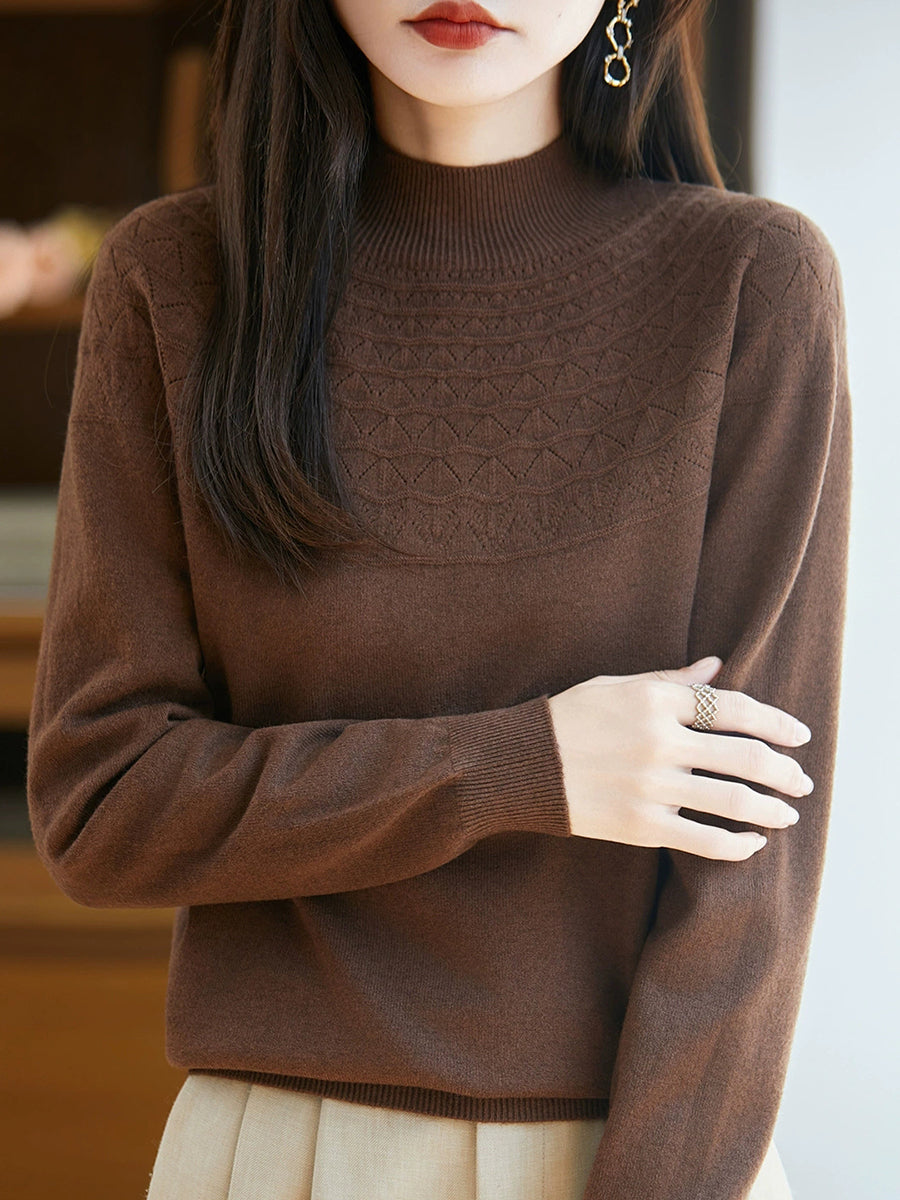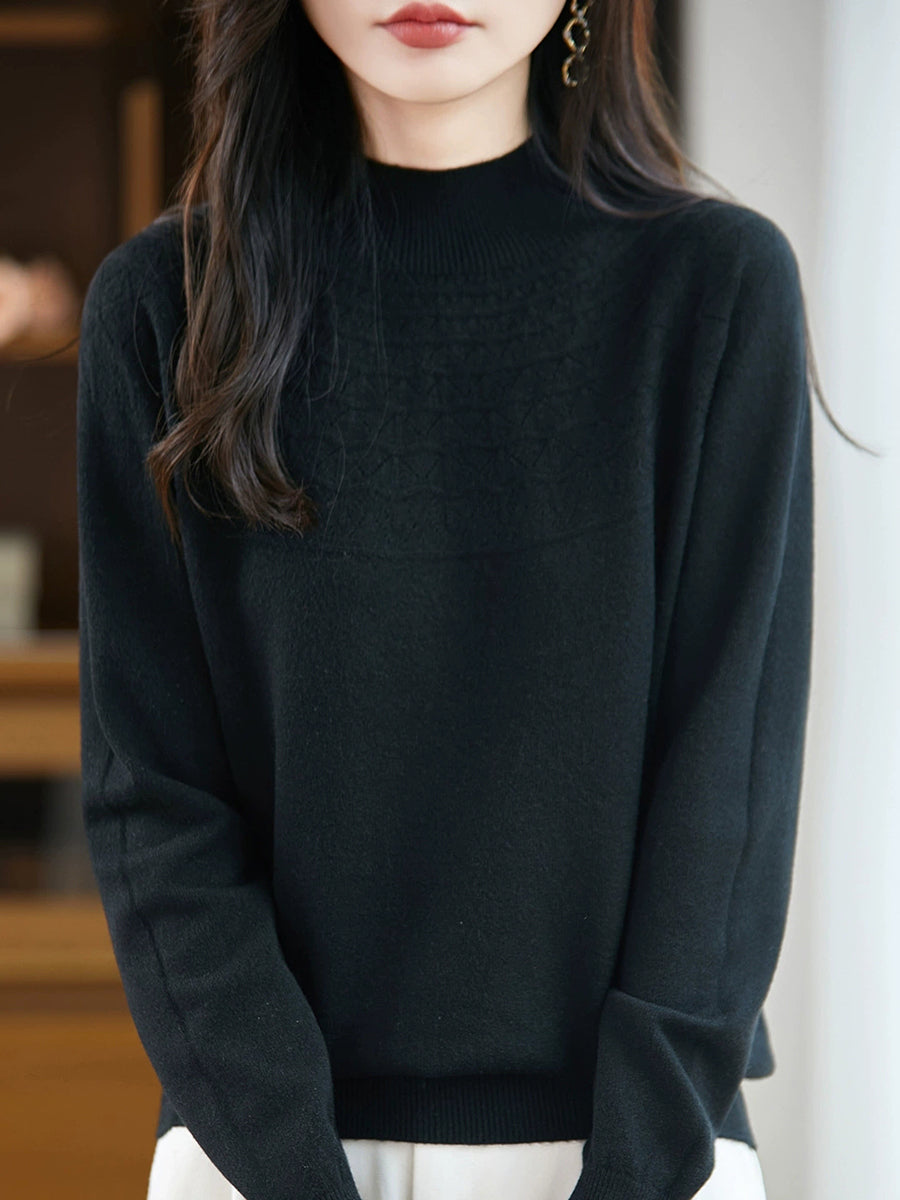 女士春季藝術風半高領毛衣