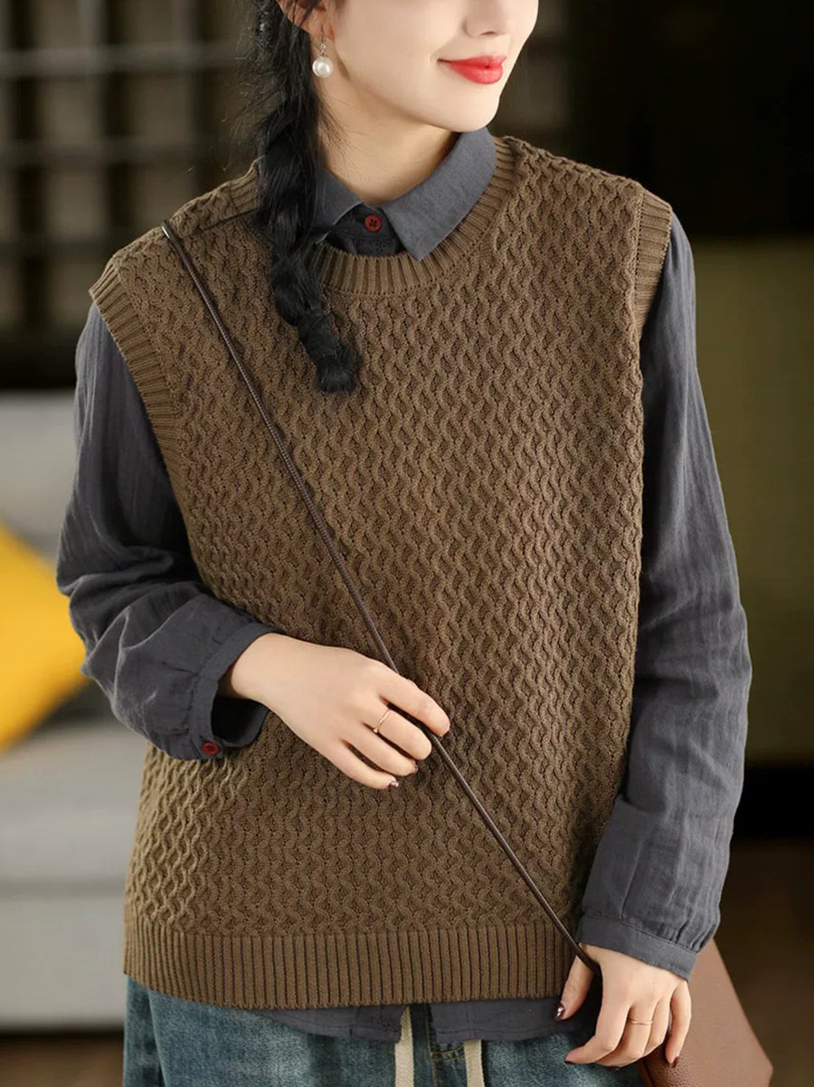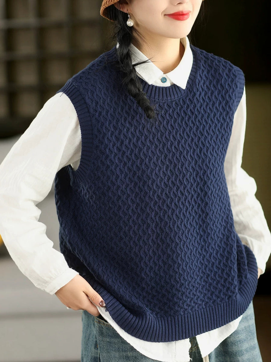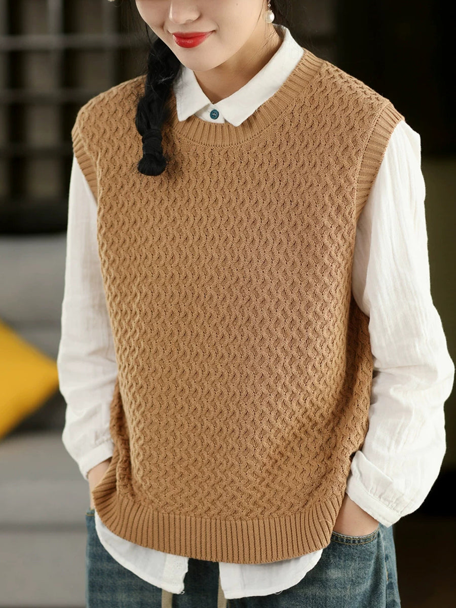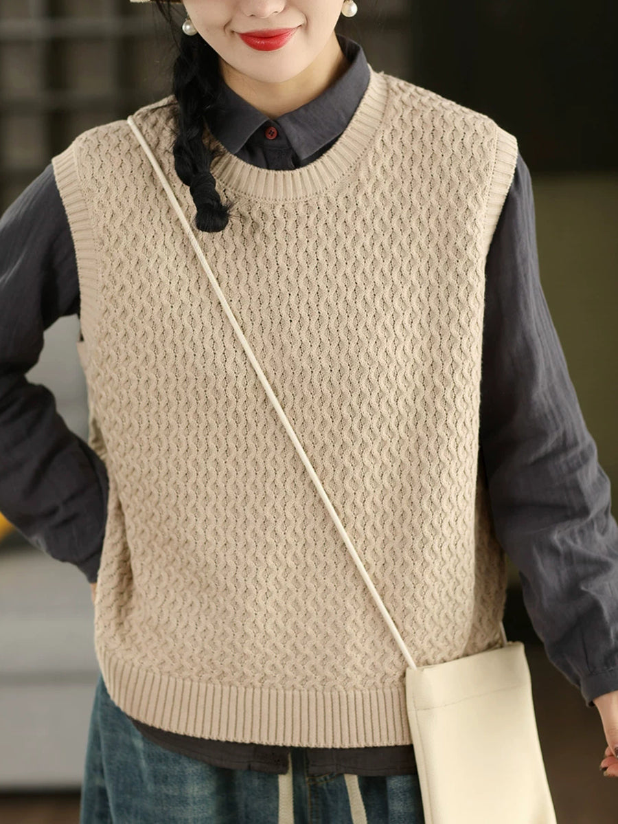 女士春季藝術風圓領純色針織背心