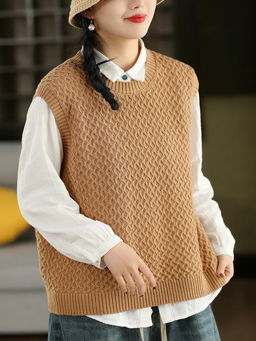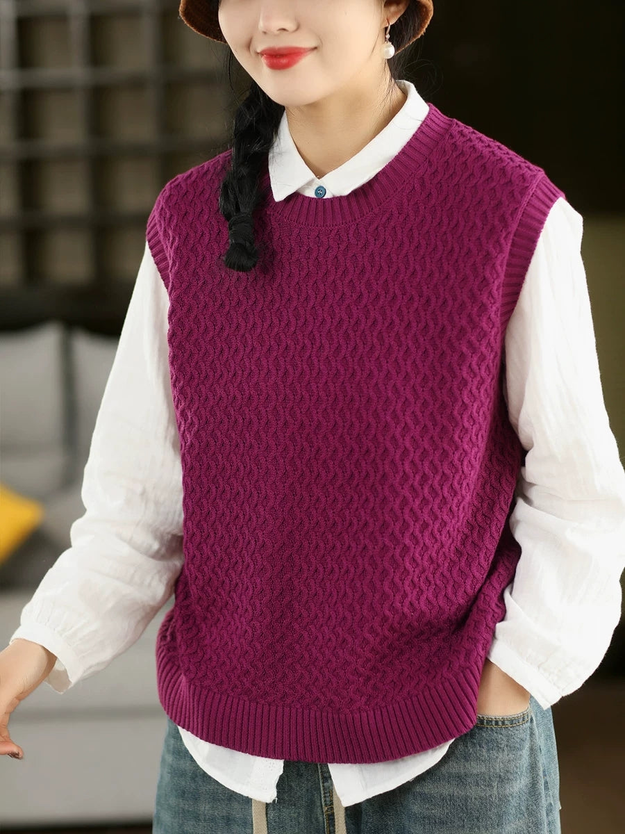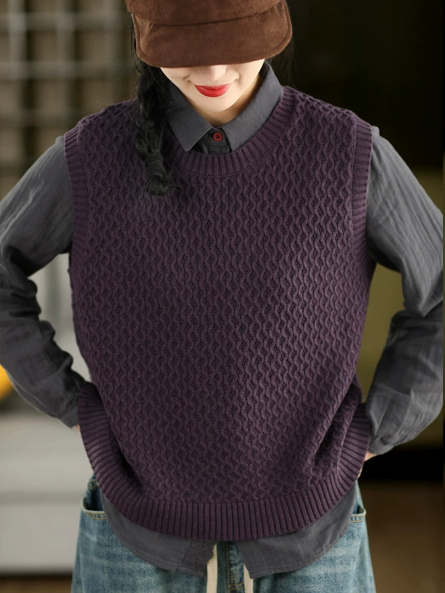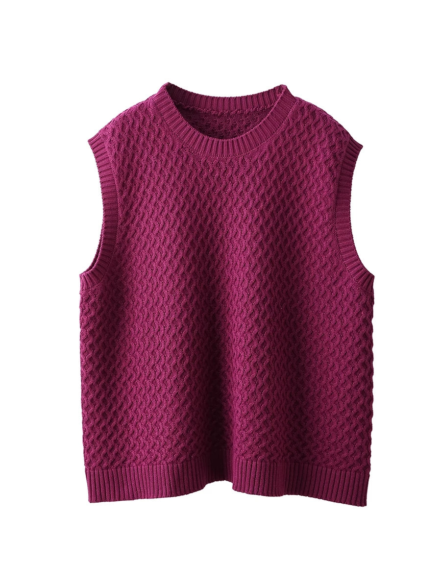 女士春季藝術風圓領純色針織背心