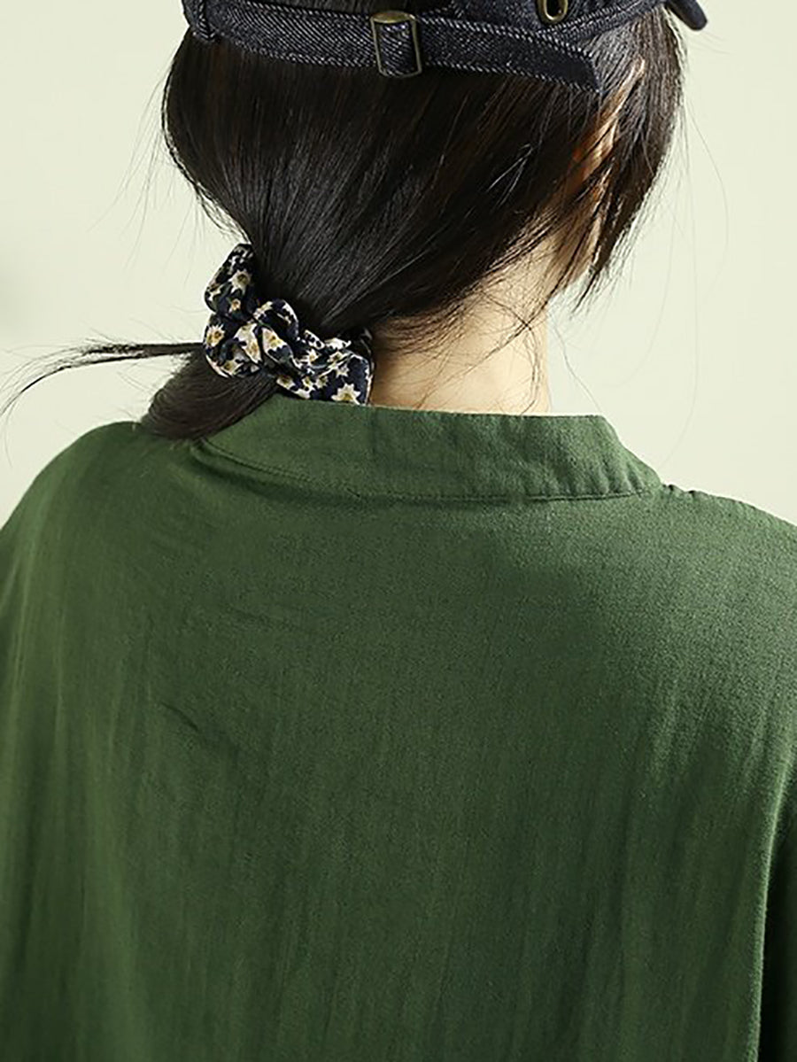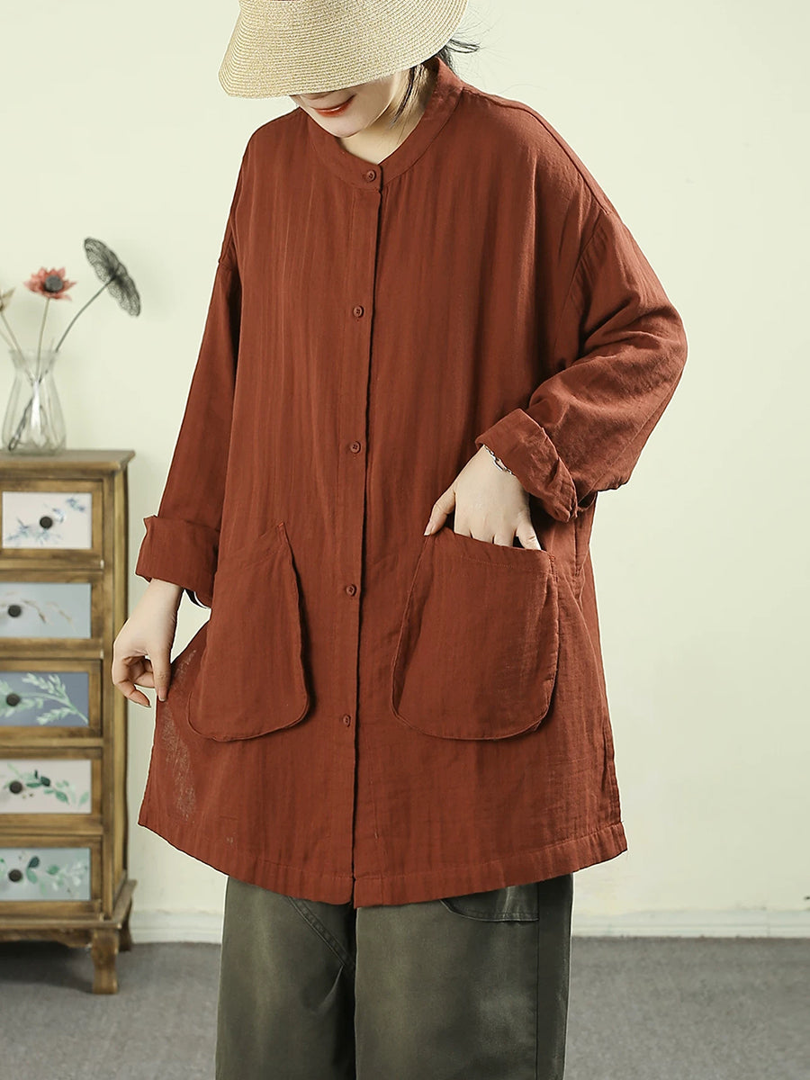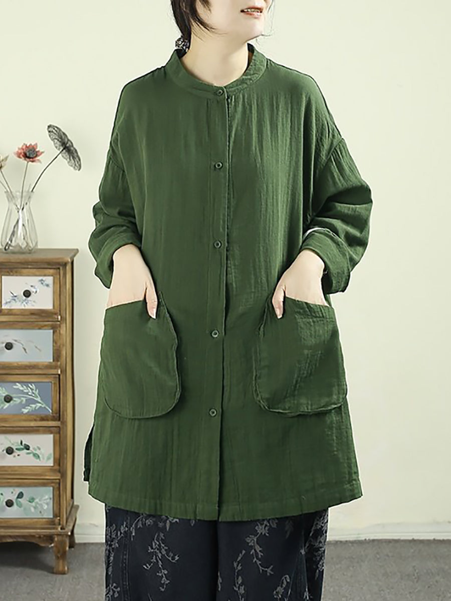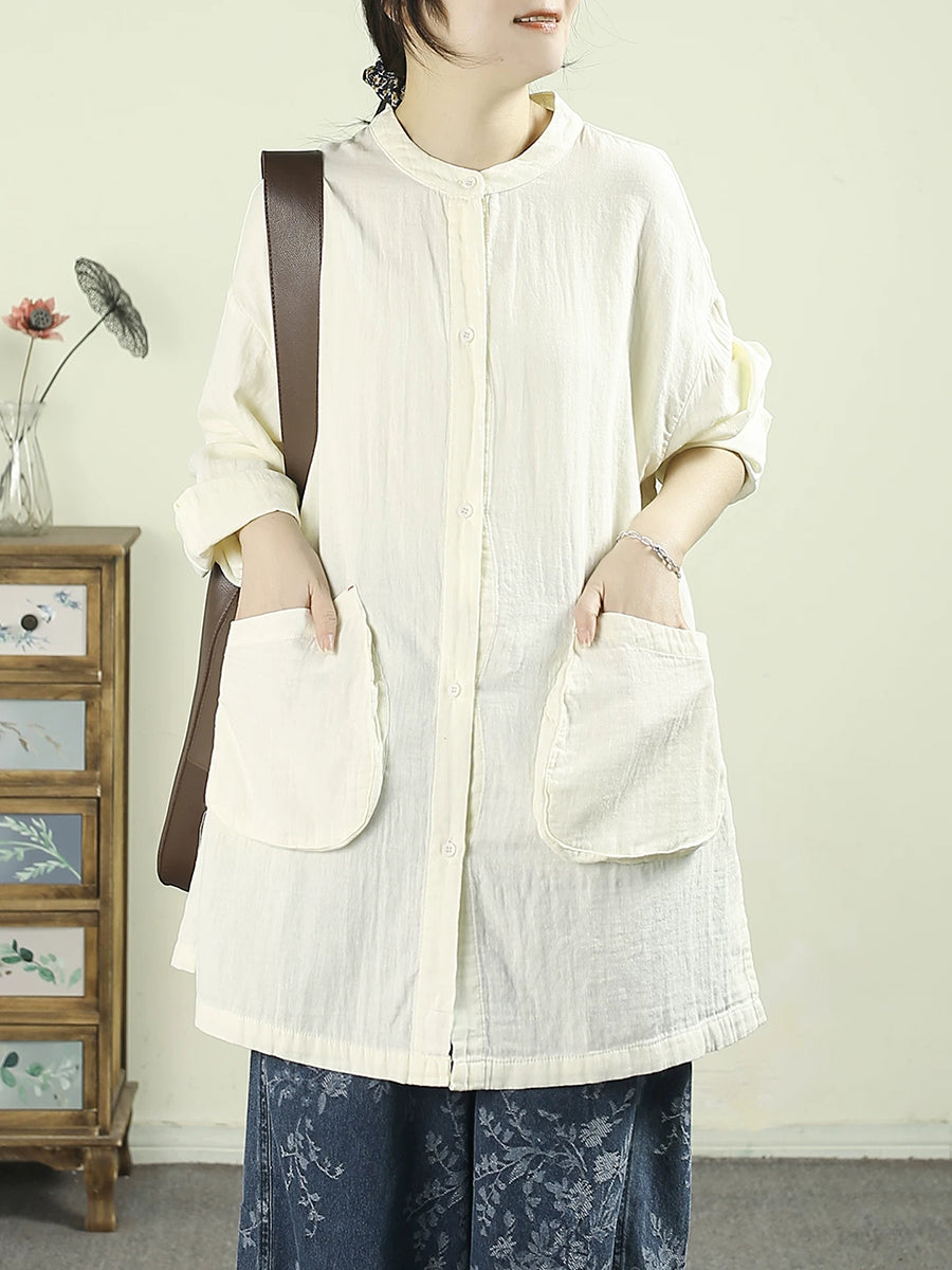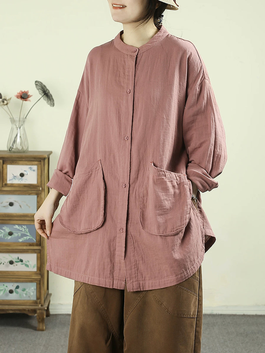 女士春季藝術純色棉質長襯衫