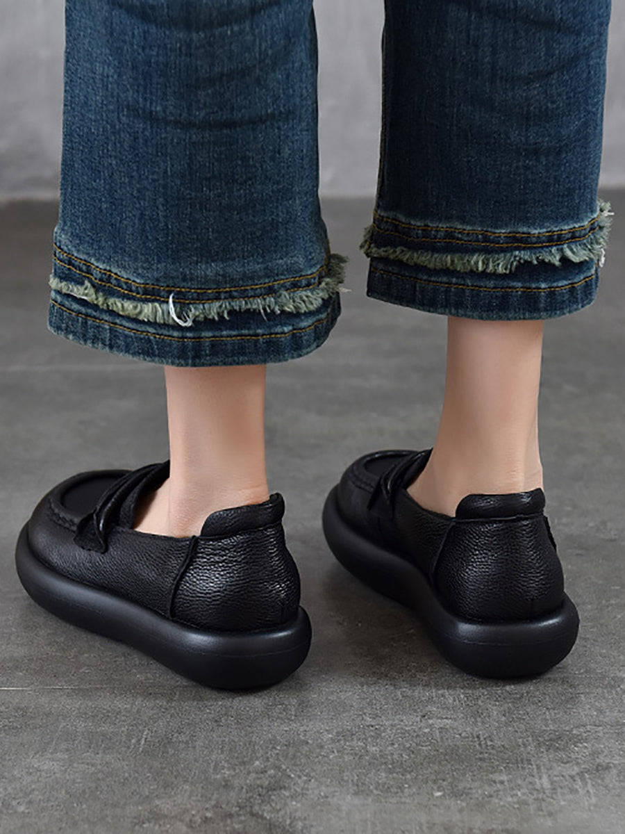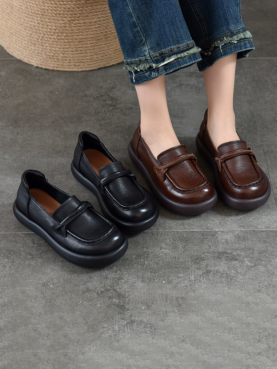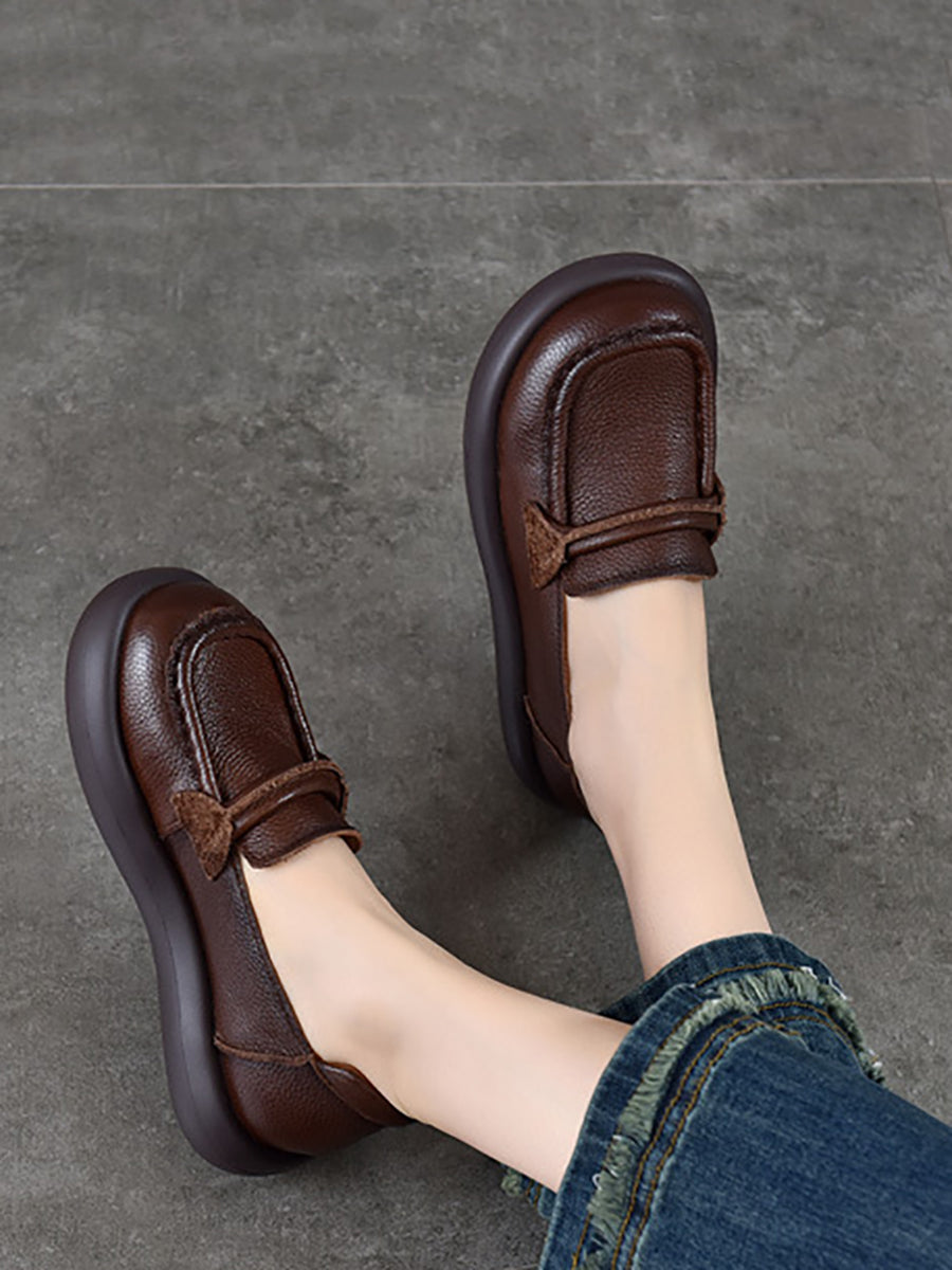 女士春季休閒真皮平底鞋