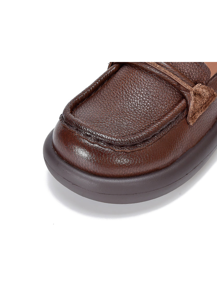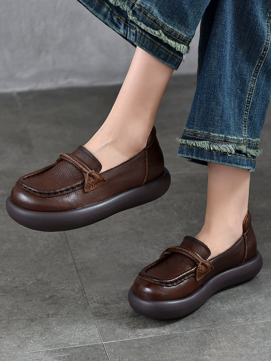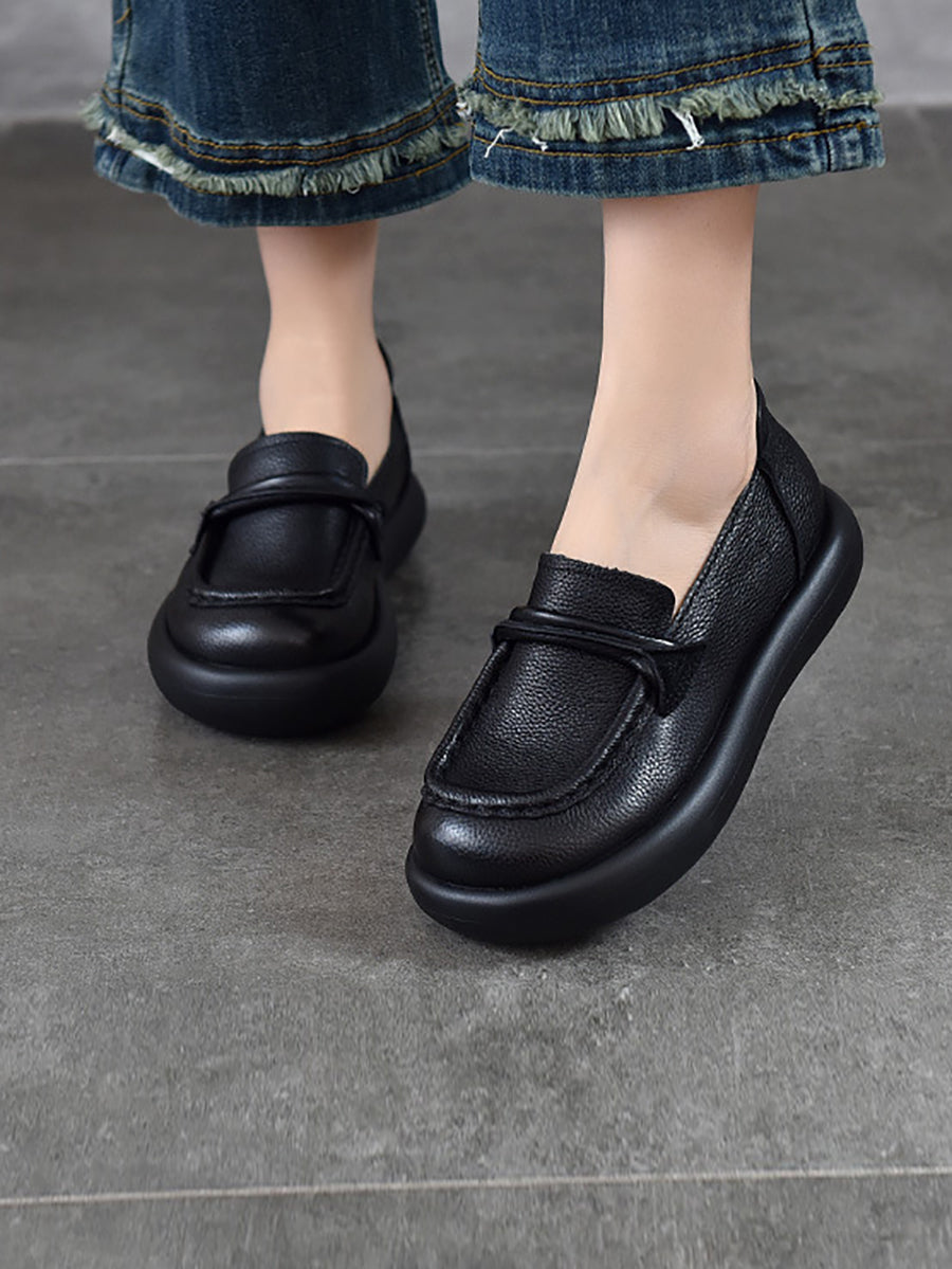 女士春季休閒真皮平底鞋