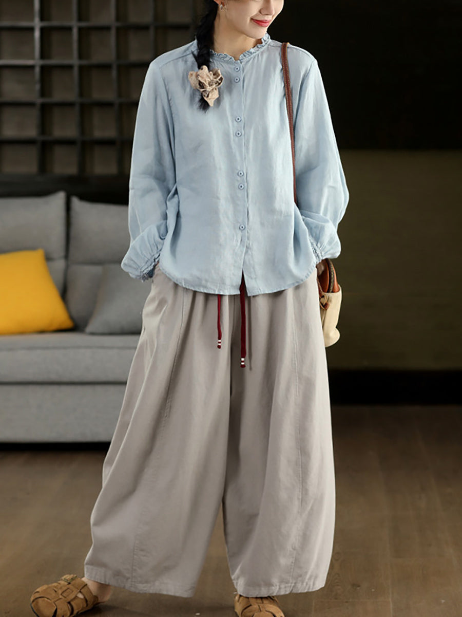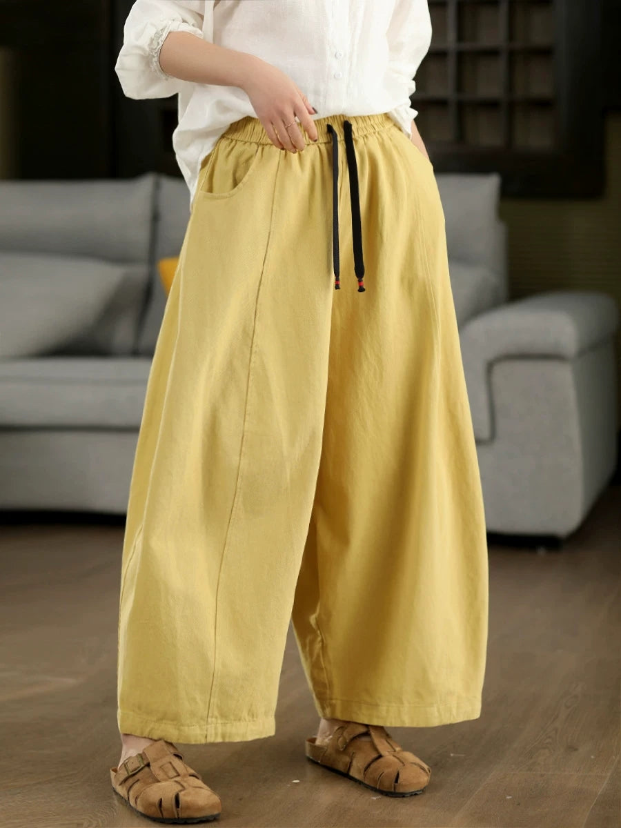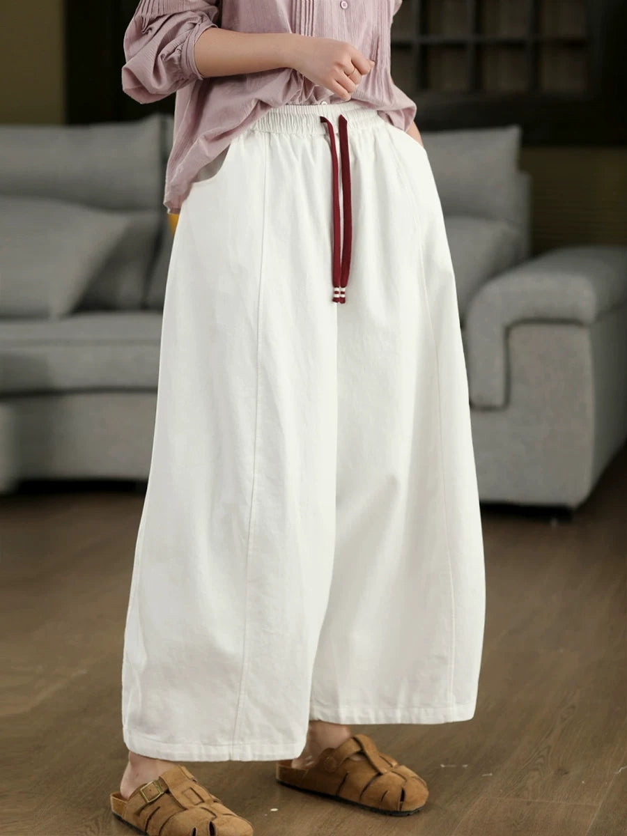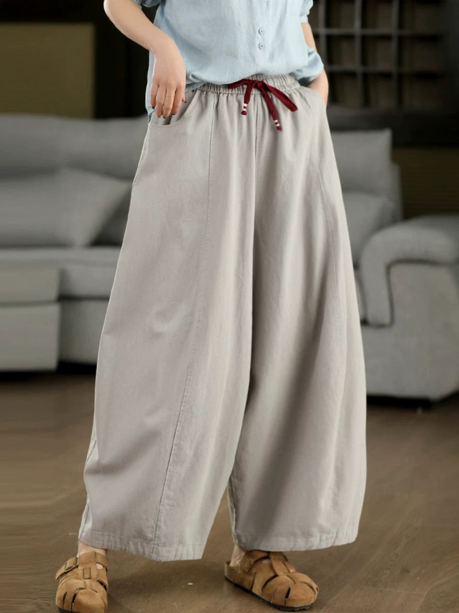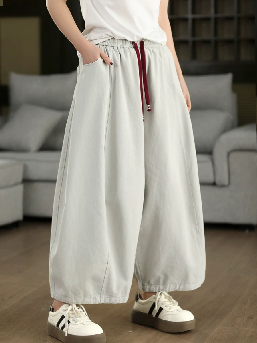 女士春季休閒純色闊腿褲