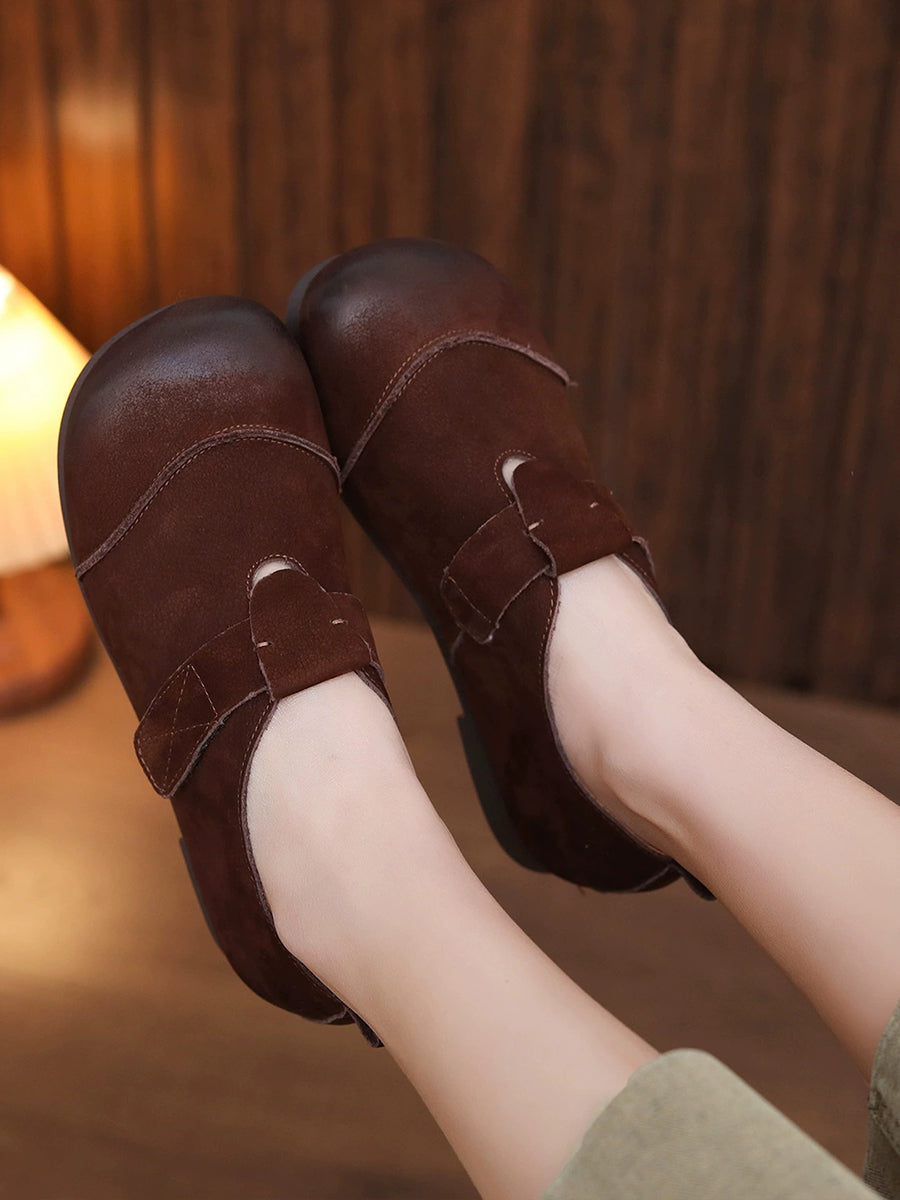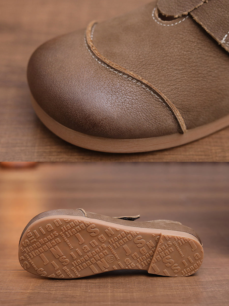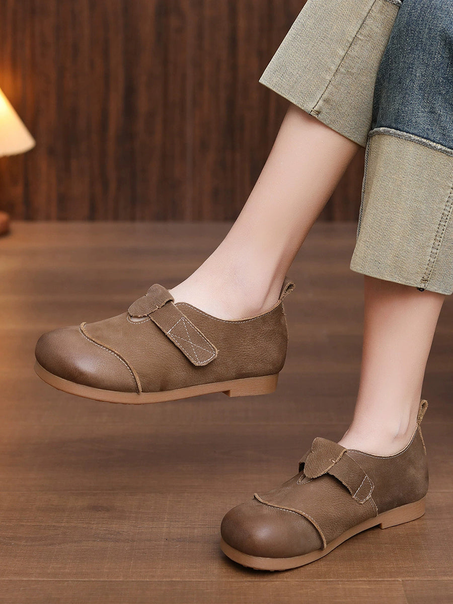 女士春季真皮低跟鞋