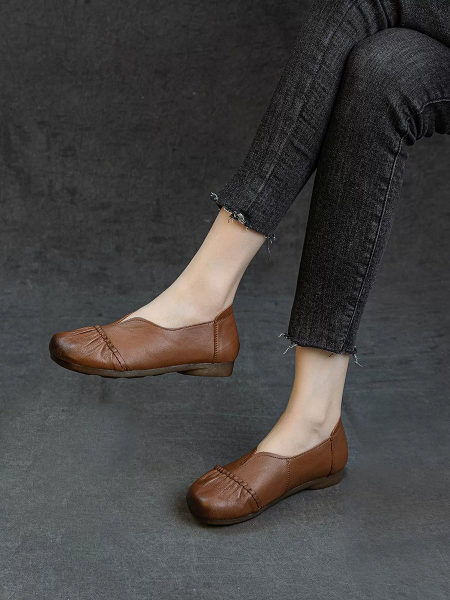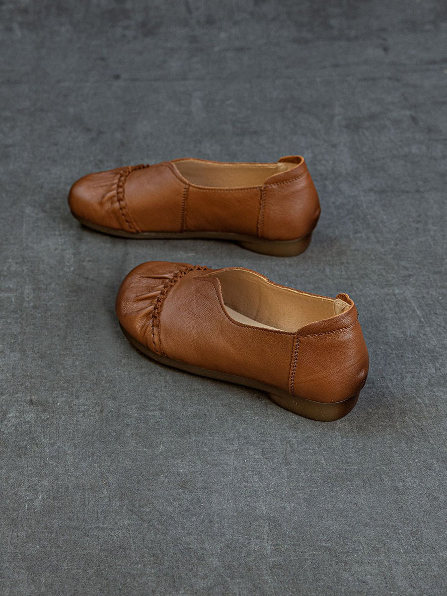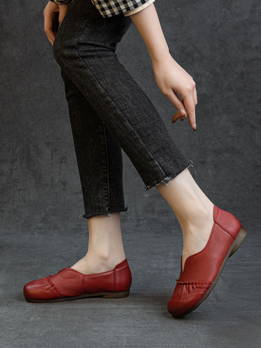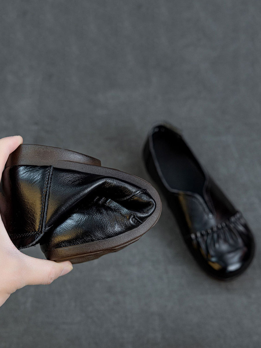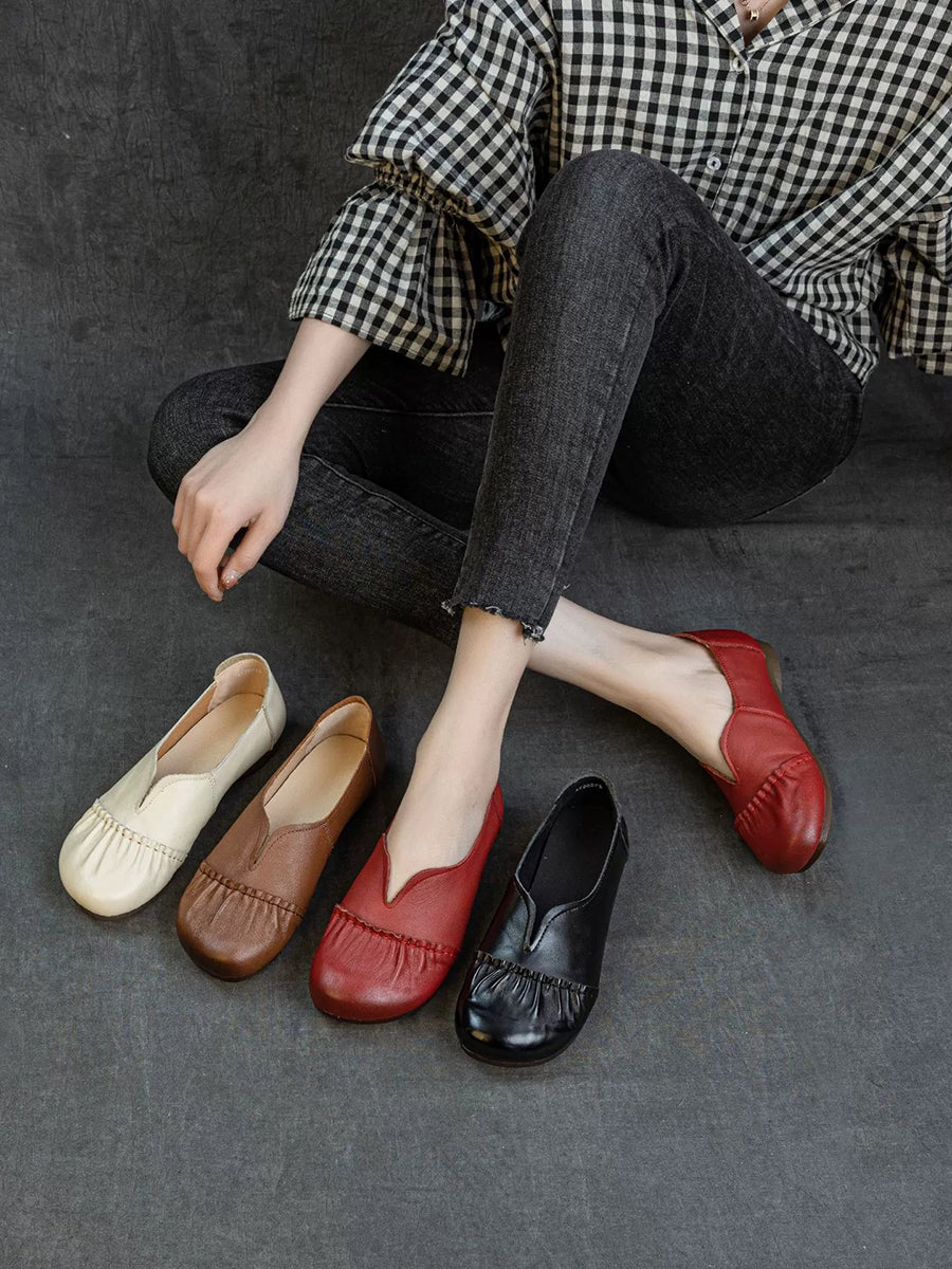 女士春季真皮拼接低跟鞋