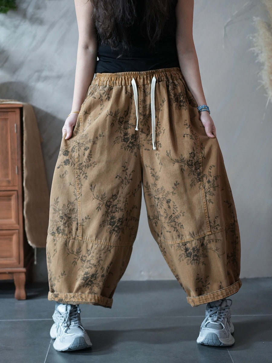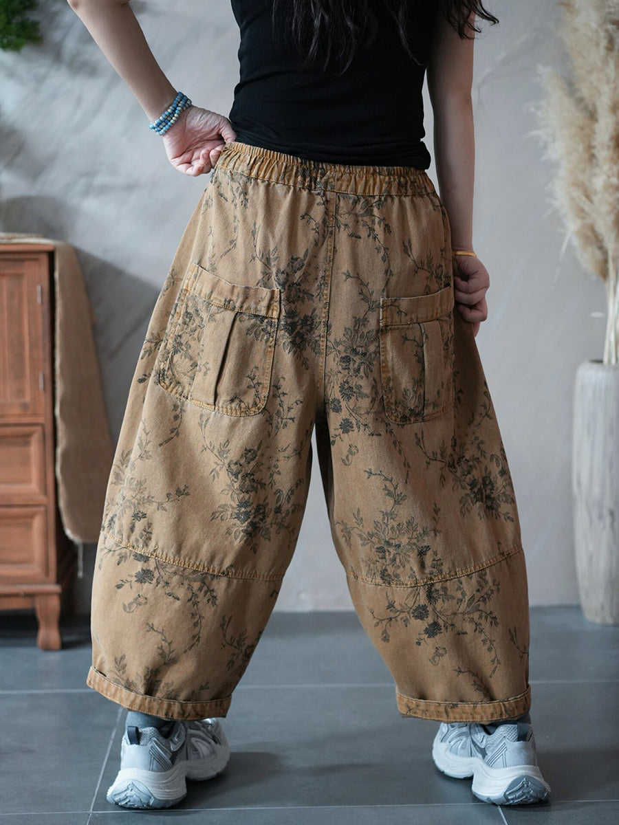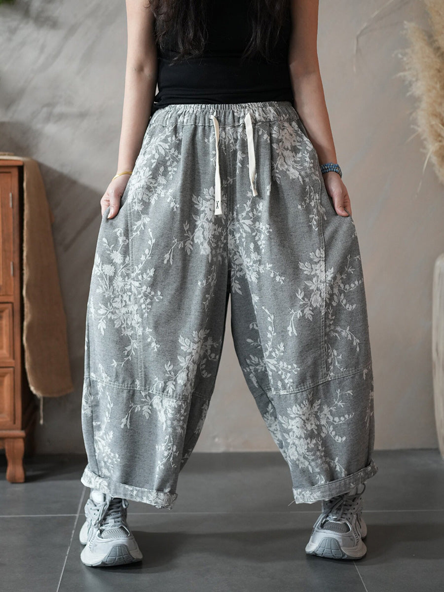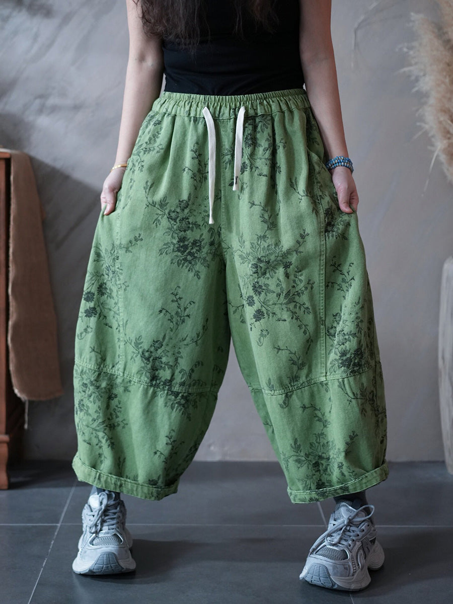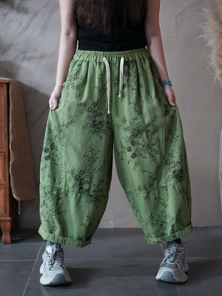 女士春季復古碎花哈倫褲