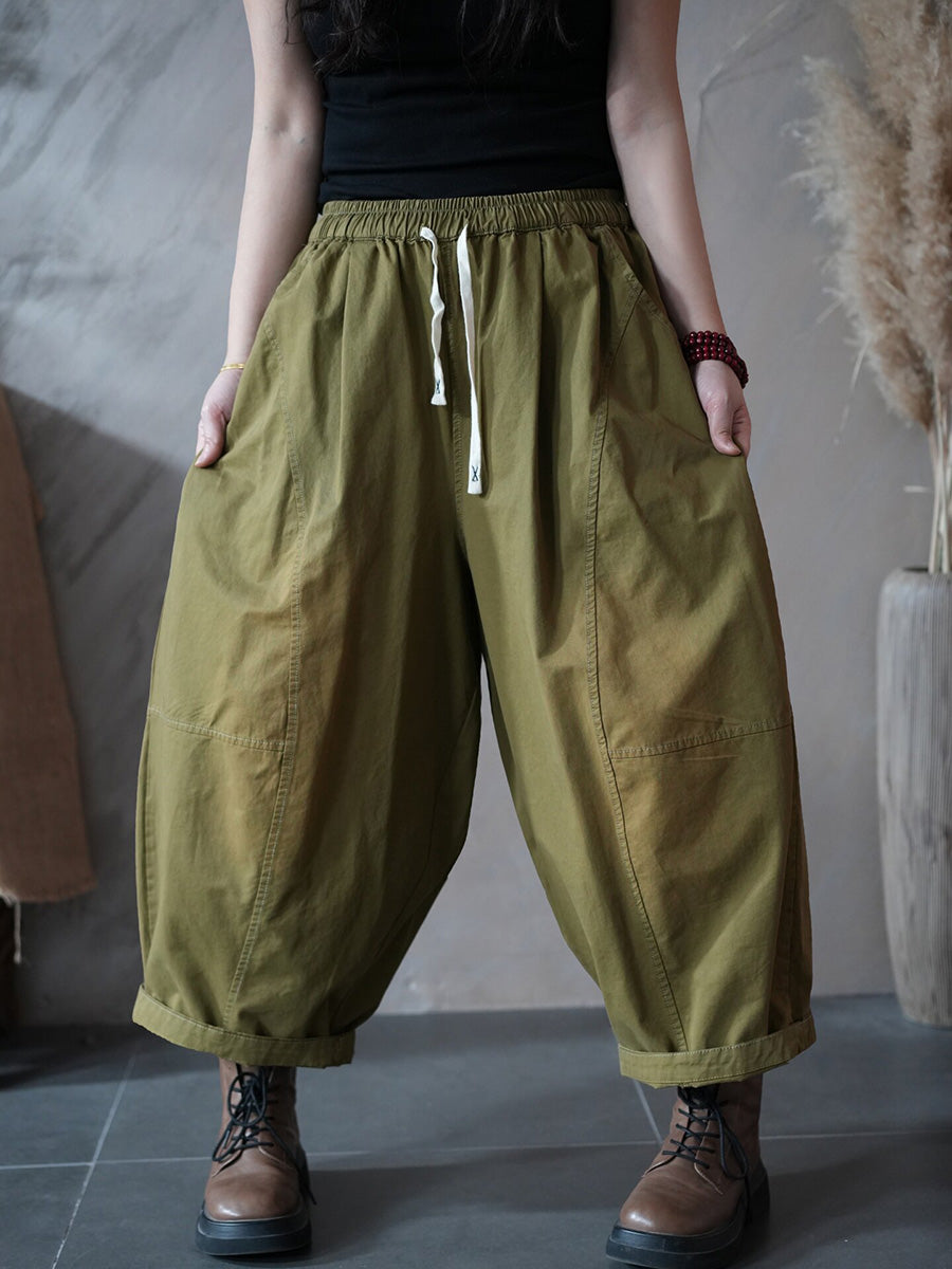 女士春季復古純色哈倫褲