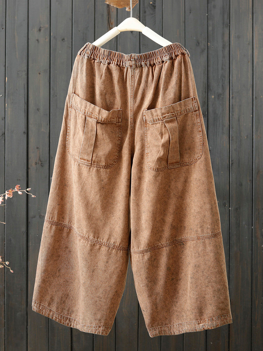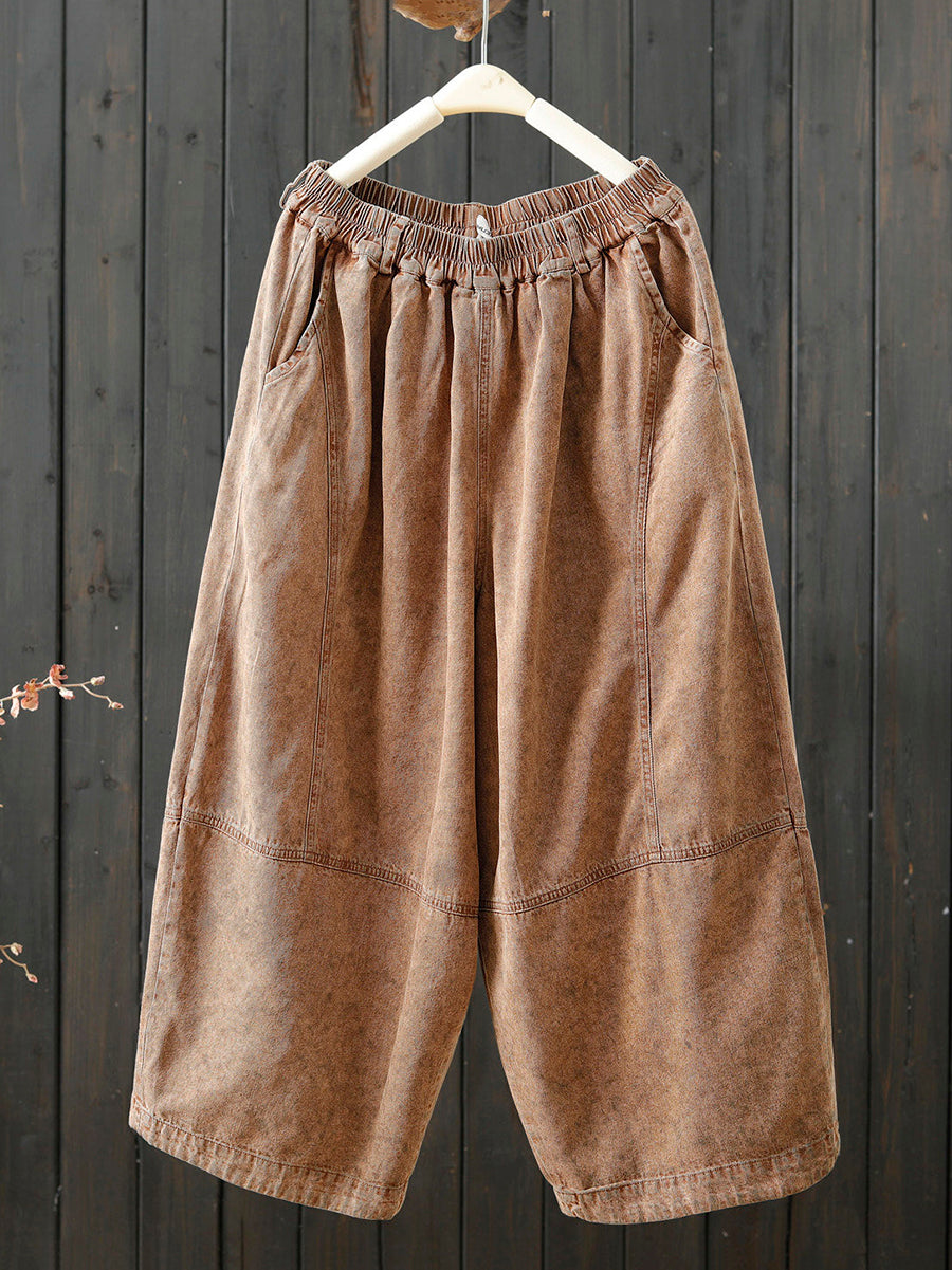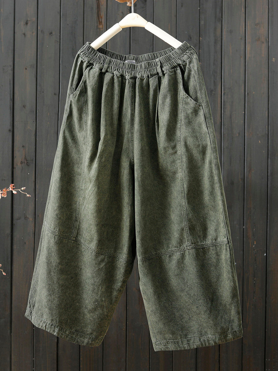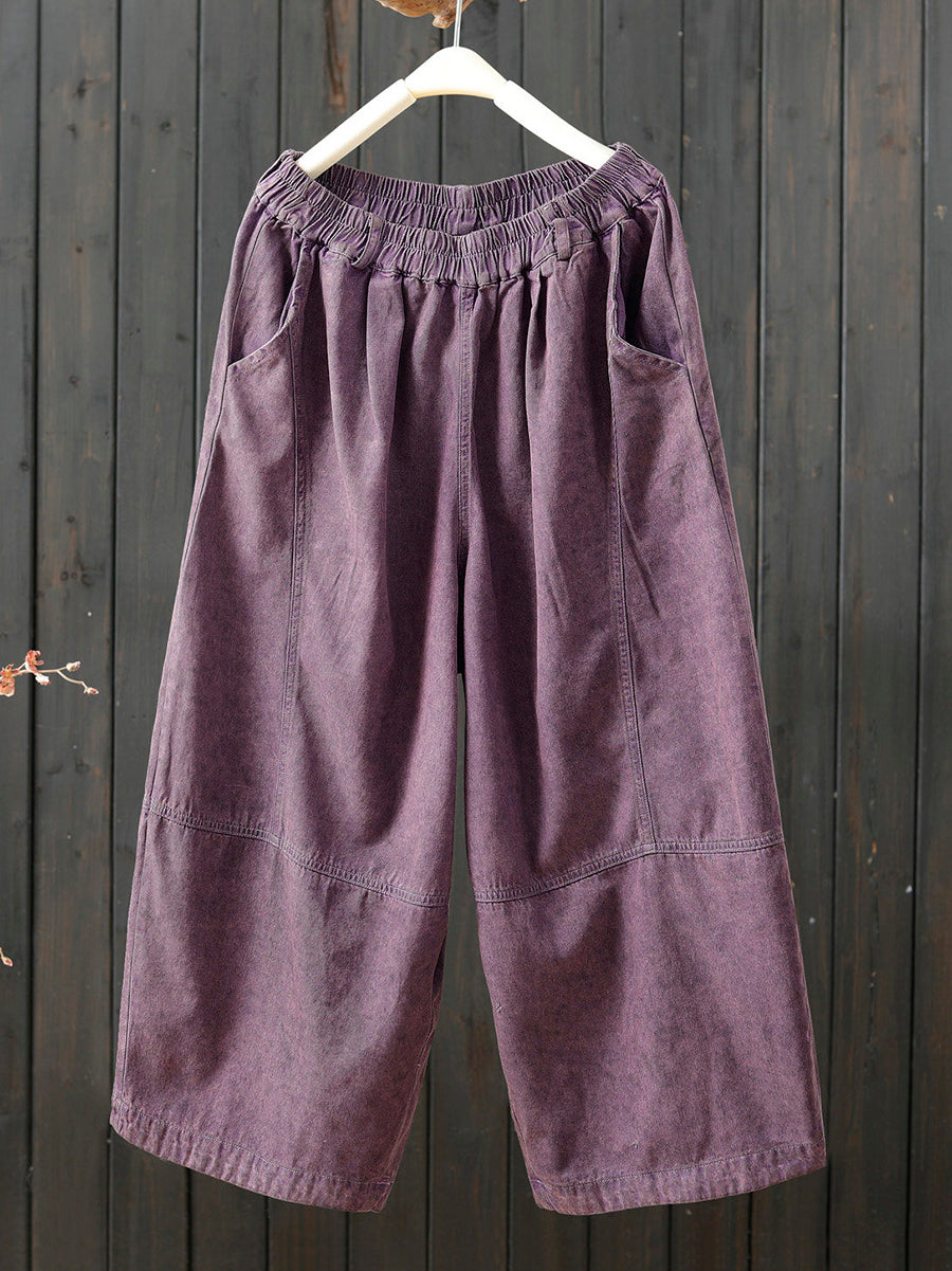 女士春季復古純色寬褲