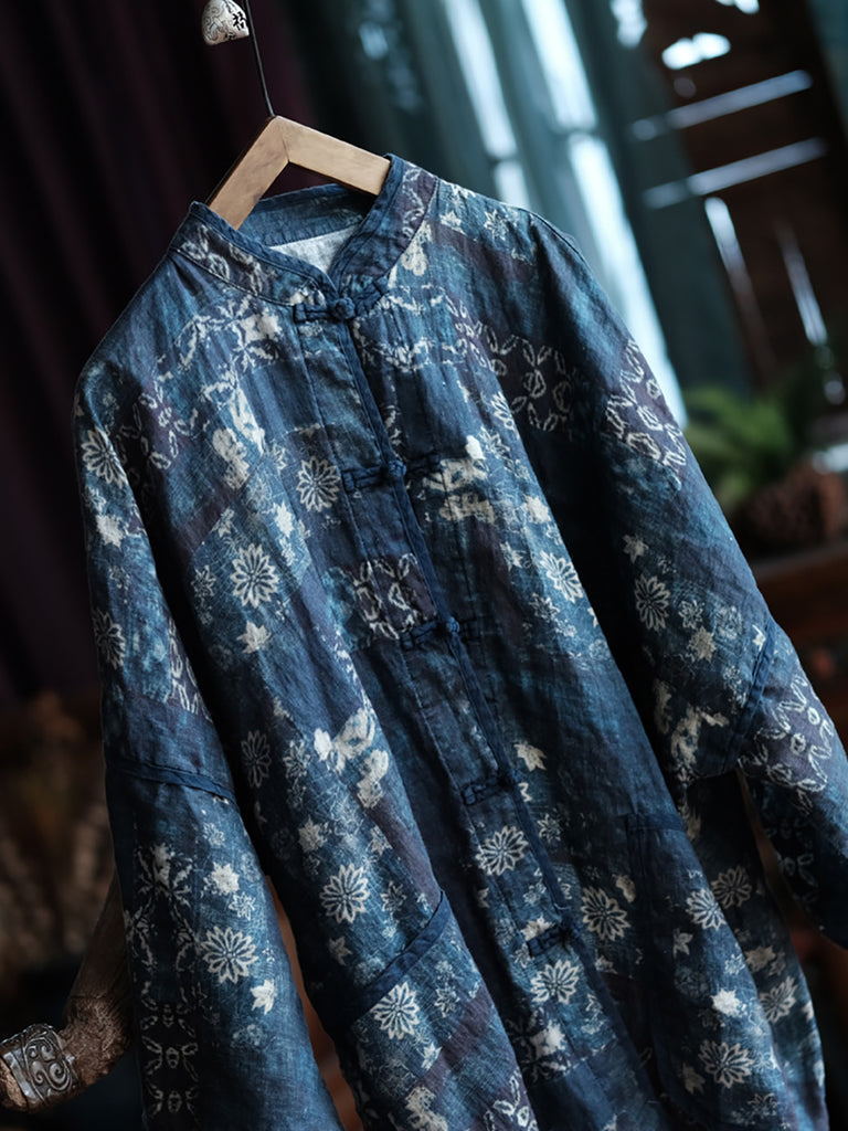 這款女款春季襯衫外套採用 100% 亞麻製成,具有復古花卉圖案,設有立領和全插肩袖。這款時尚永恆的單品非常適合溫暖季節,是任何時尚前衛衣櫃的必備單品。